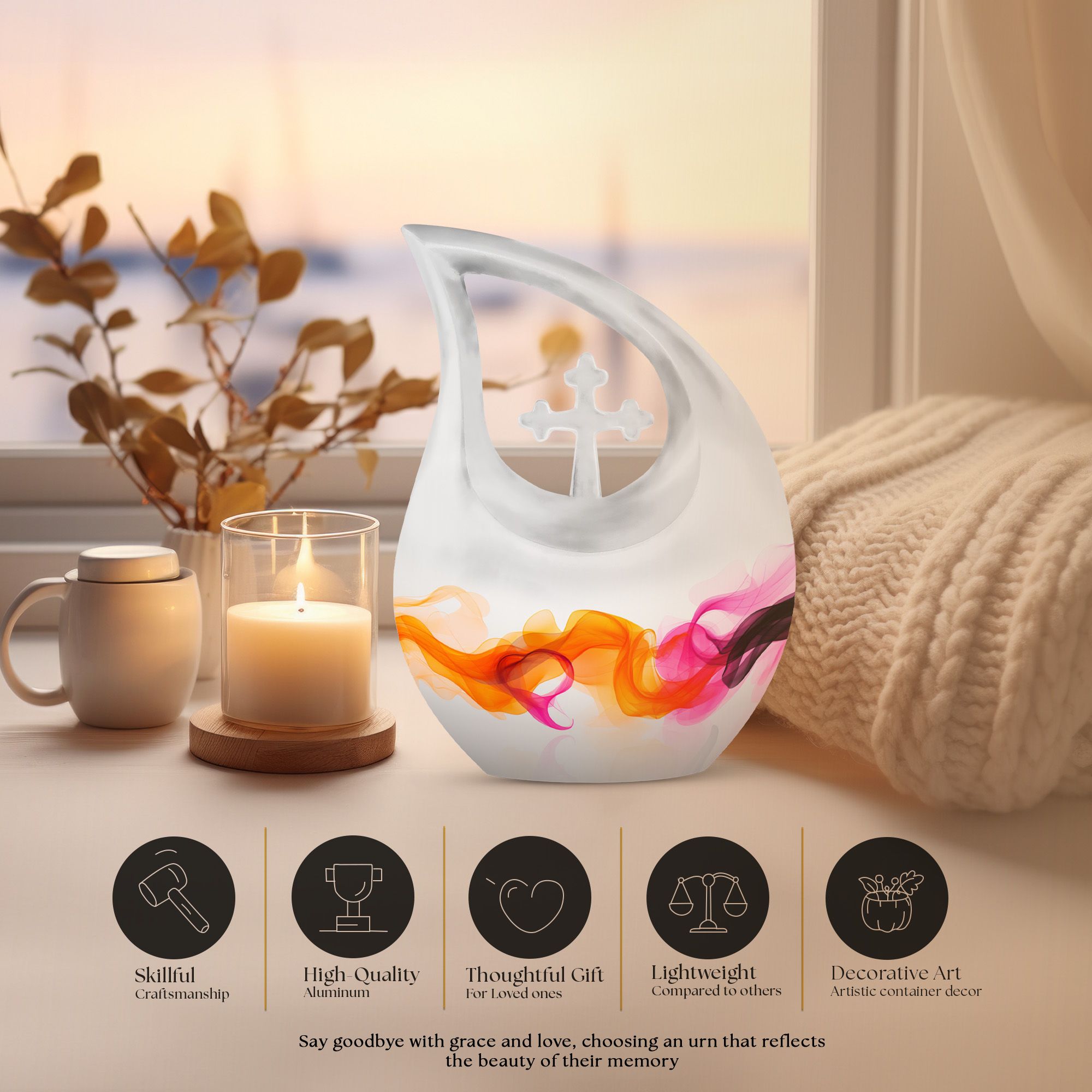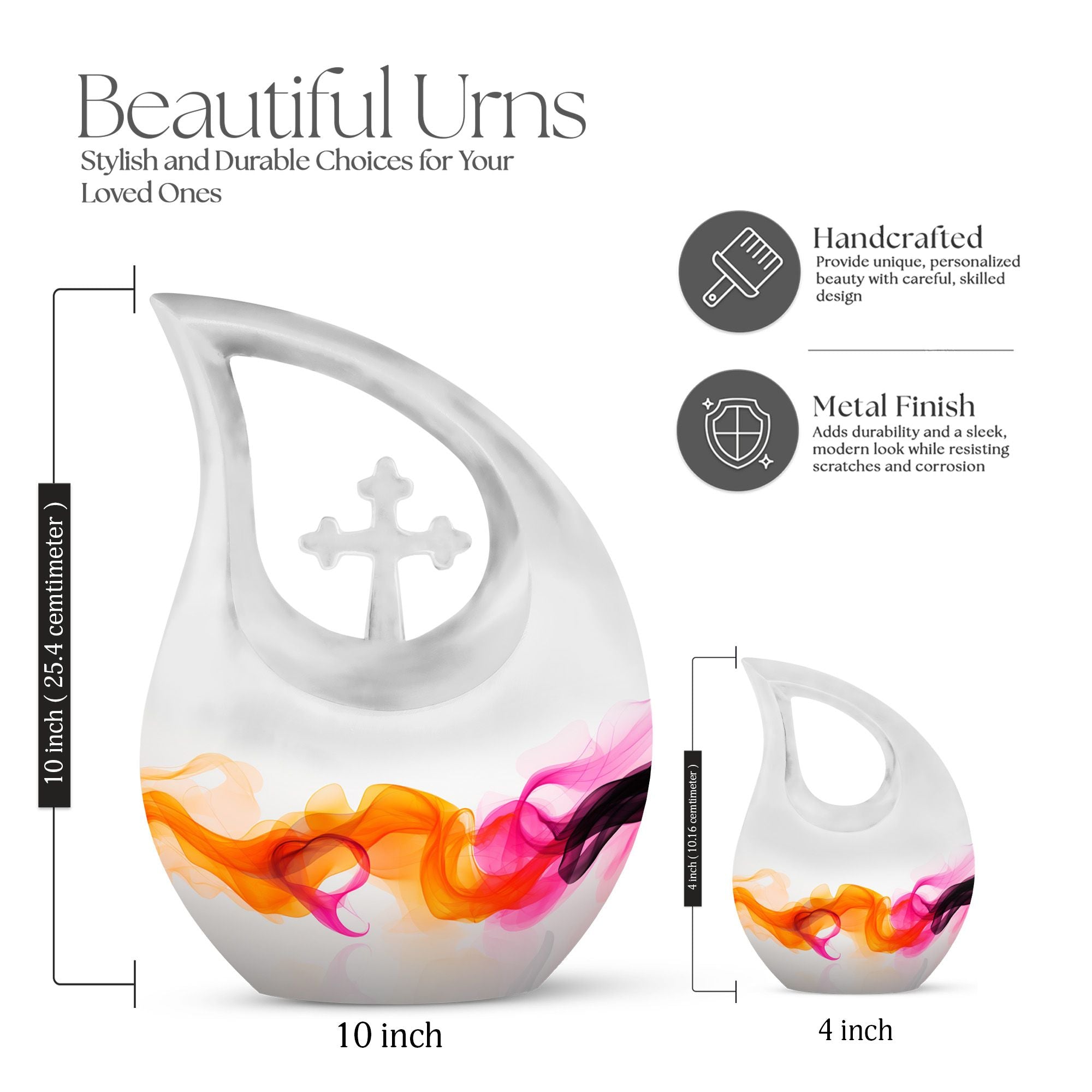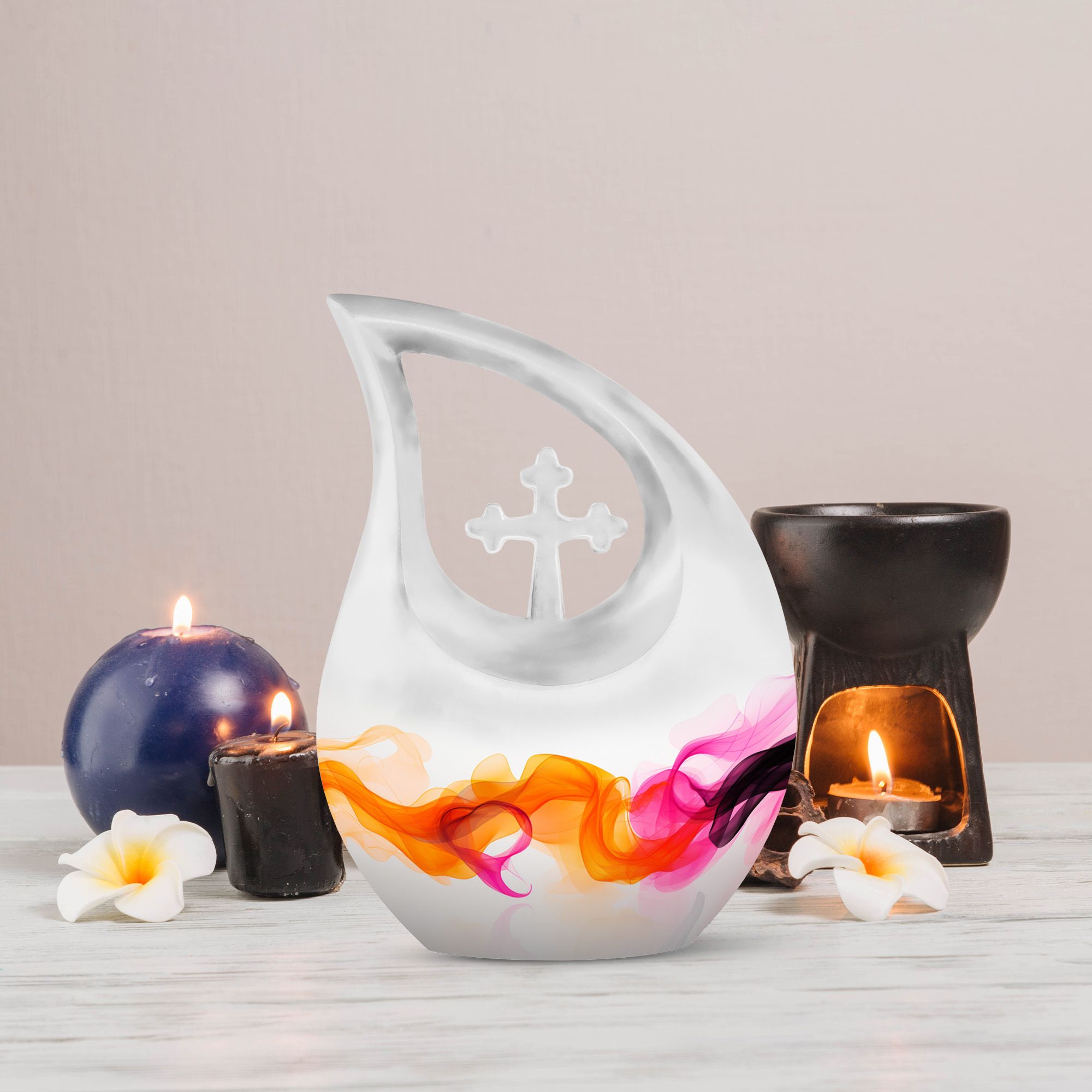 This White Abstract Urn for Adult Men and Colorful Cremation Urn for Women offers a peaceful and artistic way to honor a loved one’s memory. With its calming abstract design and gentle tones, it provides a meaningful tribute for families seeking an elegant memorial. Its versatile style complements those wishing to include matching small keepsake urn options for shared remembrance.