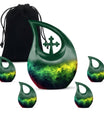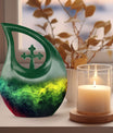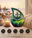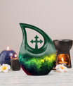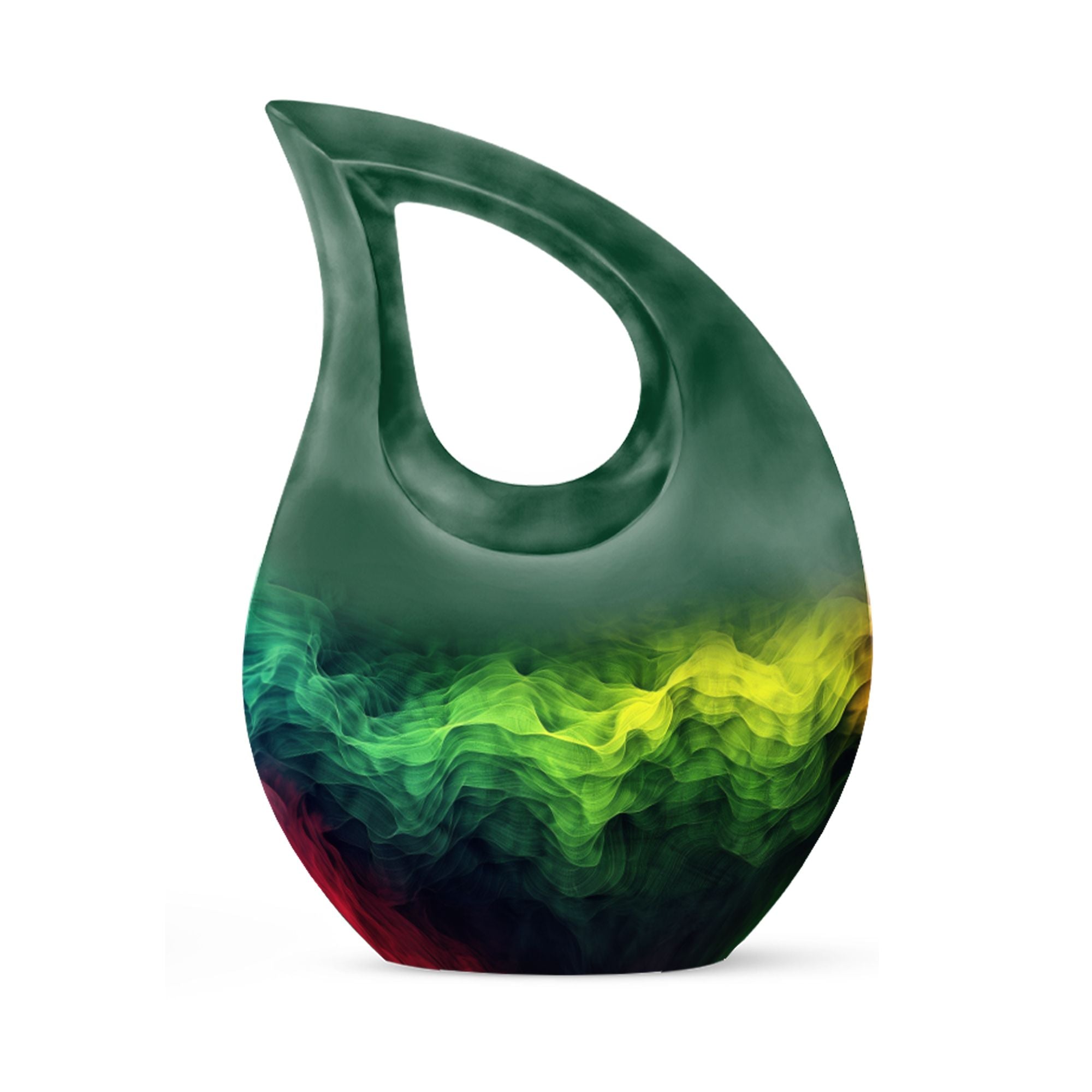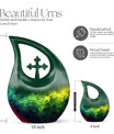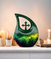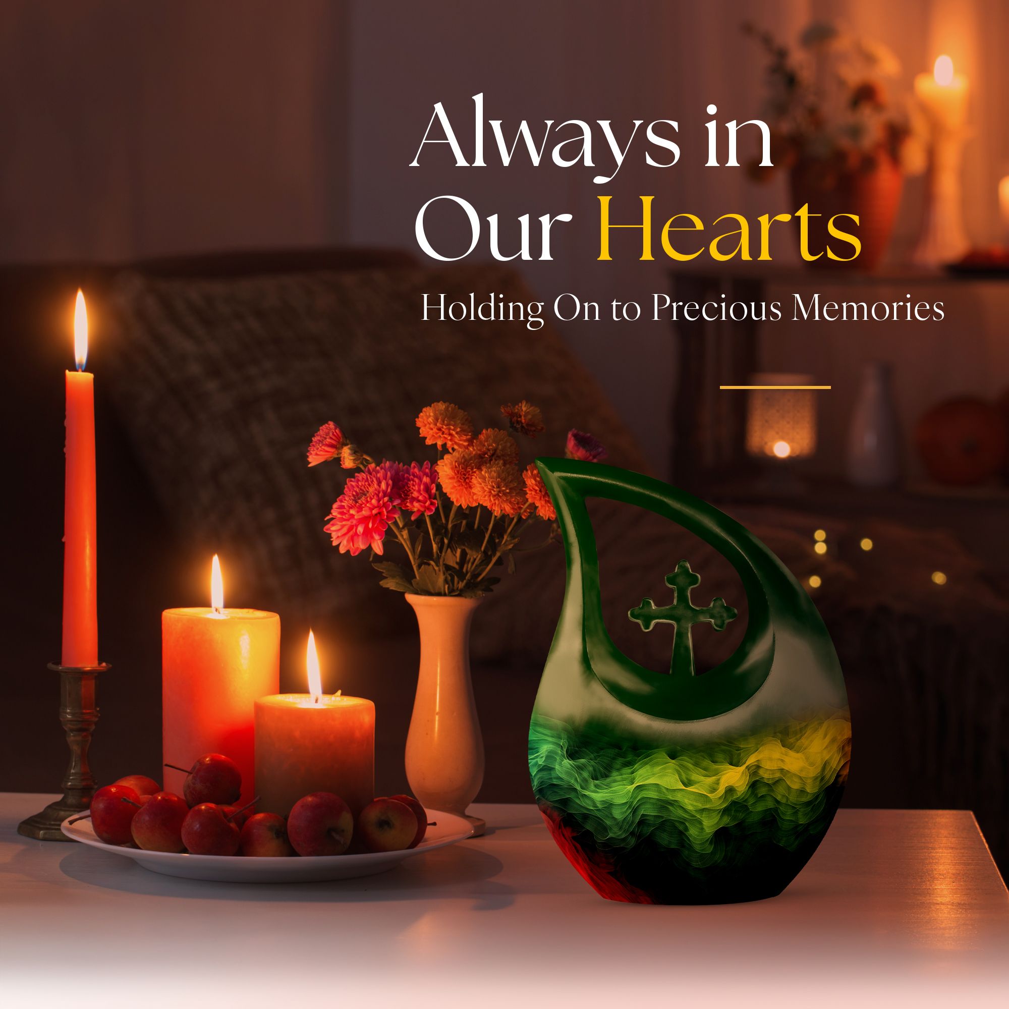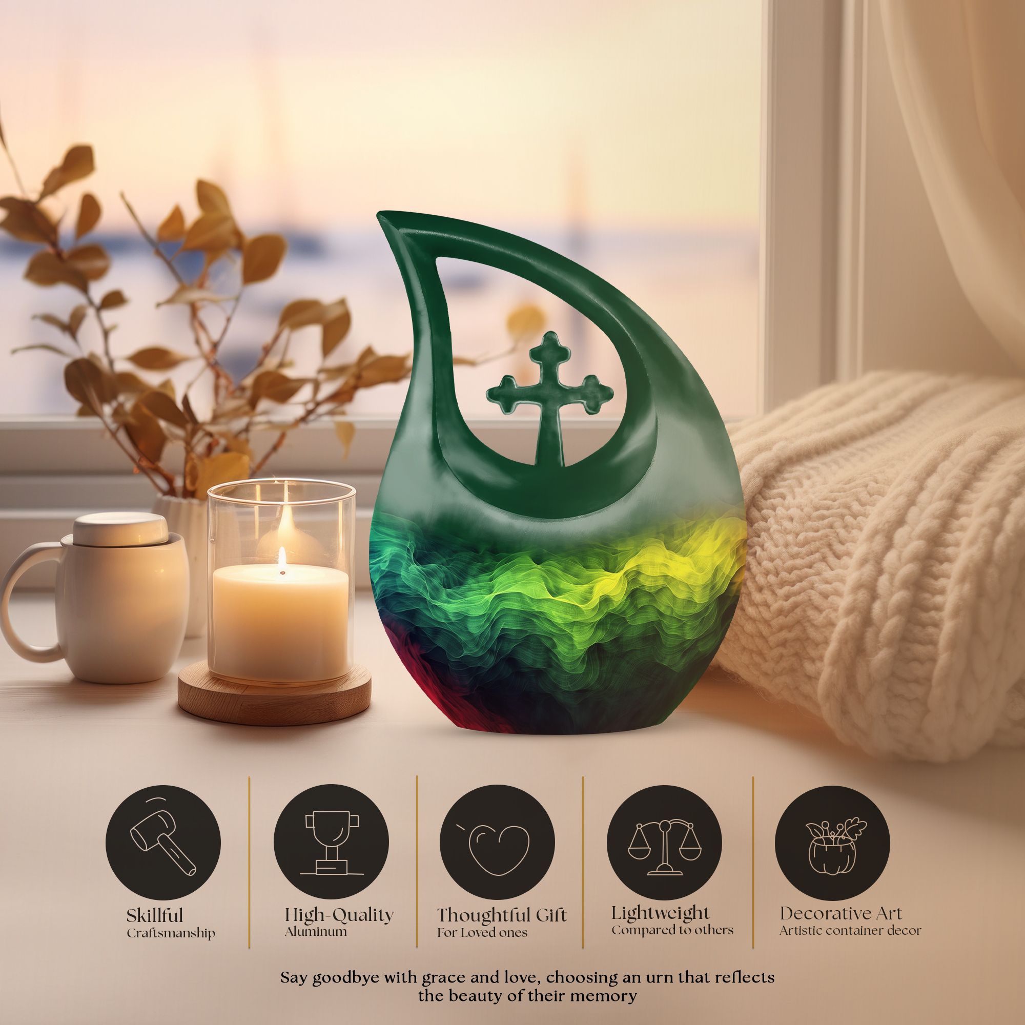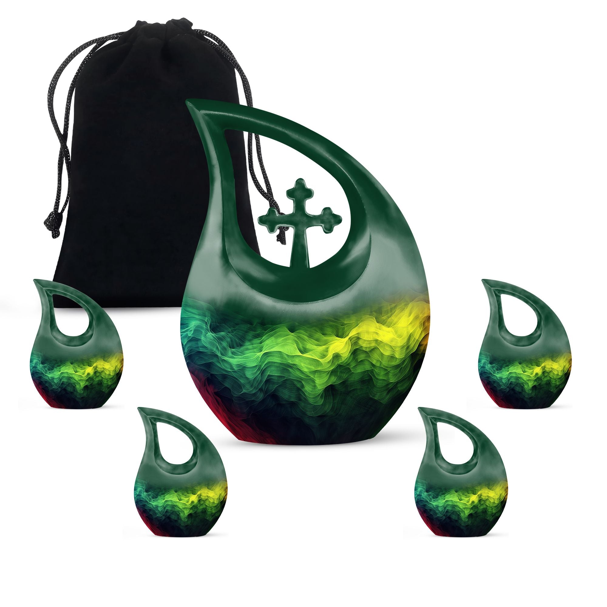 Delve into a spiritual and enduring tribute to your loved ones with our Abstract Urn. This 10-inch tall piece, finely crafted from aluminium, weighs a sturdy 3.3 pounds. Its Cross Drop theme emanates a unique sense of peace and respect. A large urn with a capacity of 200 cubic inches, it's ideal for memorializing adults and seniors, with ample space to contain their ashes. Each purchase includes a velvet pouch, adds an extra touch of dignity to this important rite. Our urn offers the option of personalization. You may choose to engrave names on it, creating an even more heart-rending tribute. Whether you are searching for Extra Large Urns, Cremation Monuments, Unique Urns For Dad, or Custom Made Urns For Ashes, this abstract urn presents a distinct choice. Honor your dear ones in solemn, enduring style with the Cross Drop Abstract Urn. Please note that we avoid using design details in our descriptions.