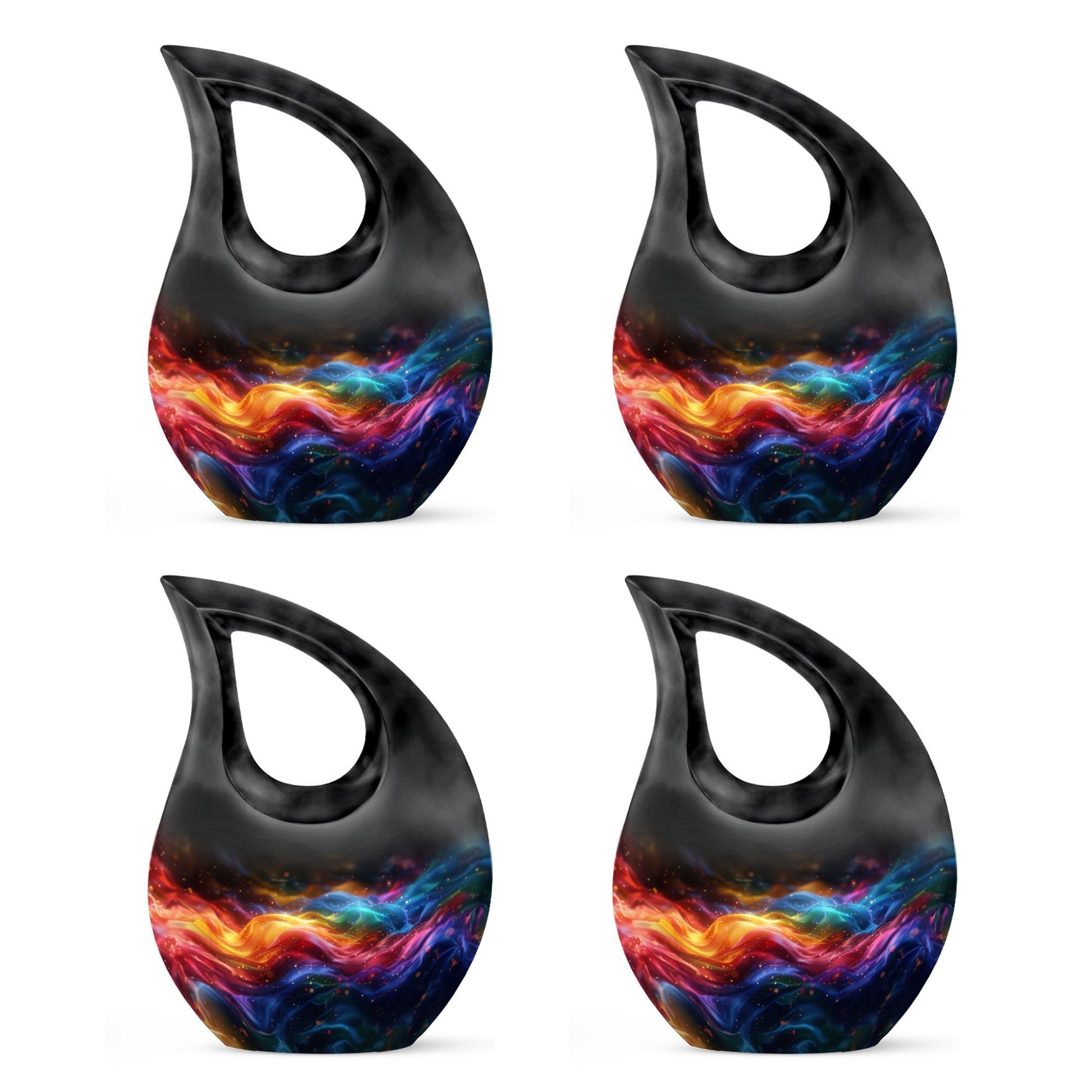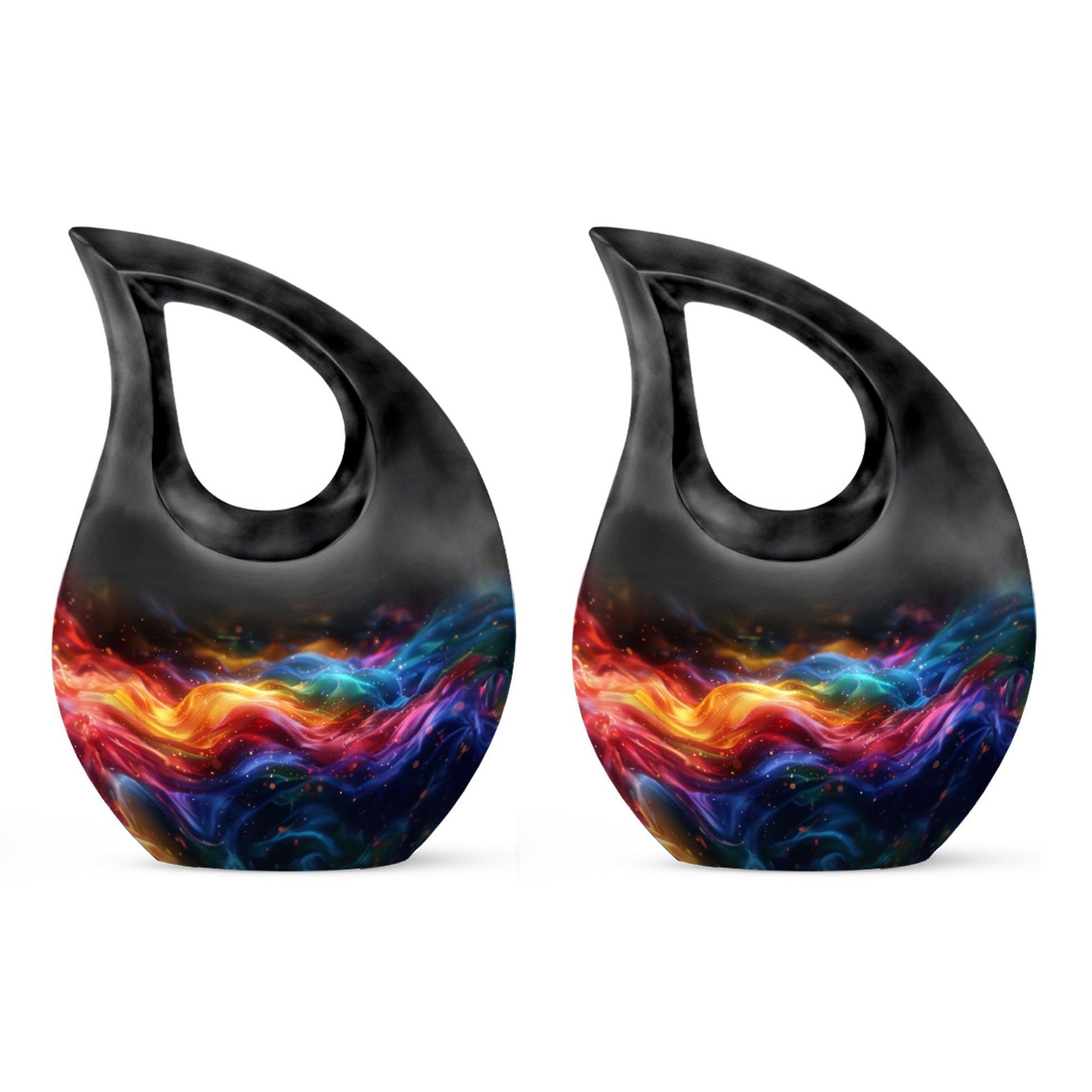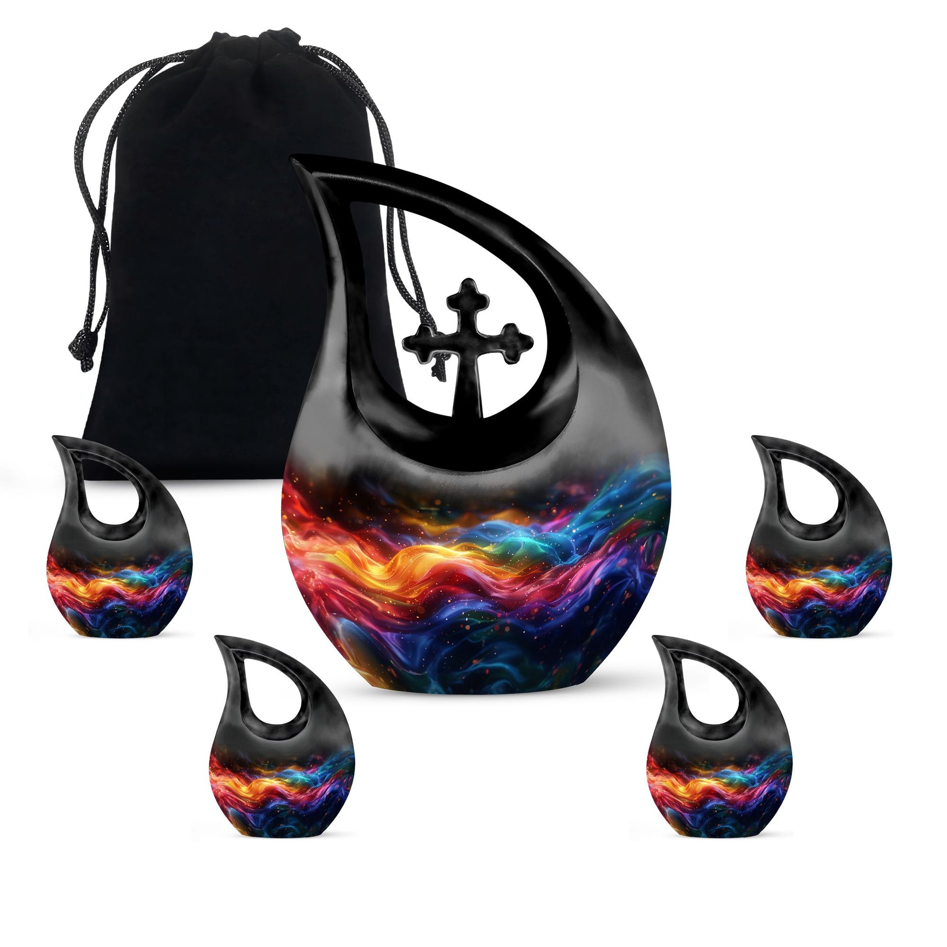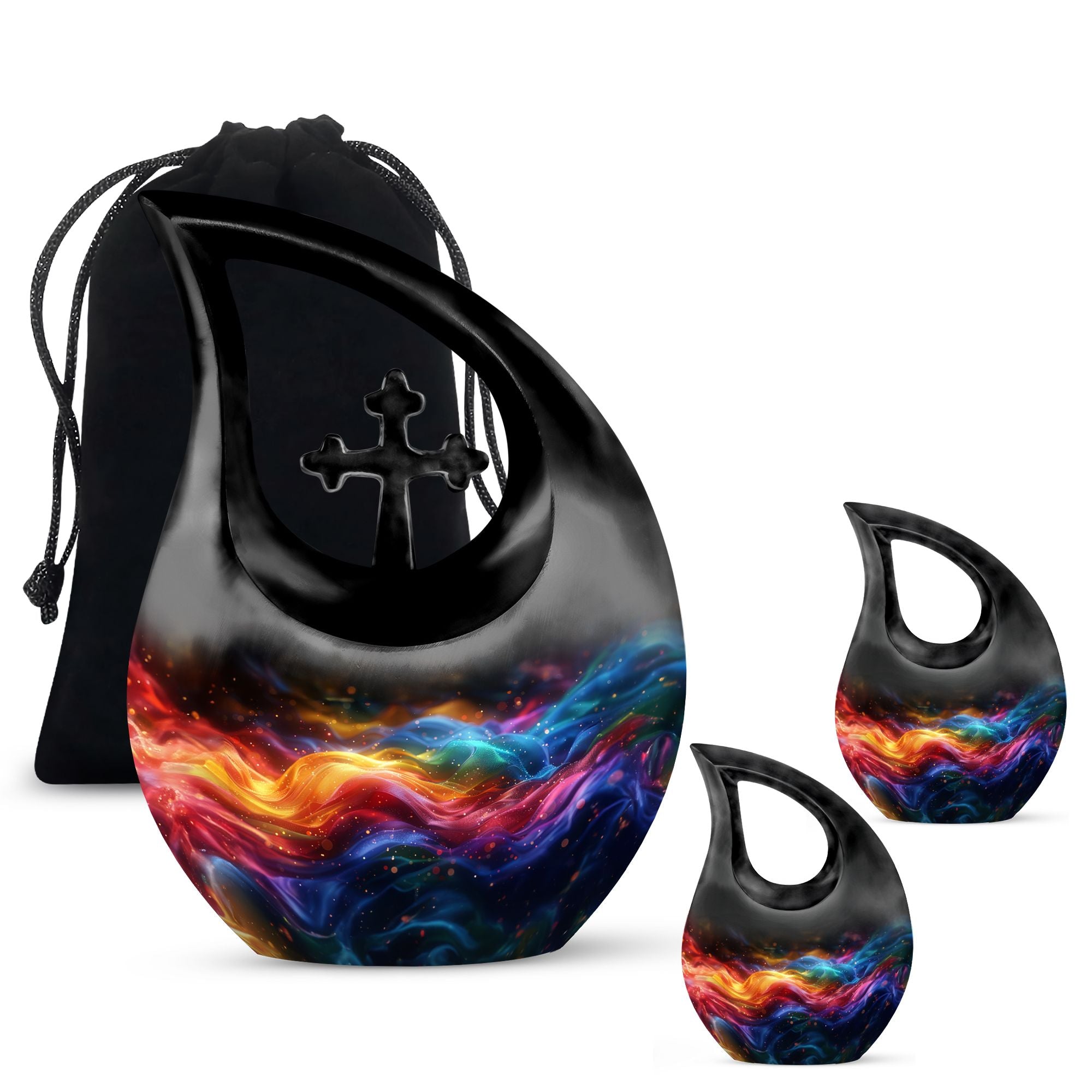 Summon a sense of serenity in remembrance with our special 'Cross Drop' Abstract Urn. This extra large urn is tailored for adults, standing 10 inches in height and having a well-proportioned weight of 3.3 pounds. Crafted skillfully from aluminium, it has a melancholy beauty that mirrors the profound sorrow of loss. Inside, it provides a generous capacity of 200 cubic inches for secure containment of ashes, bundled with a velvet pouch for additional protection. Further adding a personal touch, this unique urn offers the option to customize it with engraved names. Whether you are searching for memorial urns for human ashes, or personalized urns specifically for a beloved dad's ashes, this artful 'Cross Drop' Urn fits the bill. Lose yourself in its thoughtful abstract theme, a gentle reminder of the boundless love and memories shared with the departed.