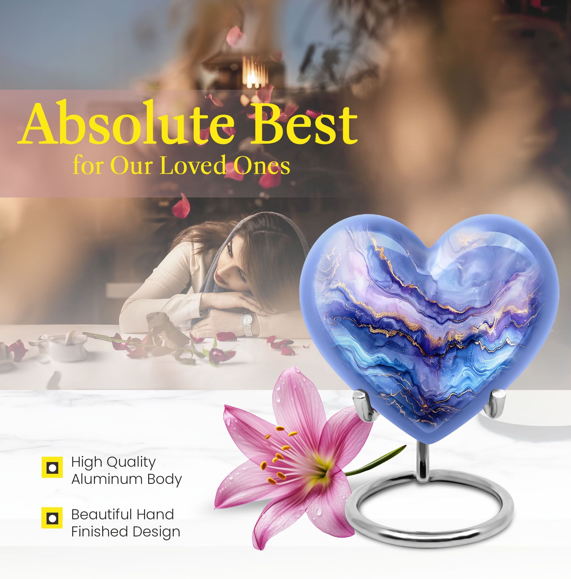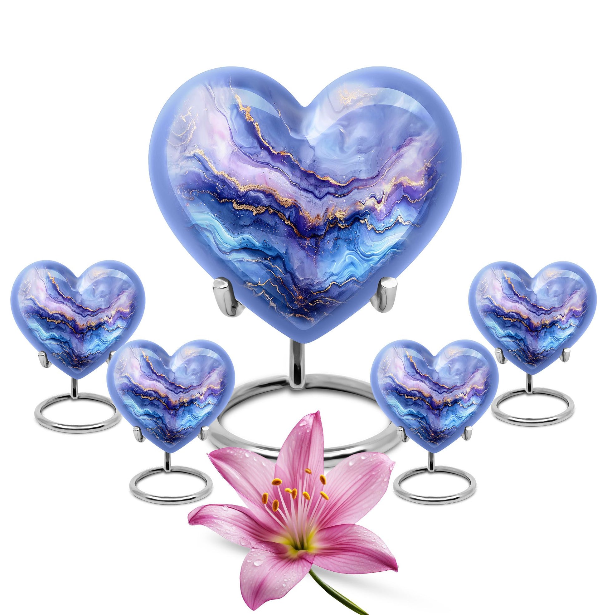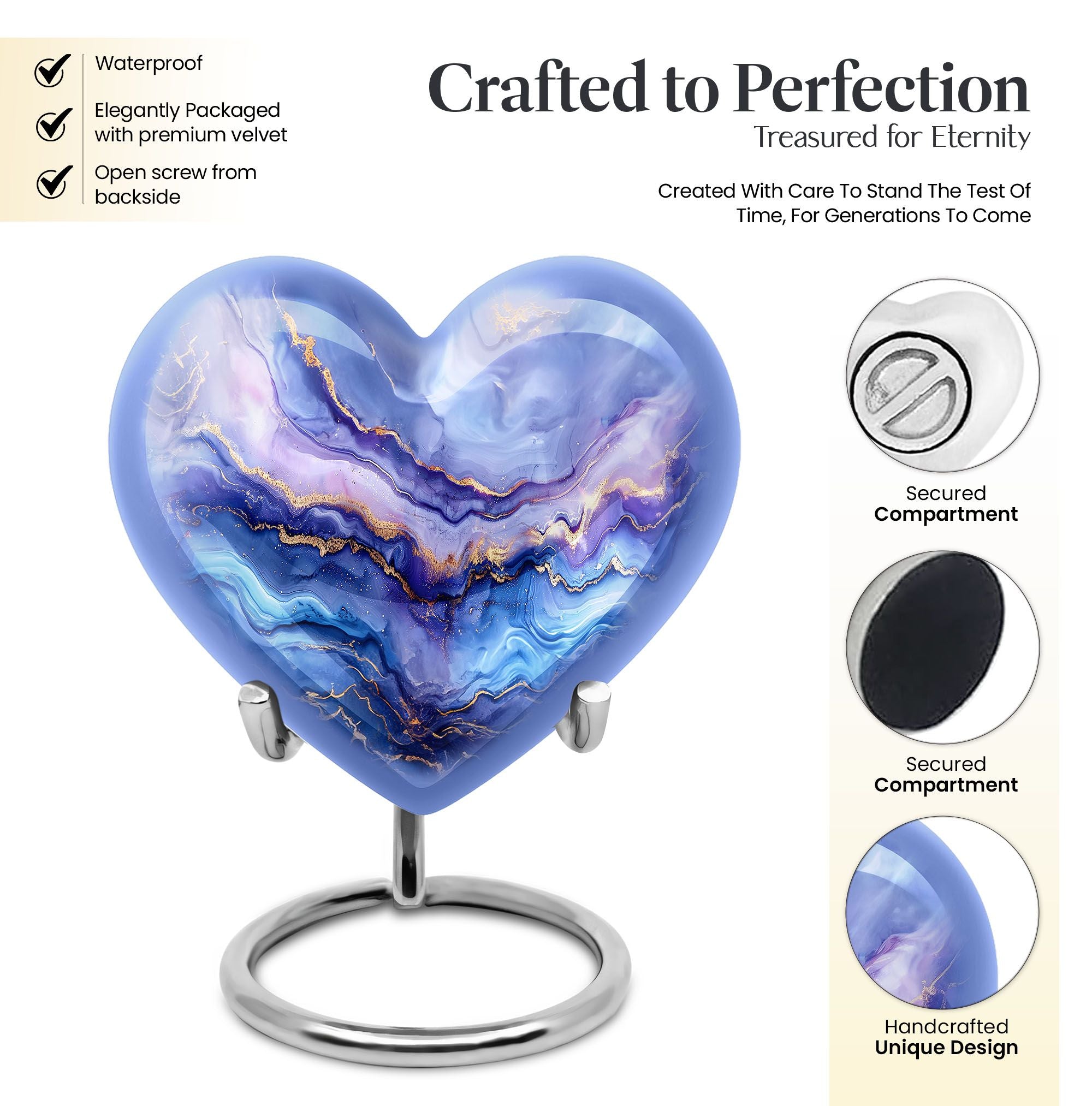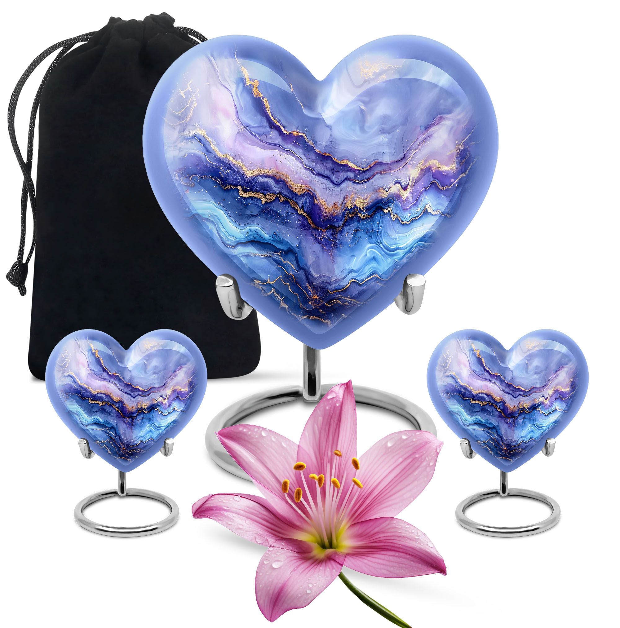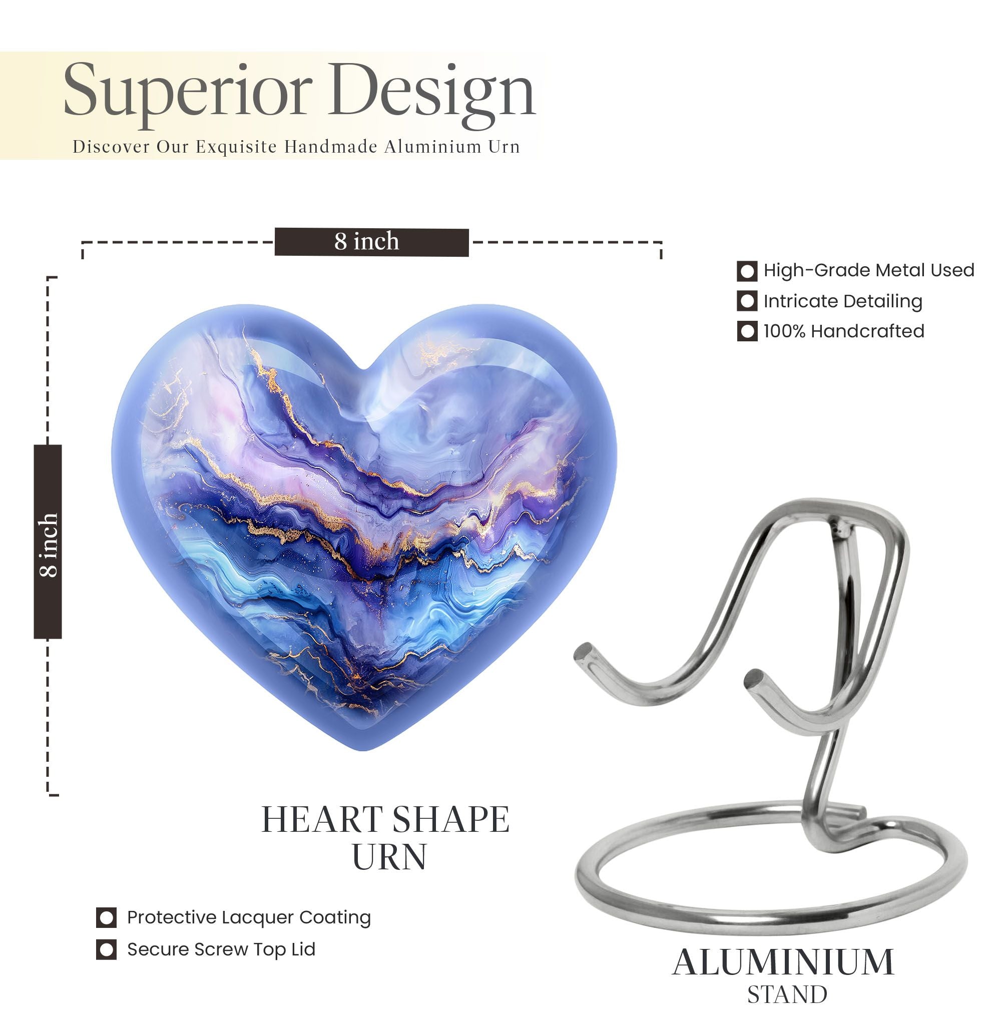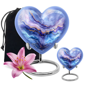 Experience the elegance and personal touch that our 10-inch Abstract Urn brings to your memorial ceremonies. This large cremation urn is perfect for adult males and can hold up to 200 cubic inches, weighing in at just 3.3 pounds for a substantial yet sensible memorial piece. With materials made from durable, high-quality aluminium, you can be assured of its durability over time. The distinctive abstract heart urn style brings a sense of elegance to your remembrance ceremonies, while its customization options allow you to personalize with engraved names, making it a distinctive token of your love and remembrance. The urn comes with a velvet pouch for safe containment and respectful carrying of ashes. As an added touch, this urn can also be used as a burial urn for in-ground purposes. This contemporary memorial is tailor-made for both men and women, making it a versatile addition to your collection of memorial urns. Perfect for those seeking a unique and meaningful way to remember their departed loved ones.