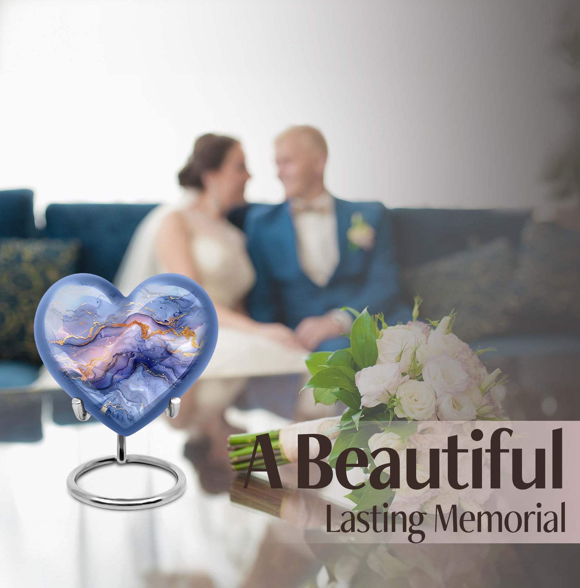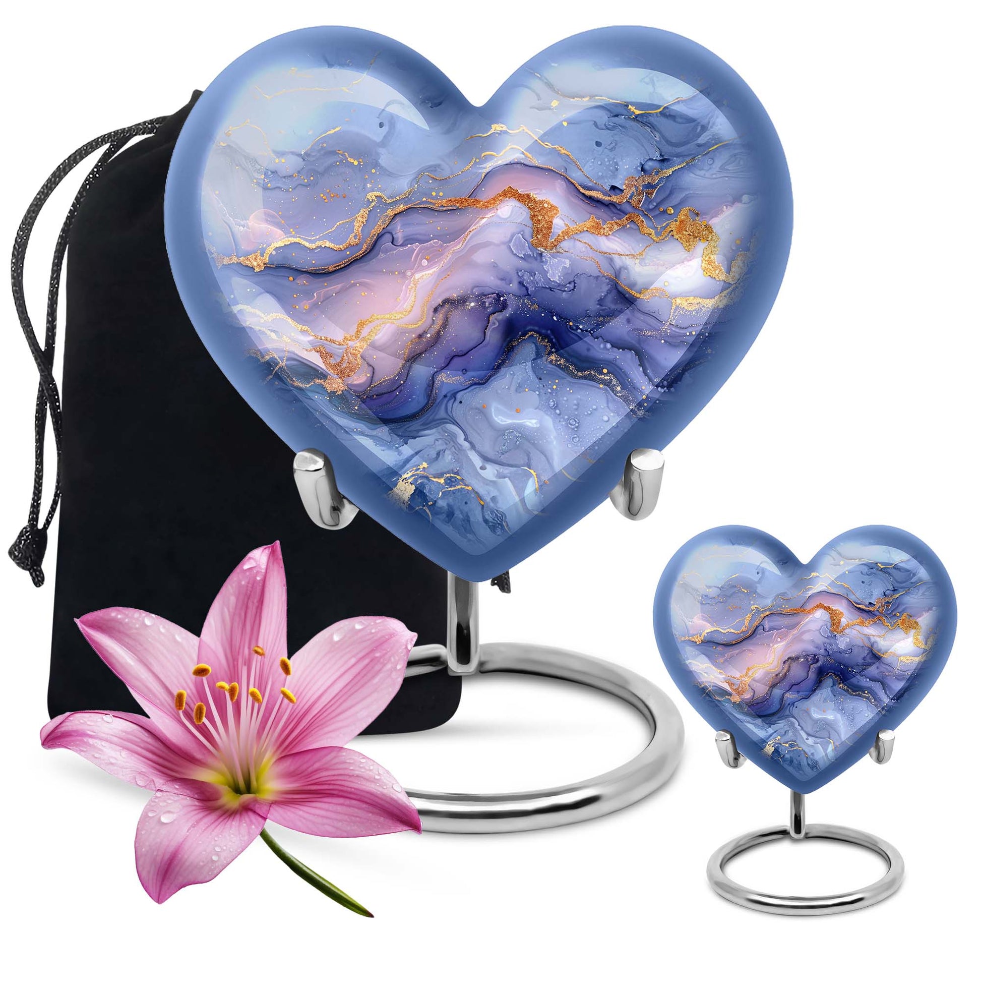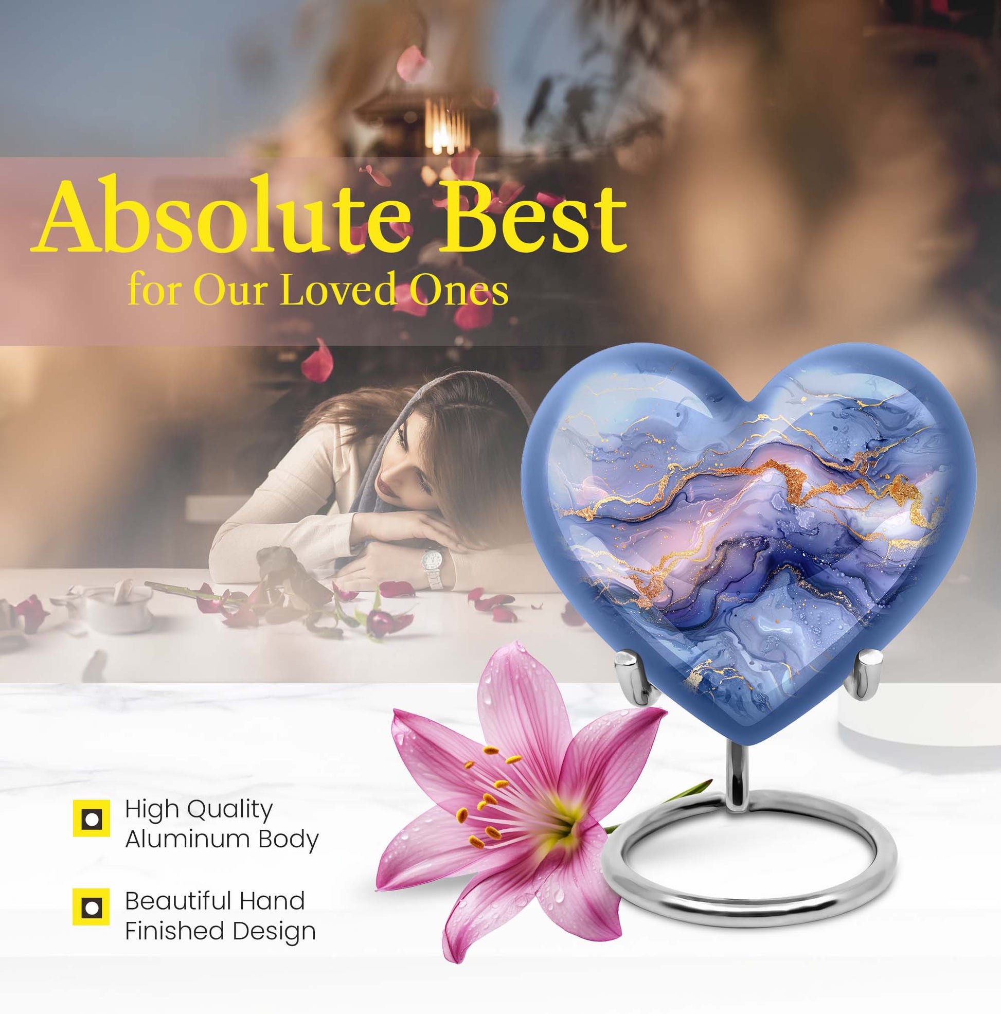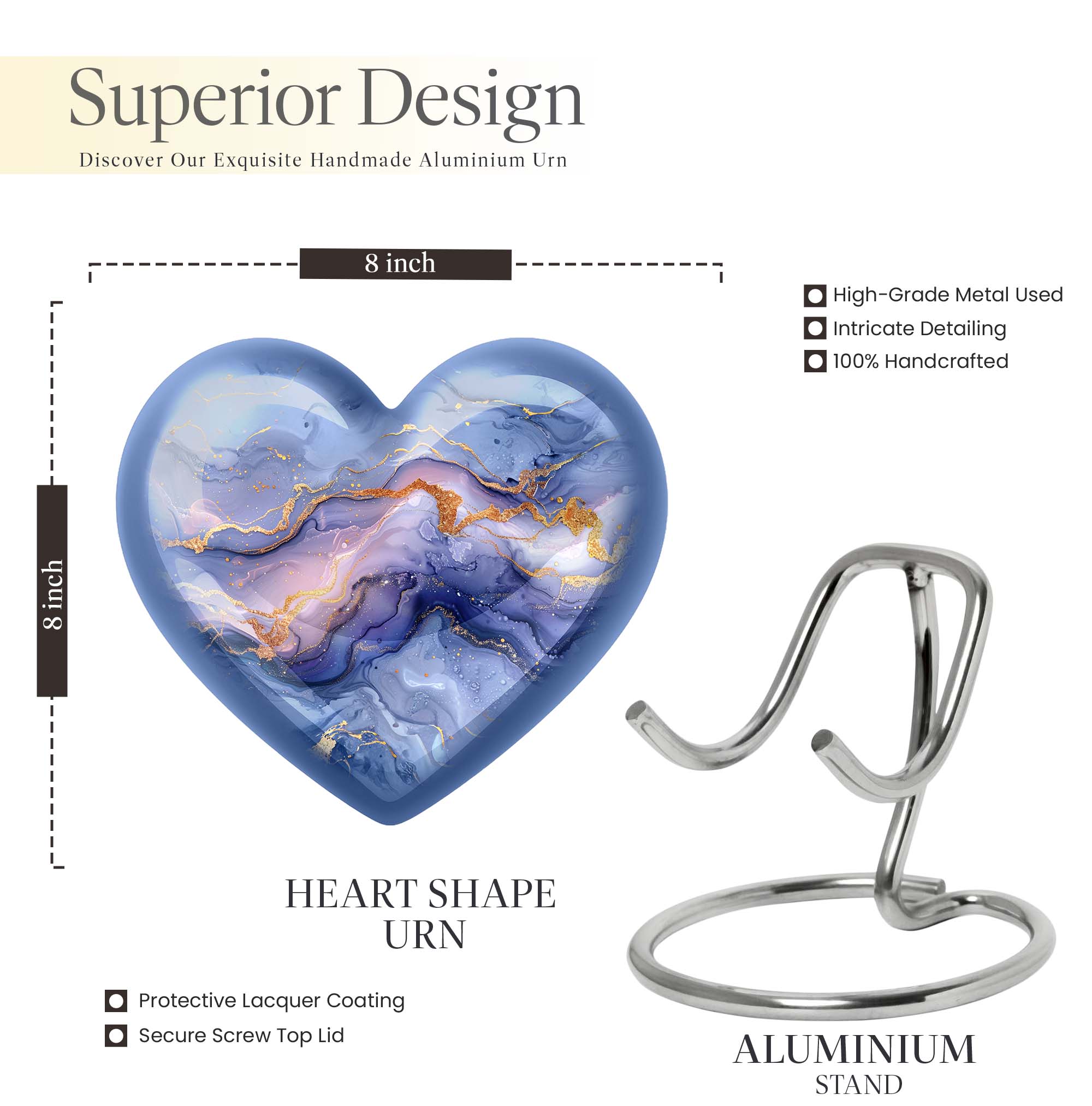 Discover our Abstract Urn, a profound piece made for encapsulating the memory of your beloved man. This individualized Large Urn offers a capacity of 200 cubic inches, ample space for the containment of ashes, and is designed to radiate emblematic memories. The urn stands at an impressive 10 inches in height, boasting a weight of 3.3 pounds, ensuring its commanding presence is felt. Crafted from sturdy Aluminium, this cremation urn for males showcases an abstract theme, a brilliant blend of the intangible and the substantial. It comes with a promise of customization; engrave the names to give it a personal touch. Alongside the urn, the package contains a velvet pouch, offering a secure and respectful containment for the ashes. As a symbolic piece, this urn impeccably combines functionality and aesthetics. Ideal for anyone searching for 'memorial urns,' 'funeral ashes urns,' or 'Large Cremation Urns for Men', this unique creation serves the solemn purpose of holding your beloved's memories in a deserving manner.