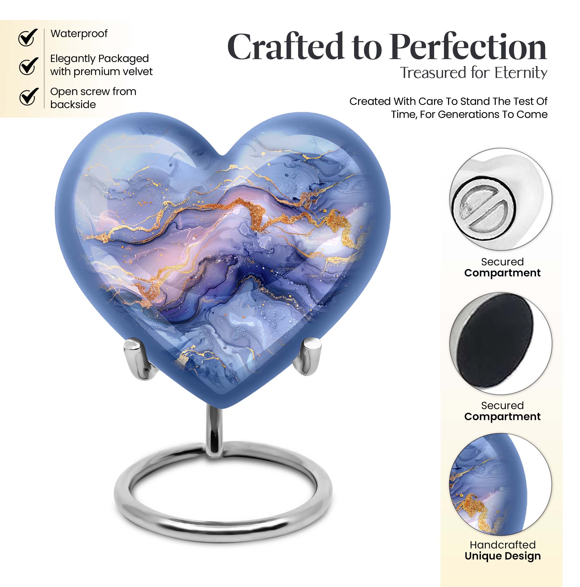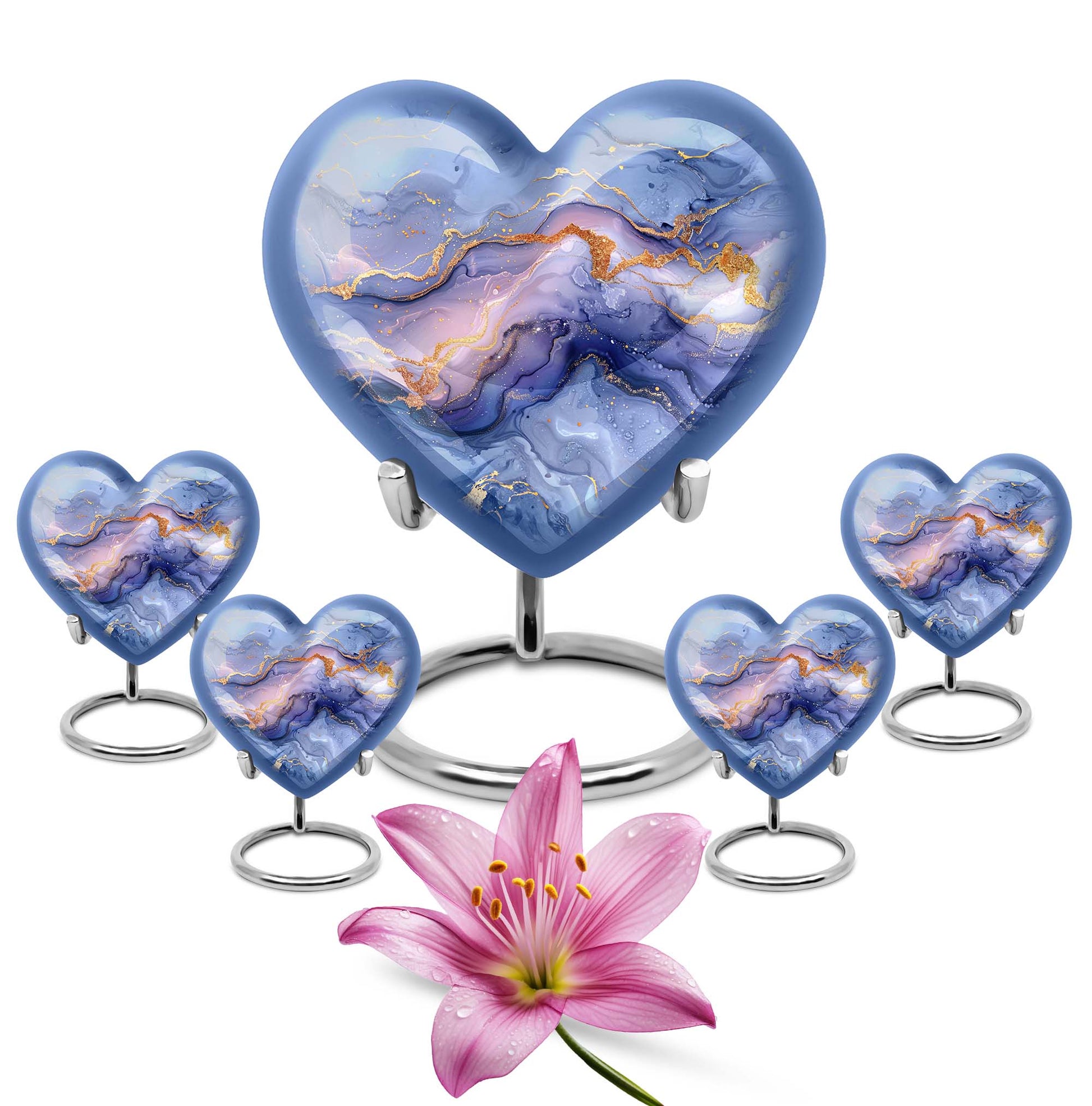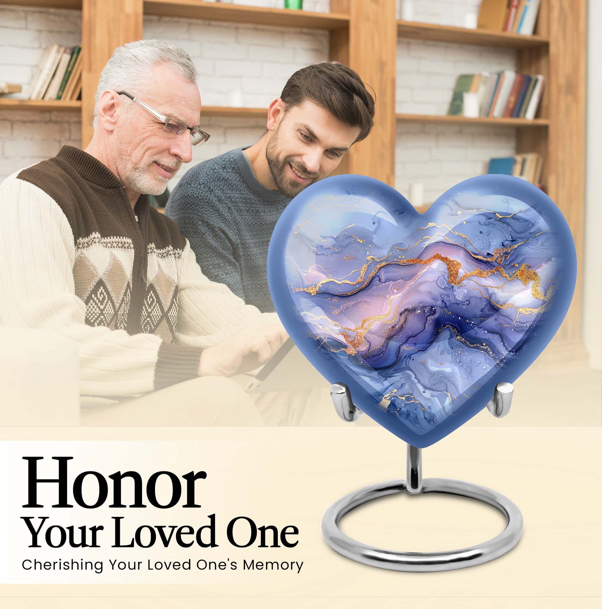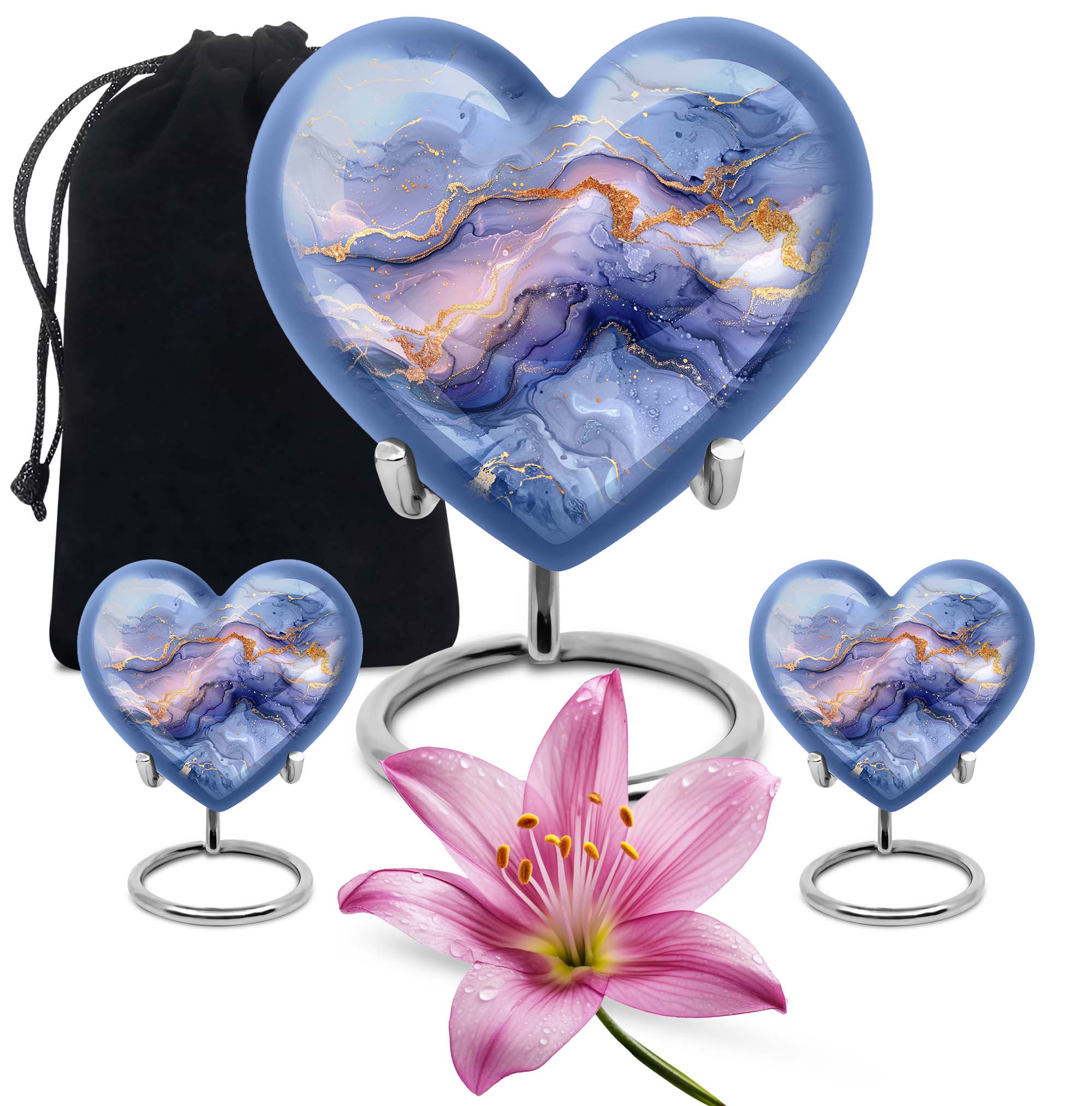 Discover our Abstract Urn, a profound piece made for encapsulating the memory of your beloved man. This individualized Large Urn offers a capacity of 200 cubic inches, ample space for the containment of ashes, and is designed to radiate emblematic memories. The urn stands at an impressive 10 inches in height, boasting a weight of 3.3 pounds, ensuring its commanding presence is felt. Crafted from sturdy Aluminium, this cremation urn for males showcases an abstract theme, a brilliant blend of the intangible and the substantial. It comes with a promise of customization; engrave the names to give it a personal touch. Alongside the urn, the package contains a velvet pouch, offering a secure and respectful containment for the ashes. As a symbolic piece, this urn impeccably combines functionality and aesthetics. Ideal for anyone searching for 'memorial urns,' 'funeral ashes urns,' or 'Large Cremation Urns for Men', this unique creation serves the solemn purpose of holding your beloved's memories in a deserving manner.