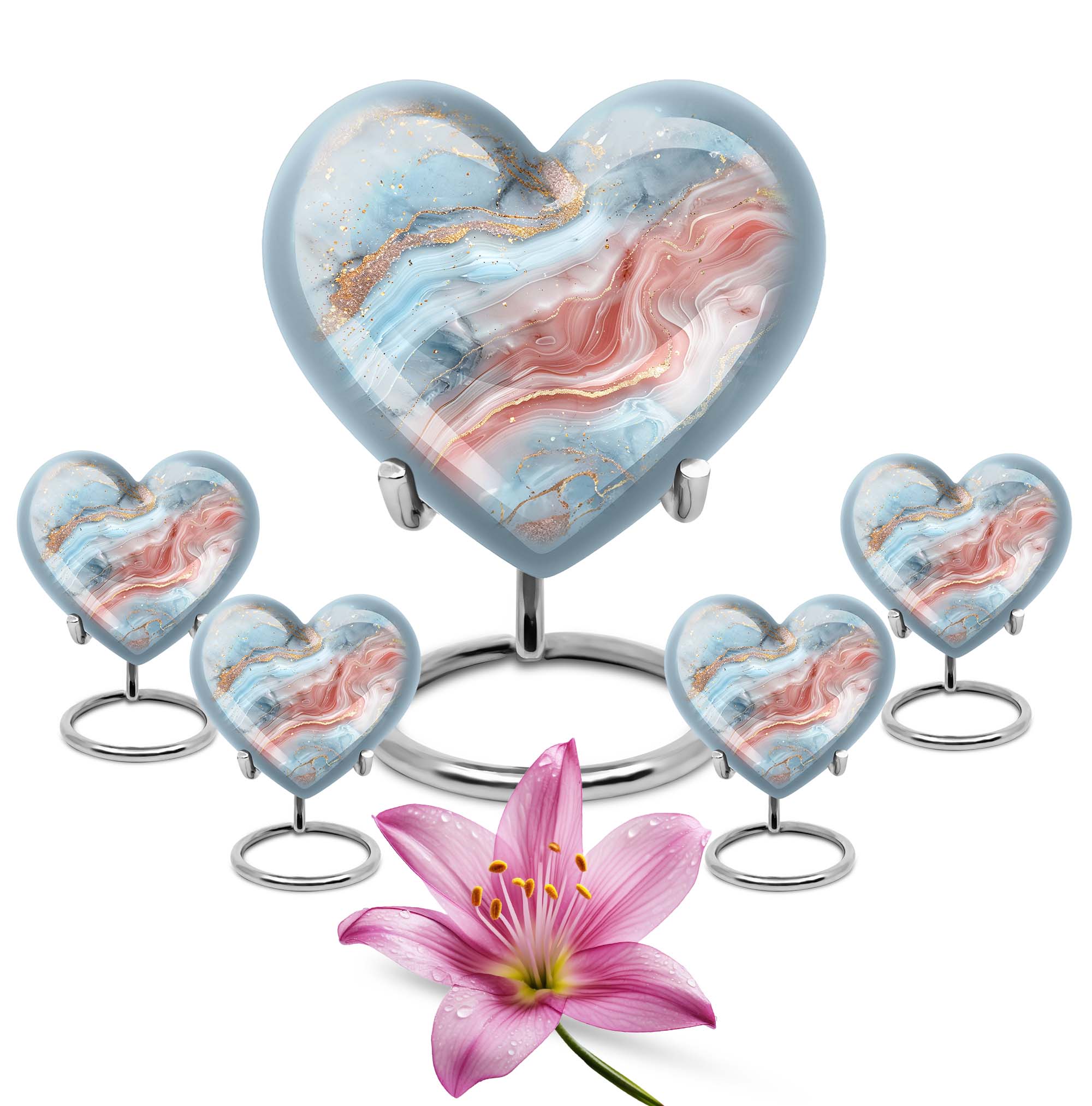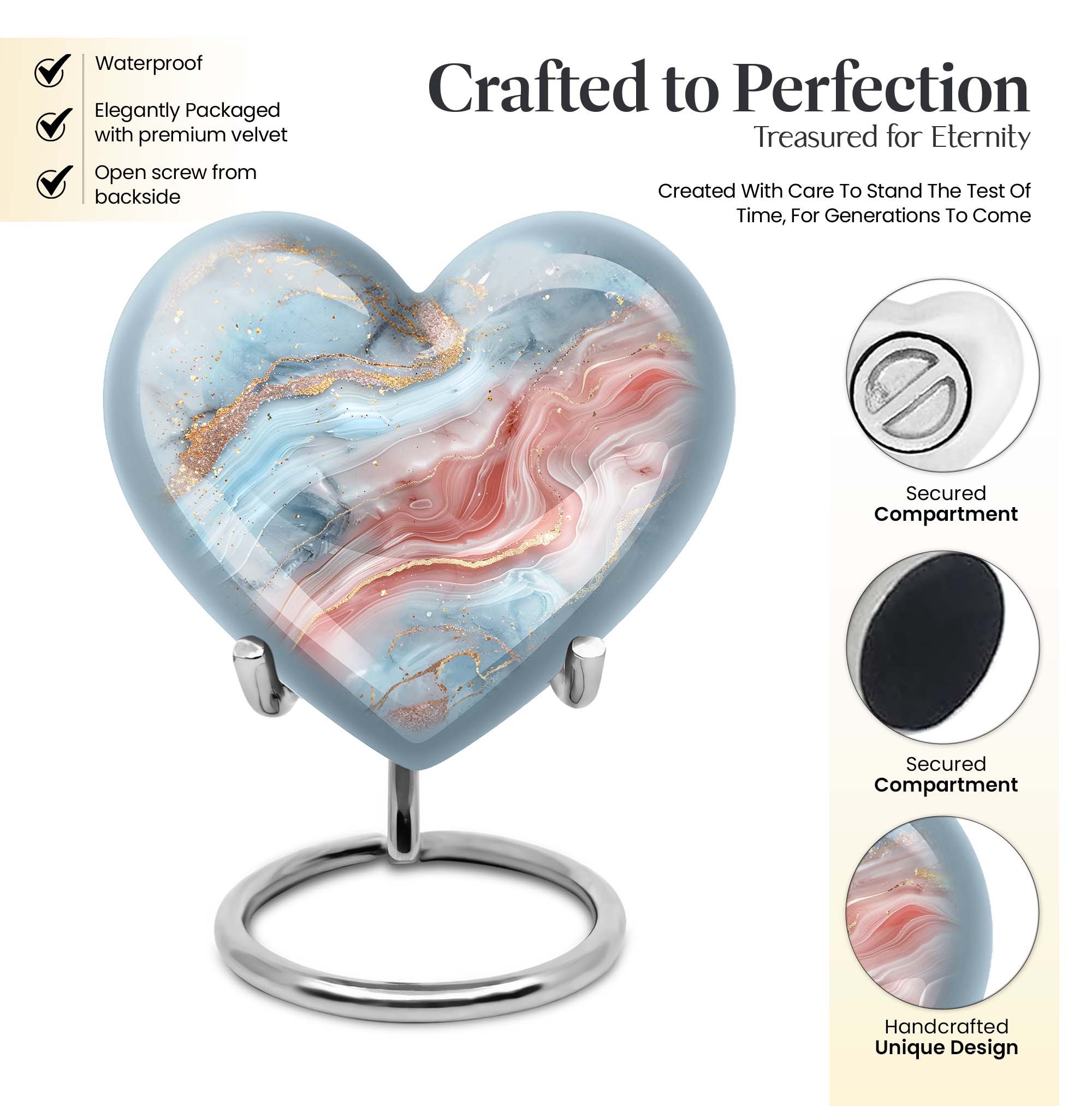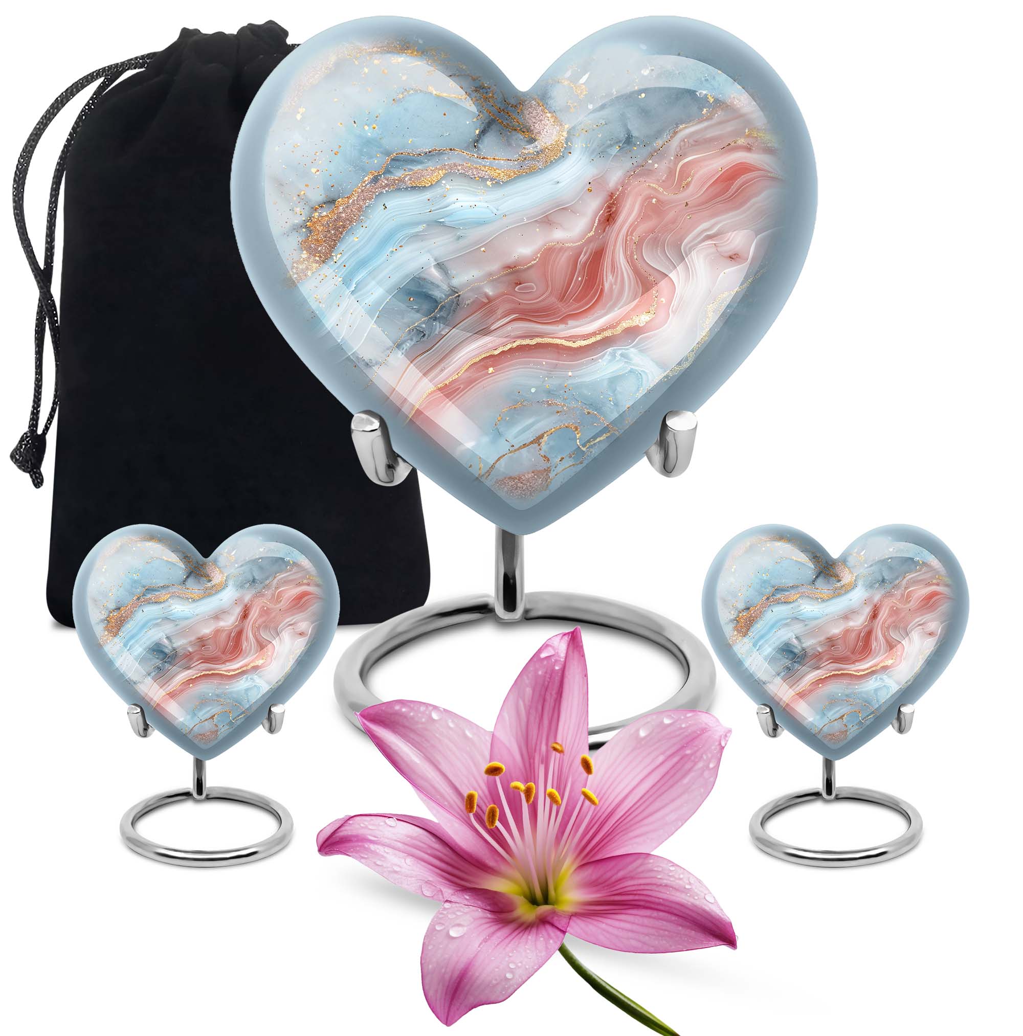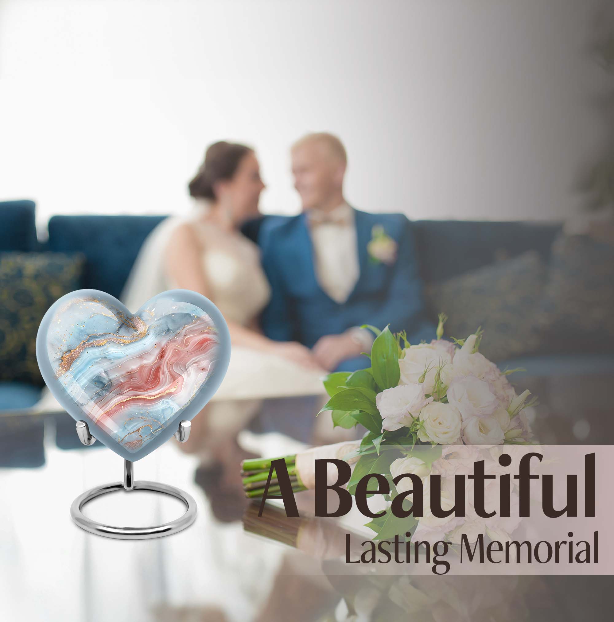 Treasure the memories of your loved one with our tastefully crafted Abstract Urn, an optimal choice for cremation urns for ashes suited for adult males. Constructed from high-quality Aluminium, these large-sized Memorial urns have a height of 10 inches. Weighing just 3.3 pounds, these Urns boast a capacity of 200 cubic inches, ideal for the respectful containment of ashes. What makes our Abstract Urn stand out is the degree of personalization it offers. Customize your order with engraved names, rendering it a heartfelt homage to the departed. It comes with a comforting velvet pouch to safely house the ashes. Its abstract theme and stunning heart shape make it a dignified homage piece. An additional advantage of this urn is its portability, which makes it an ideal pick for travel. It is tasteful, touchingly personal, and thoughtful - a fitting tribute to the memory of your loved one.