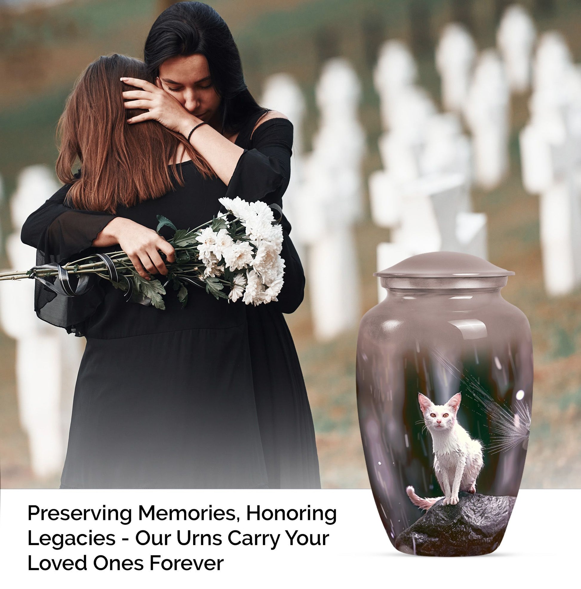 Abstract White Cat Memorial Urn, Tribute for Loved Ones