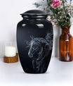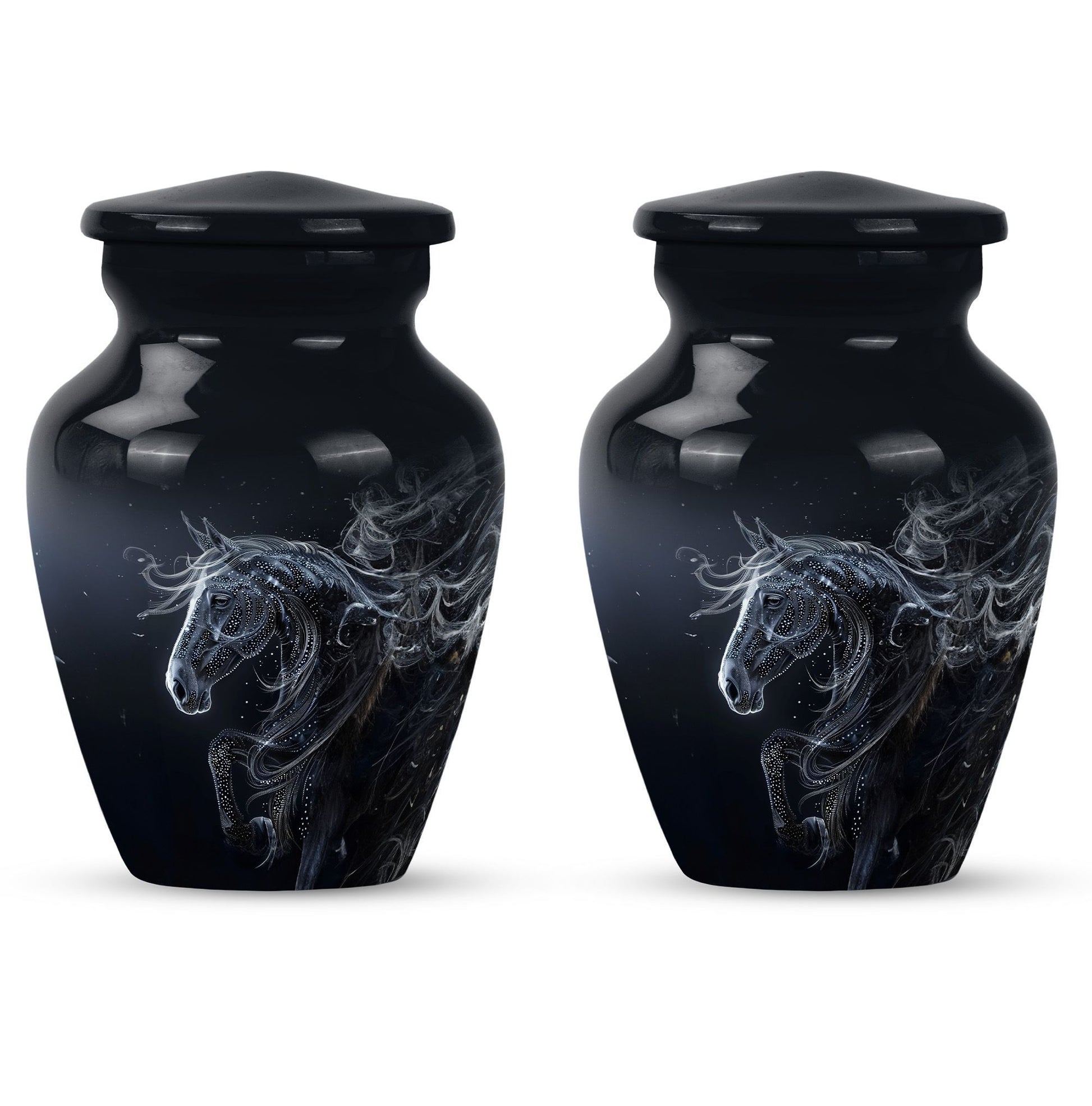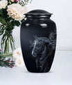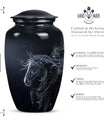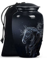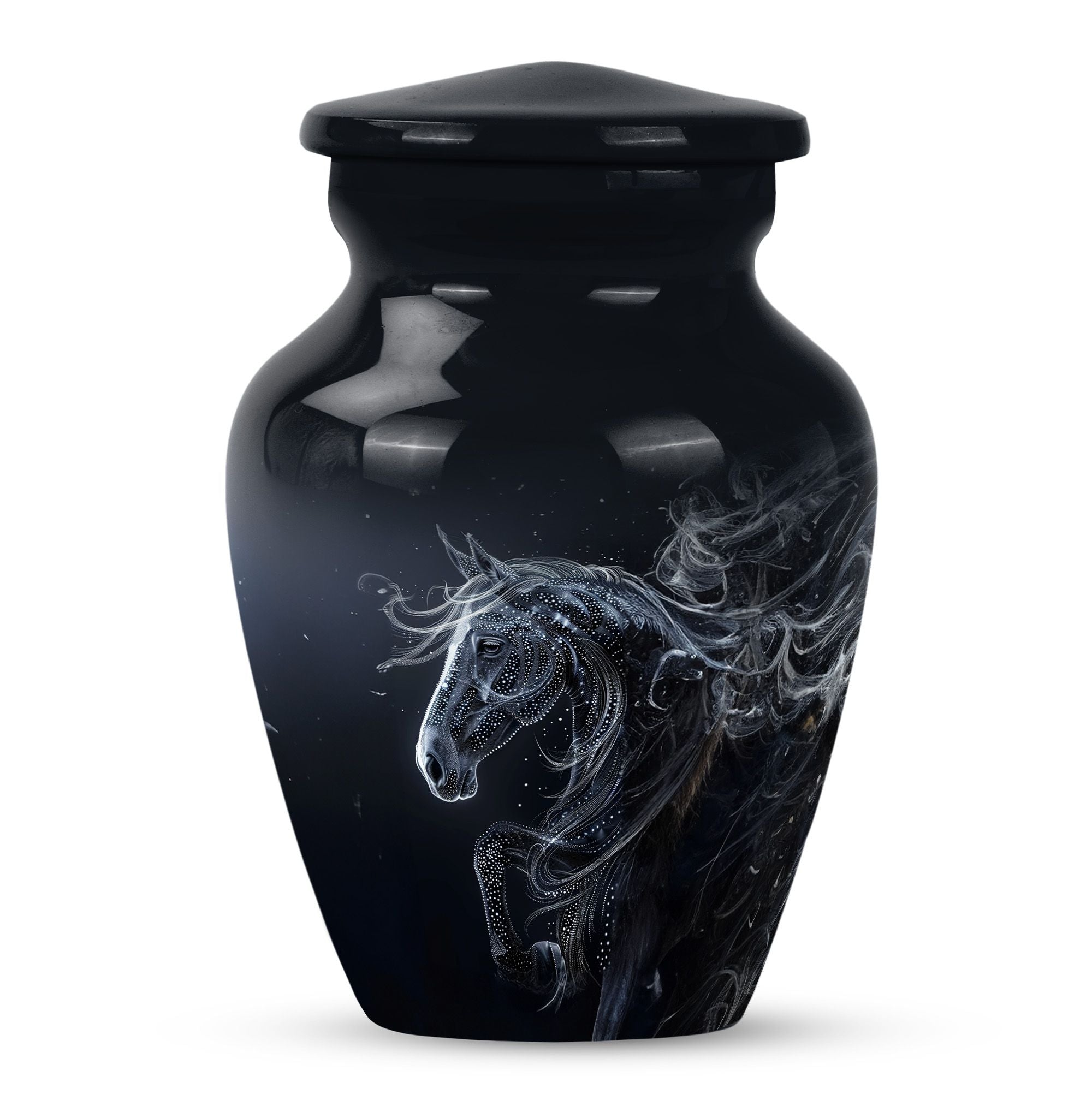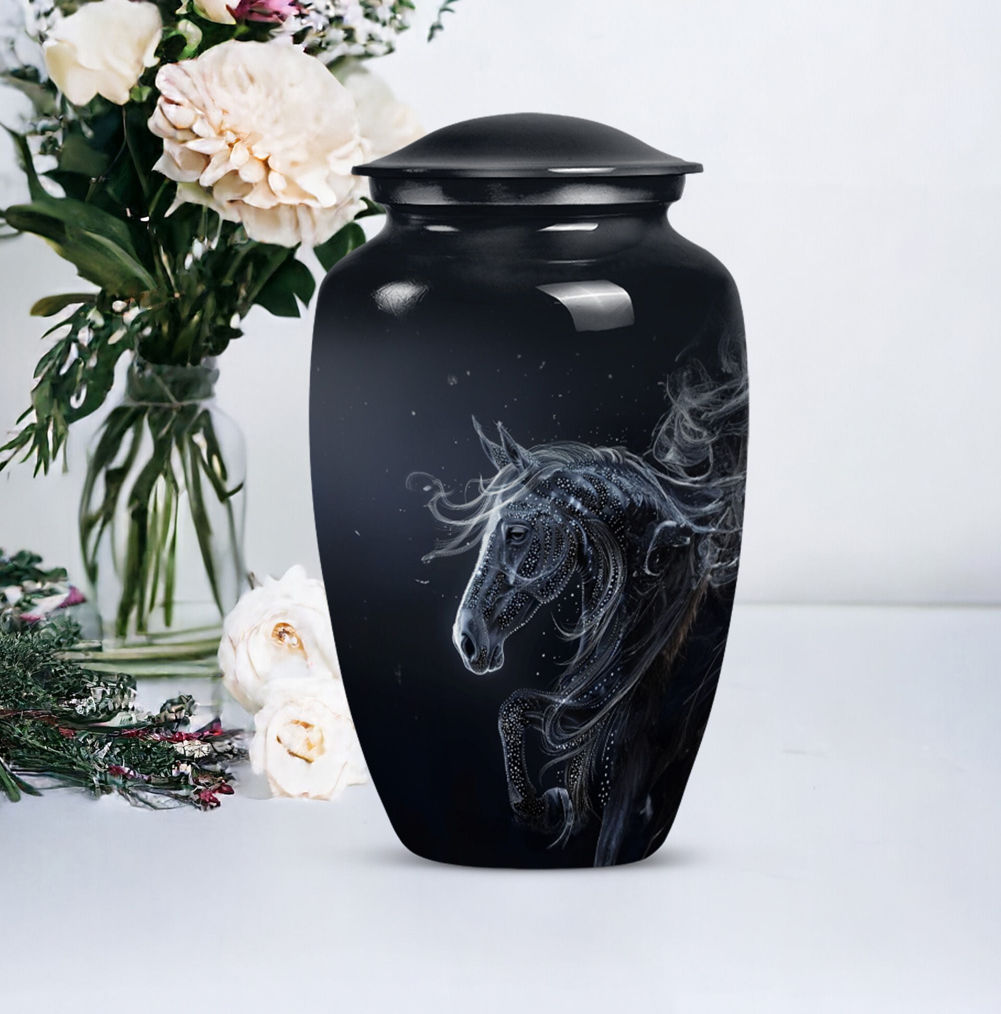 Embark on a tranquil and serene journey towards peaceful remembrance with our Large Urn for Ashes. Perfect for those seeking a Horse Urn or a cremation urn for an adult male, our product fuses reliability and tranquility in a single, seamless experience. Its robust physique, weighing in at 3.3 pounds, and towering 10 inches tall, is a testament to our commitment for quality memorial urns that stand the test of time. Enveloped in a stylish Aluminium exterior, our urn highlights an enchanting abstract theme that connects the departed with the divine. Prepared to hold 200 cubic inches securely, the urn's ample capacity accommodates most needs. For a personalised touch, engrave names on the urn to make it unique. The urn boasts portability, making it an ideal travelling companion for those cherished moments of remembrance on-the-go. Finally, it comes complete with a lovely velvet pouch, offering an undemanding containment solution for the pioneers of the voyage. This urn is not just a product; it is a tribute to life's fleeting yet beautiful moments.