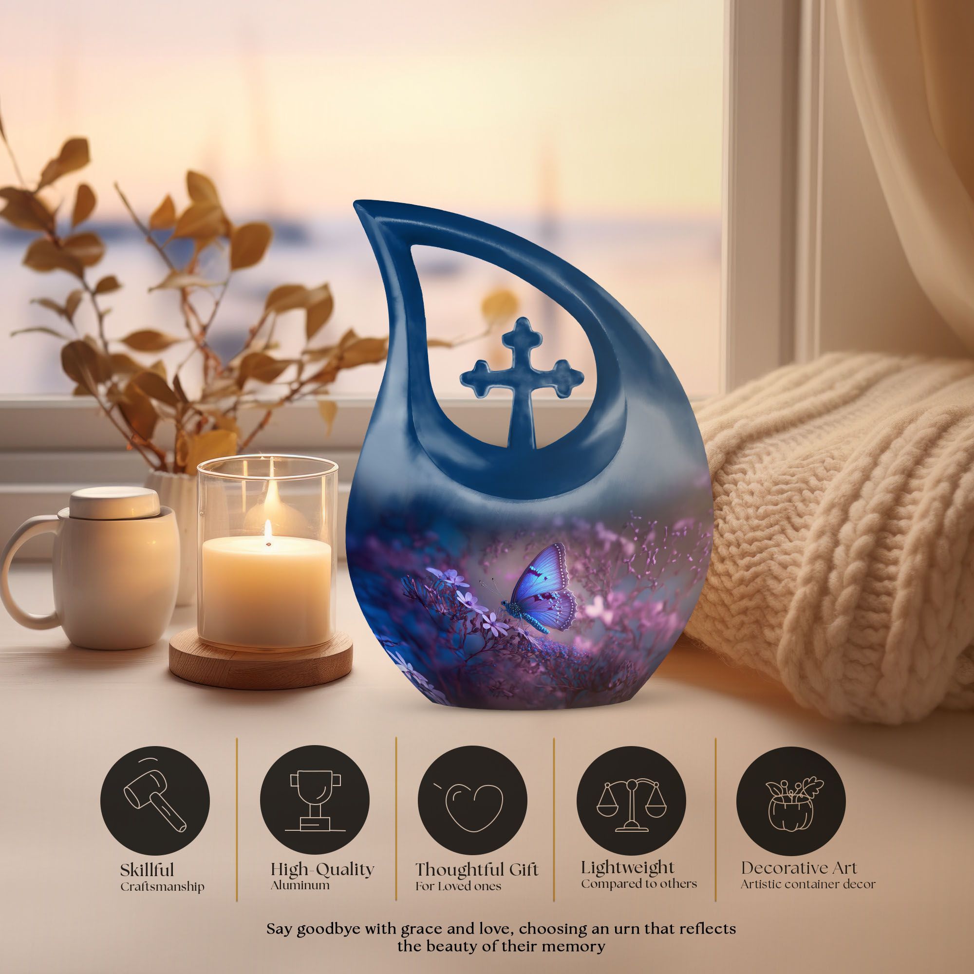 This urn also works beautifully as a keepsake for ashes or ashes keepsake for human ashes, offering families a tender way to honor their loved one. Whether displayed at home or used during memorial ceremonies, the Blue Butterfly Cremation Ashes Urn provides comfort and a lasting tribute.