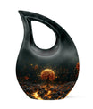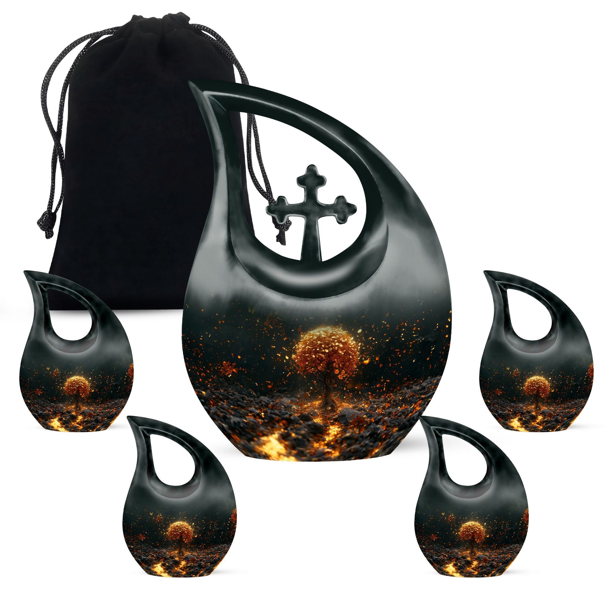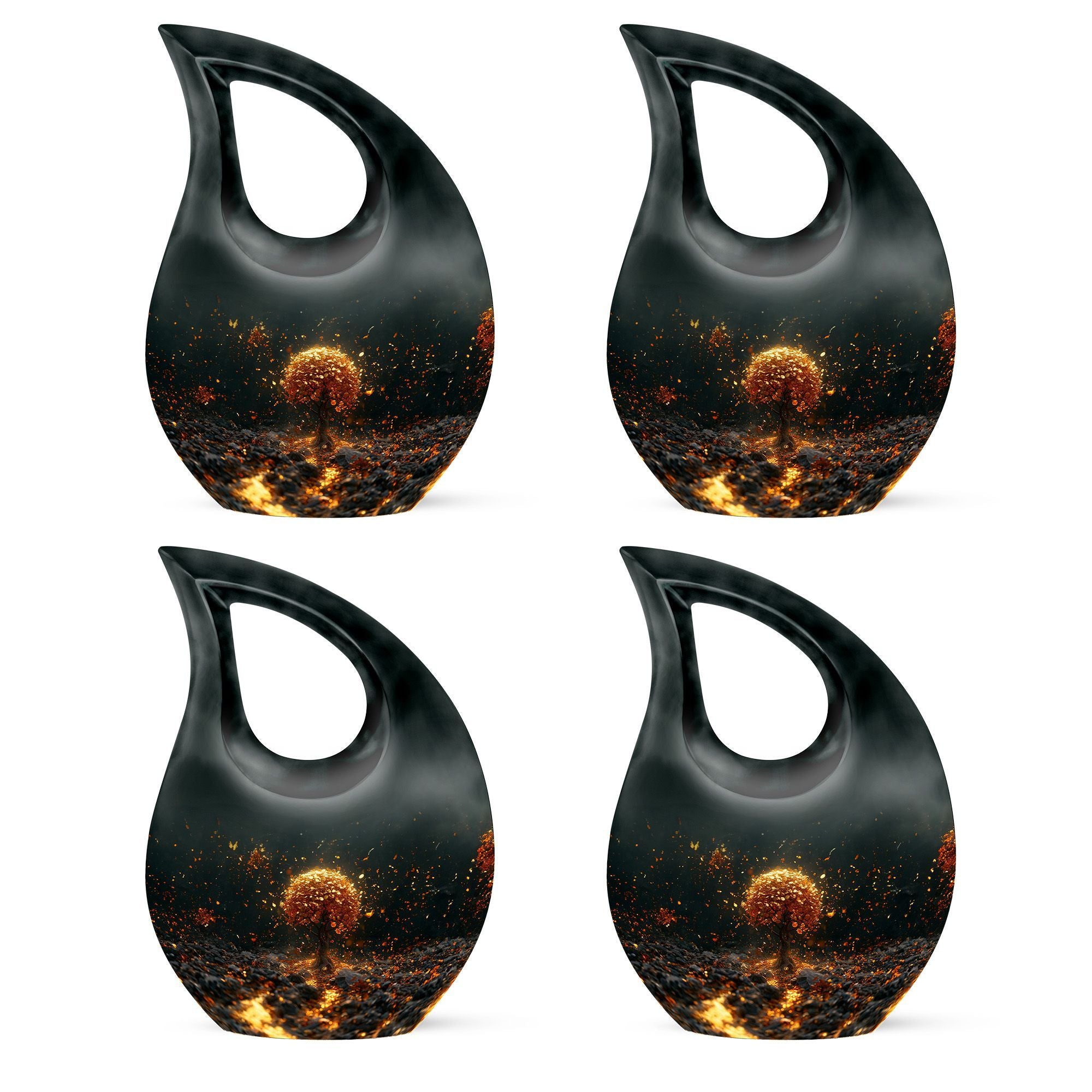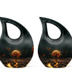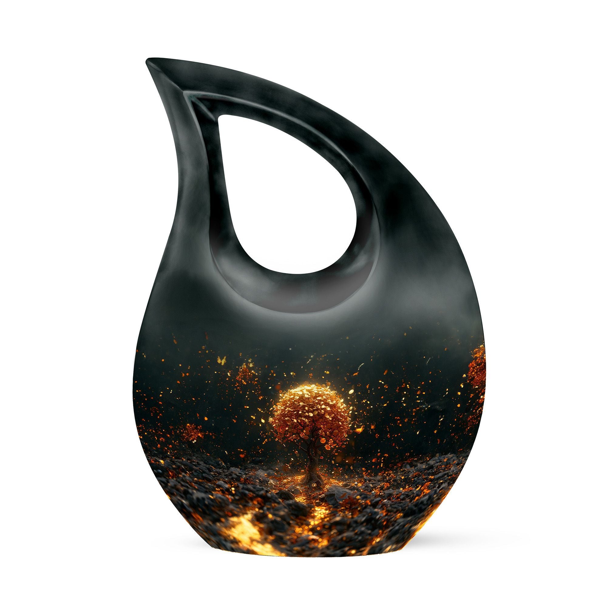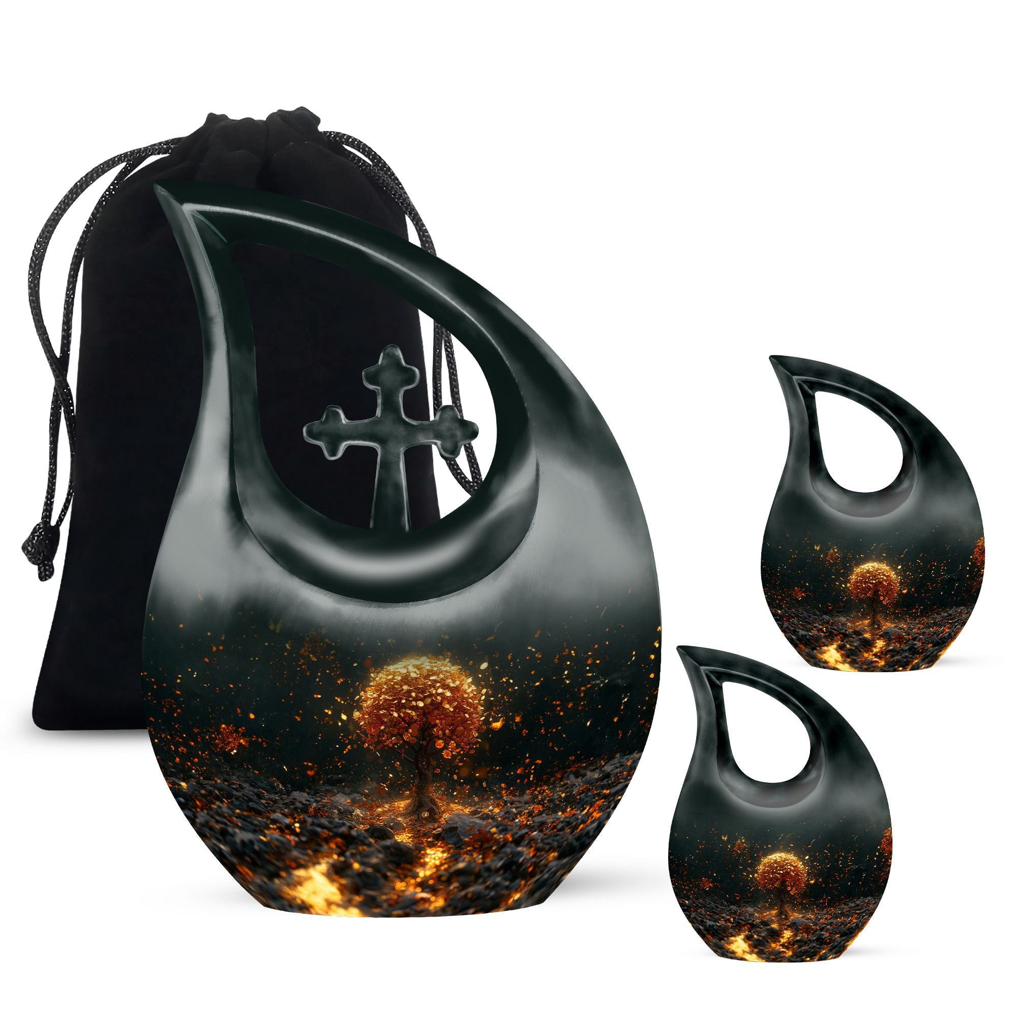 Treasure those precious memories with our Tree Of Life Urn, a symbol of eternal growth and rebirth. Stretching beyond the usual while retaining an affordable price, our 10-inch memorial urn is a beautifully hewn from premium aluminium, lending exceptional durability and shine. It carries an approximate weight of 3.3 pounds, housing up to 200 cubic inches of memories encapsulated. It features a unique Cross Drop theme harmoniously merging with the Tree Of Life symbolism, reflecting a journey towards peace and tranquility. The urn comes neatly packed alongside a velvet pouch catering to the safe containment of ashes. Further adding to its value is the option of personalization- engrave names that echo in eternity. For those seeking urns for ashes for adults or seeking a meaningful urn for sale that respects your budget and emotional quotient, our Tree Of Life urn easily fills that niche. If you're considering a cheap cremation urn that doesn't compromise on sentiment, our Tree Of Life urn is the epitome of love everlasting.