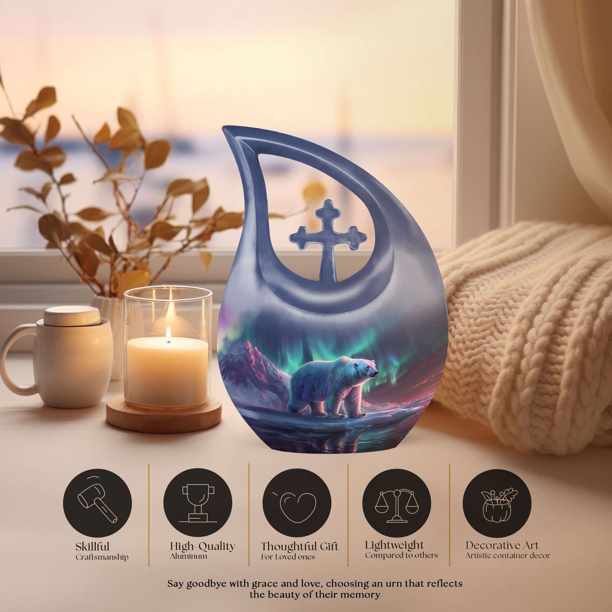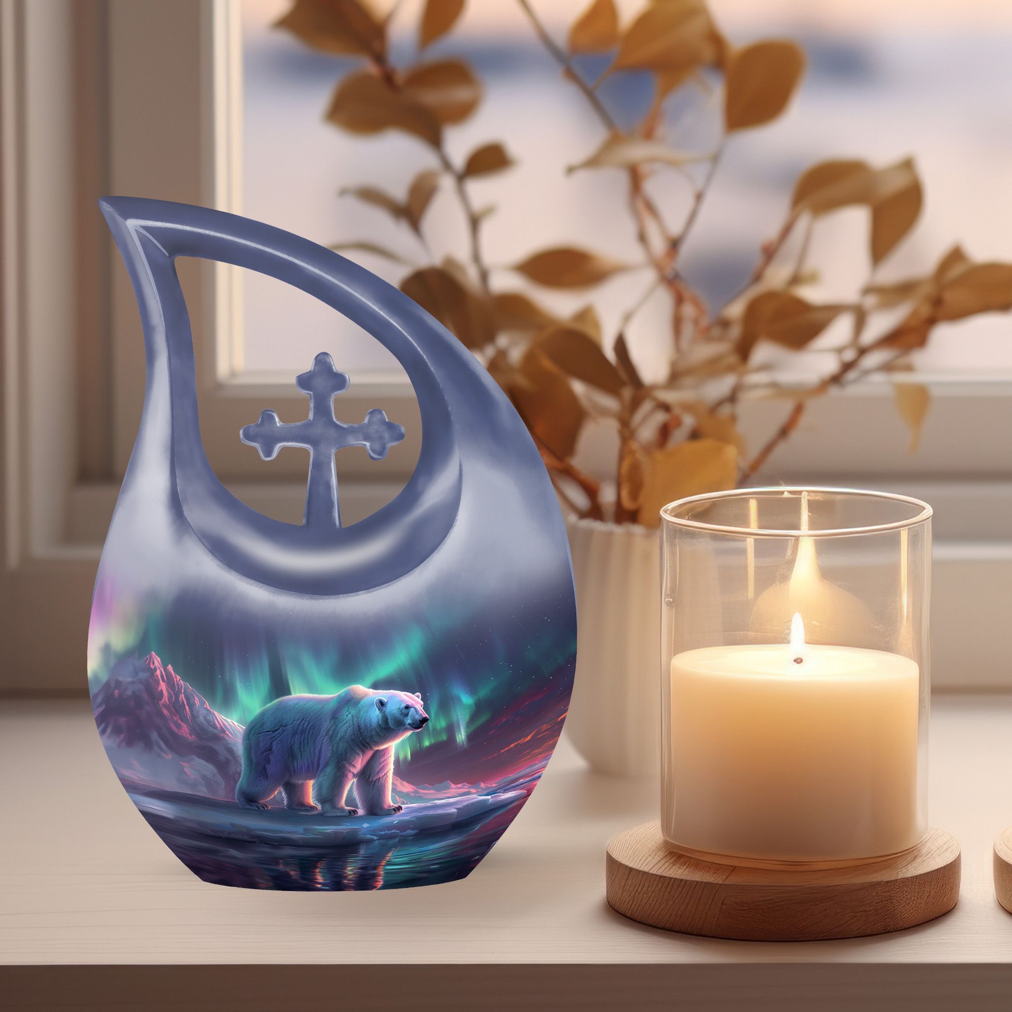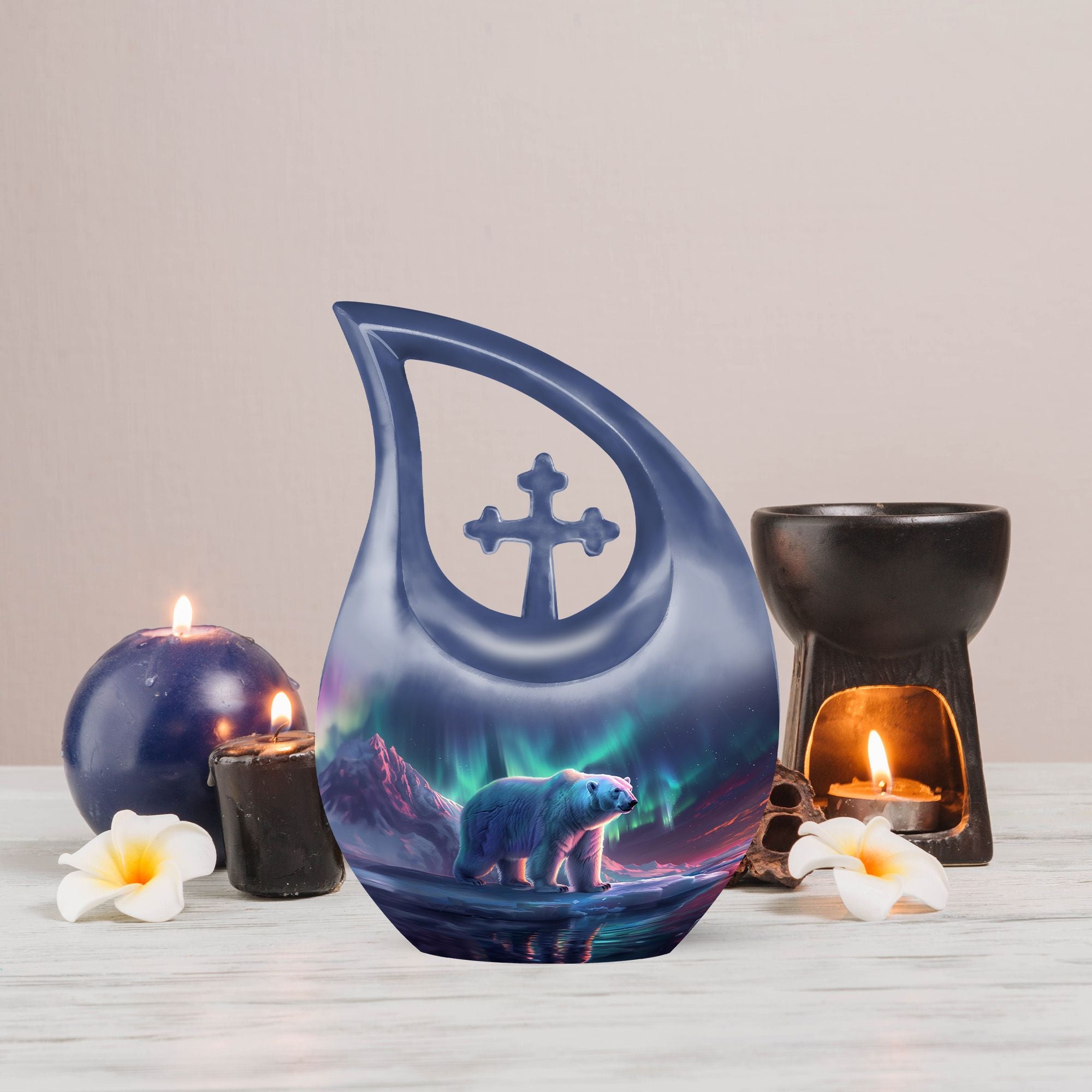 A compassionate and heartfelt tribute, this Polar Bear Memorial Urn provides a dignified resting place for a cherished loved one. Thoughtfully crafted, it offers peace and comfort to families seeking cremation urns for adult ashes women, funeral urns for men, or a versatile memorial suitable for anyone.