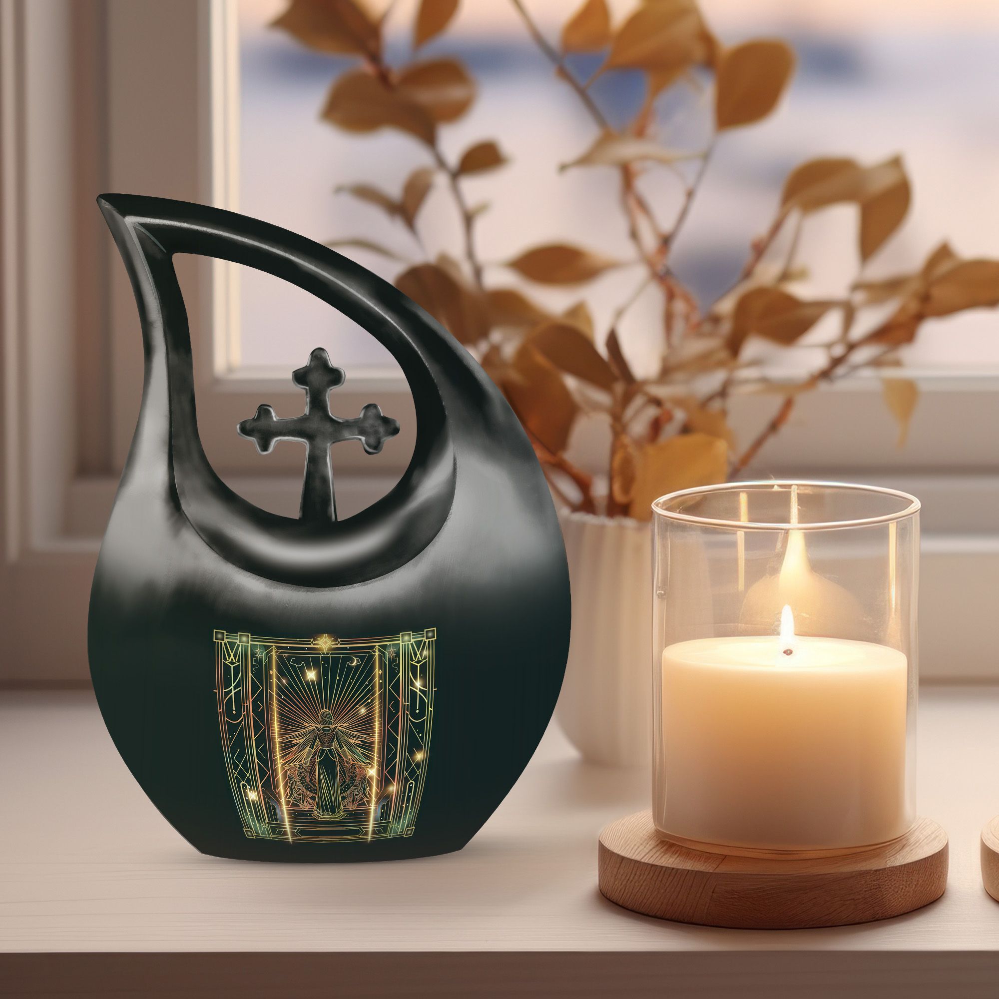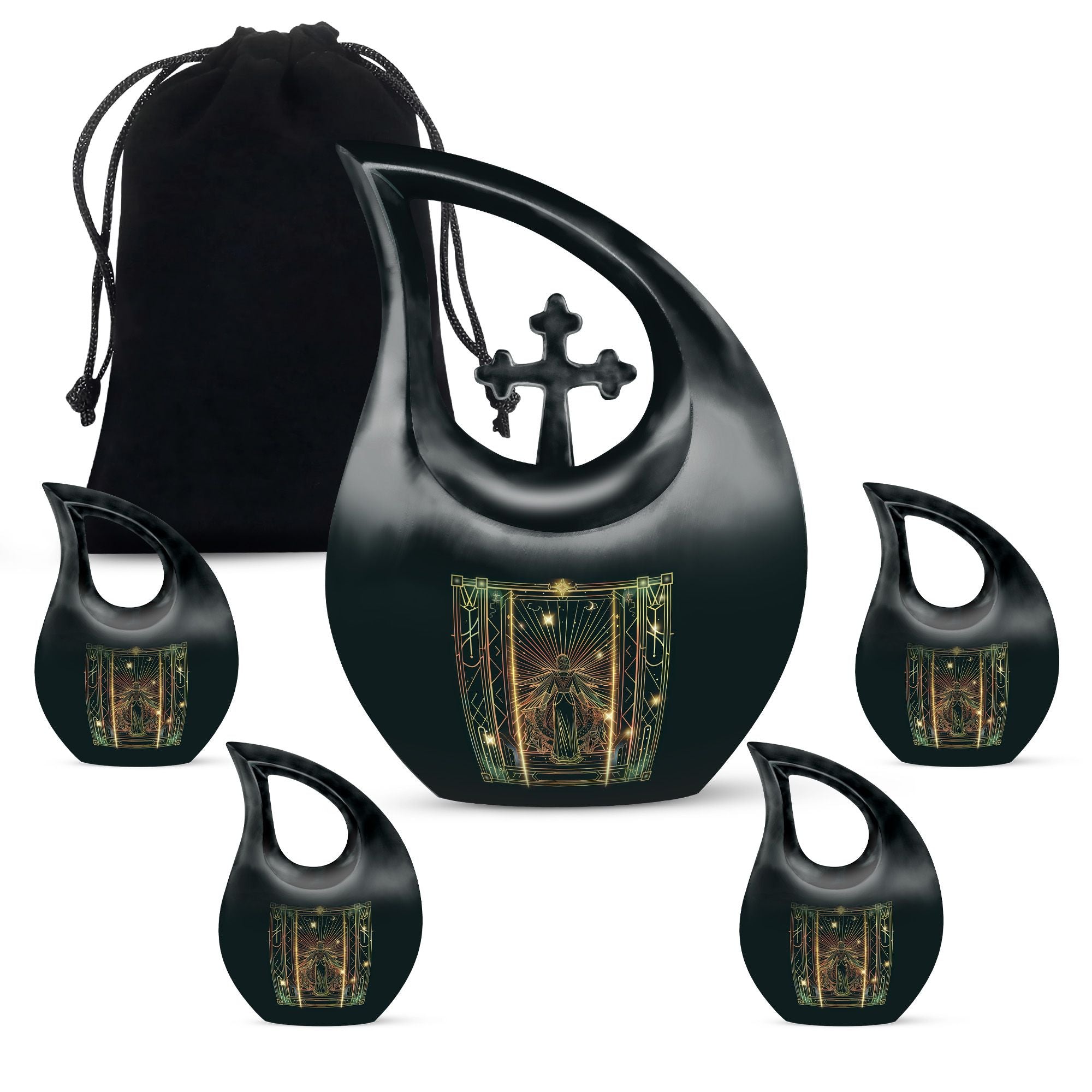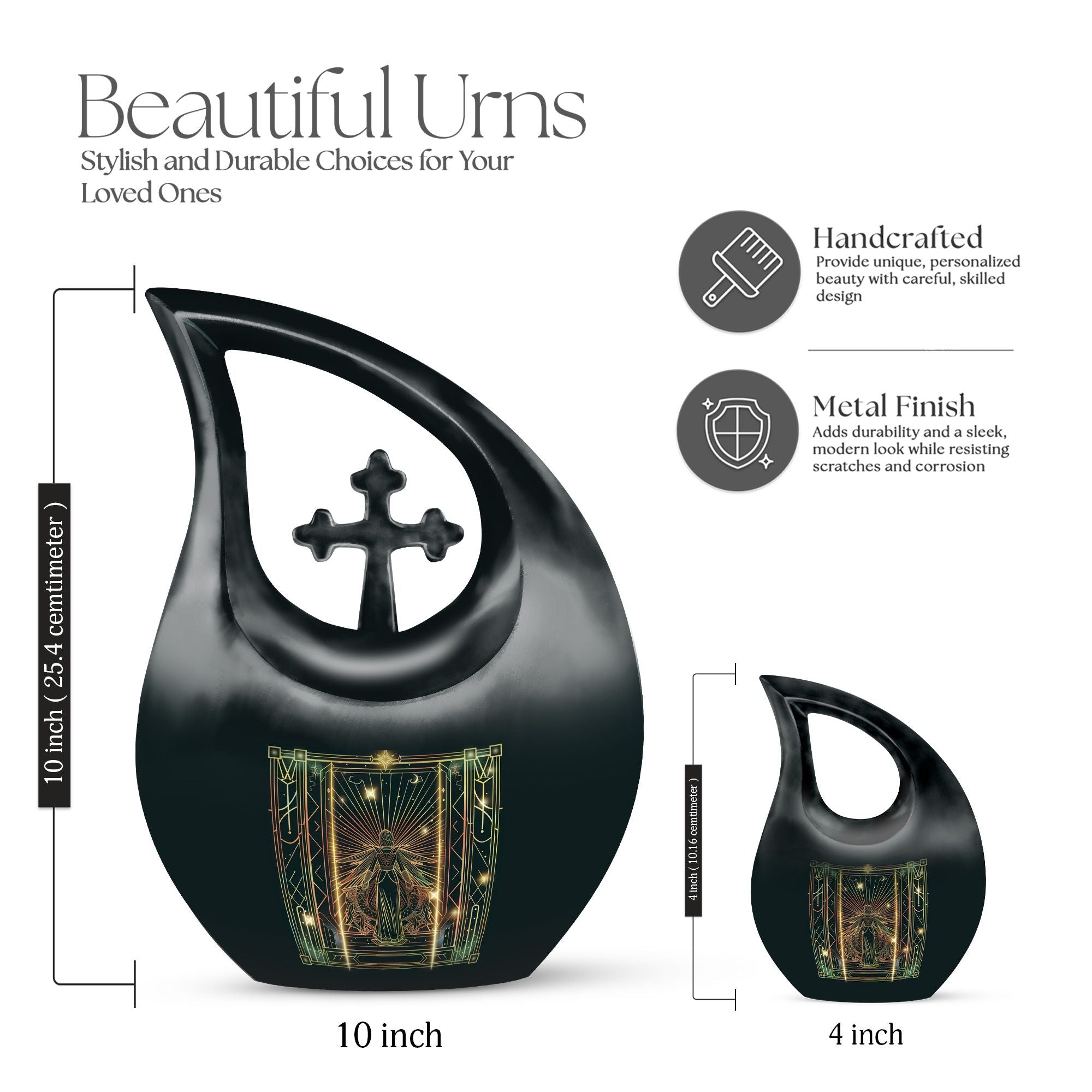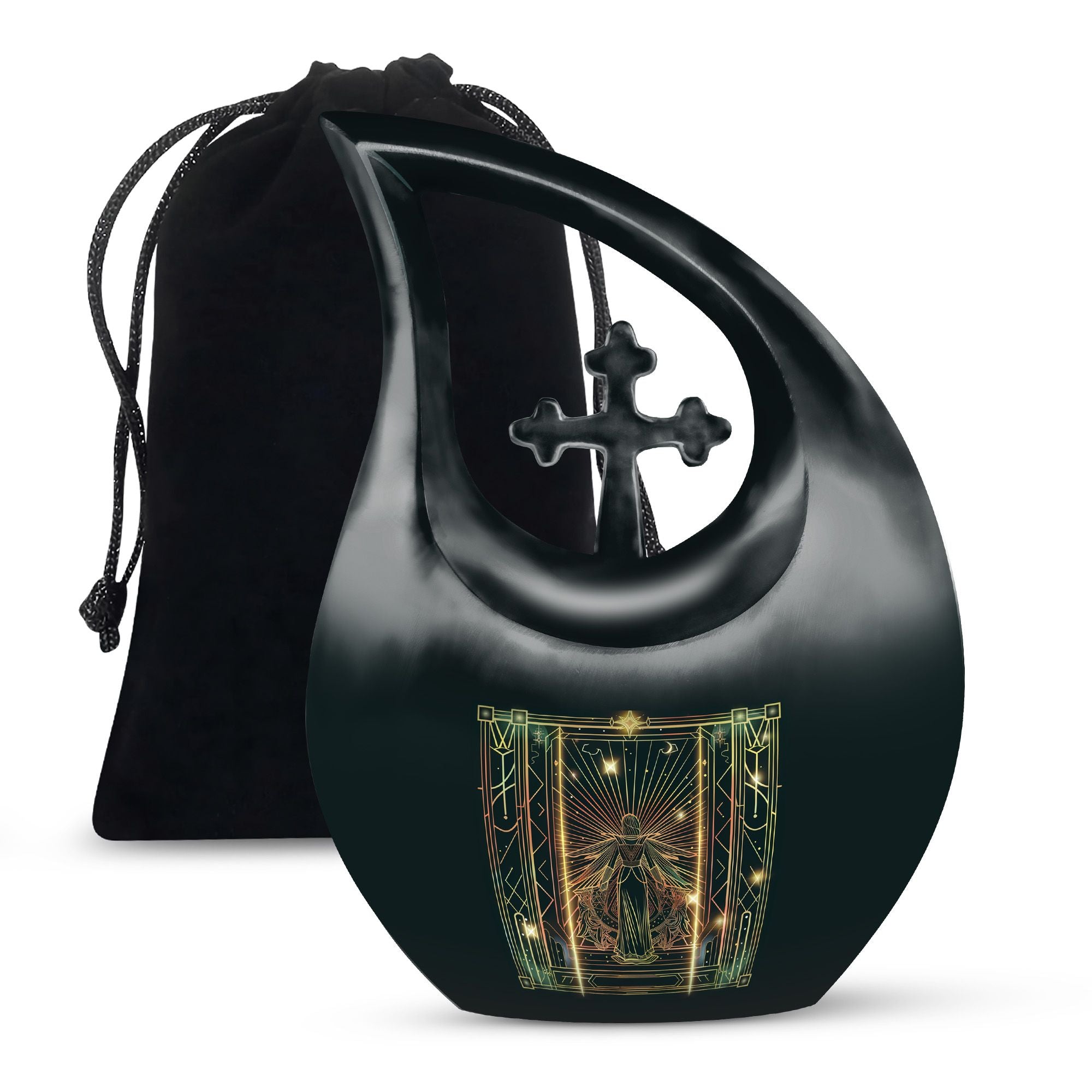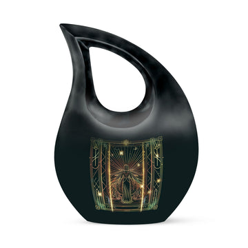 Fulfill your celestial wish of an honorable farewell with our Zodiac Cross Drop Memorial Urn. This elegant 10-Inch Large Urn is made of sturdy Aluminium, capable of weighing up to 3.3 pounds. The urn is designed to hold 200 cubic inches in capacity, a testament to a life well-lived. The urn comes complete with a velvet pouch for secure containment of cremation ashes, making it a special ashes keepsake. Make it exclusive with our personalization feature to engrave the names of your cherished ones. Our Urn adds character and tranquility to your memorial ceremony, showcasing an affordable and tasteful option for cremation and burial needs. Often search phrases - Zodiac Urn, Affordable Cremation And Burial Urn, ashes keepsake, and biodegradable urn. Embrace and honor the life of a loved one with our Zodiac-themed Cross Drop Memorial Urn, an epitome of peace, respect, and remembrance.