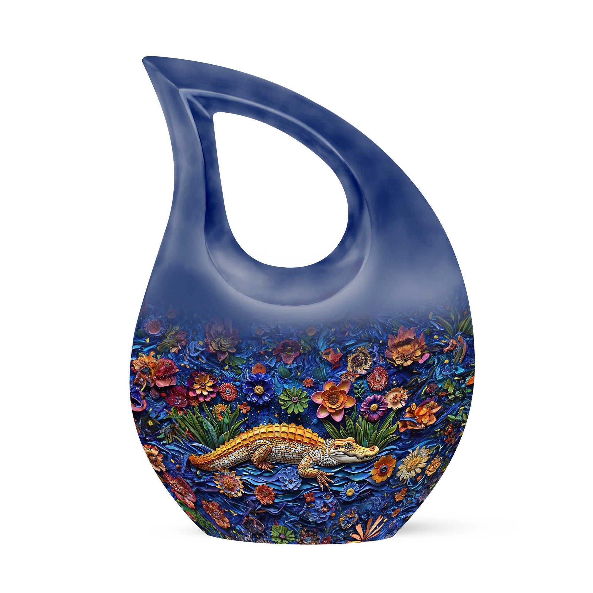 The Alligator Memorial Urn is a striking symbol of resilience and dignity, designed to honor those who lived with courage and confidence. This captivating cremation urn for human ashes offers families a timeless way to celebrate a loved one’s strength, making it ideal for both home display and memorial burial. Its rich blue color and alligator motif represent determination, power, and everlasting love.