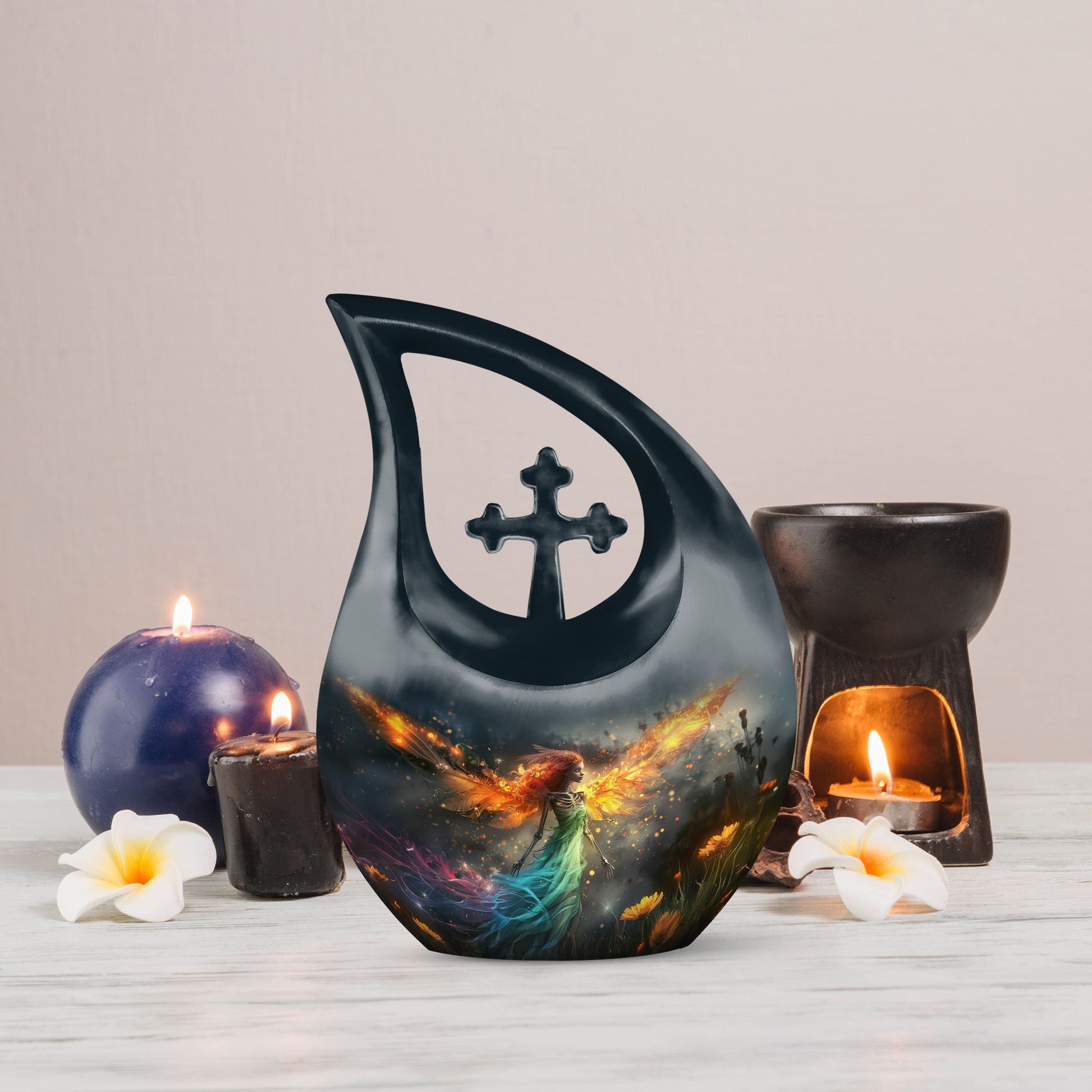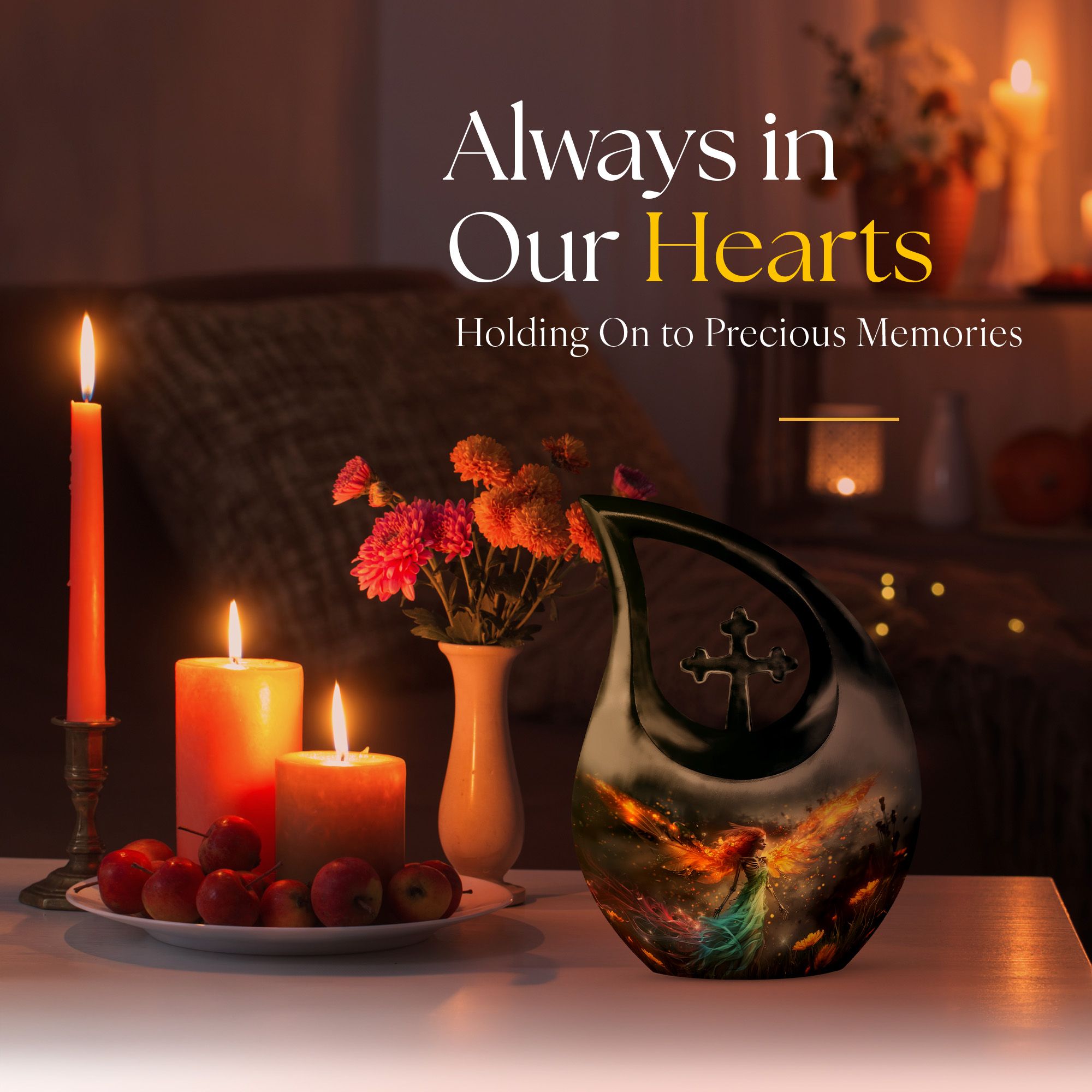 The Fire Angel Cremation Urn for Adult Human Ashes – Forest Funeral Urn offers a powerful, comforting tribute inspired by angelic protection and the calm strength of nature. With glowing ember tones against a forest backdrop, this design represents guidance, renewal, and eternal peace—making it a beautiful choice for families seeking urn keepsakes for human ashes and a unified memorial display.