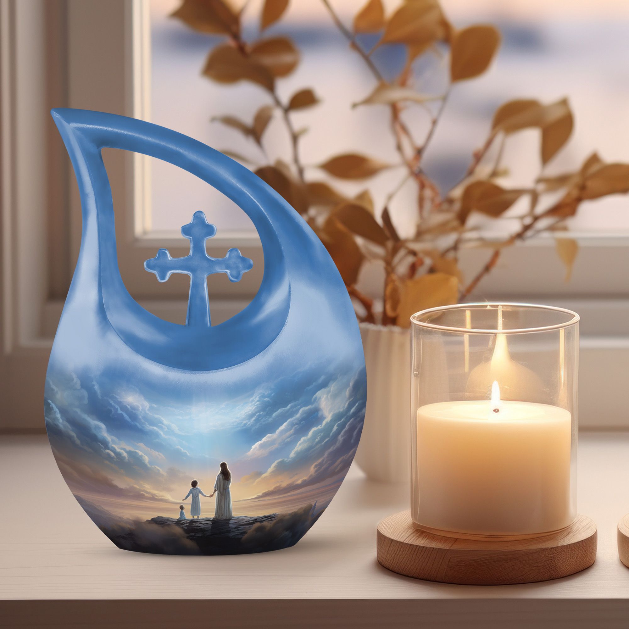 The Angels Memorial Urn for Funeral – Blue Sky Funeral Urn for Loved Ones offers a peaceful and uplifting tribute inspired by gentle clouds and heavenly guidance. Its comforting design brings serenity to families seeking a meaningful memorial, especially when paired with mini keepsake urns for human ashes to share precious memories among loved ones.