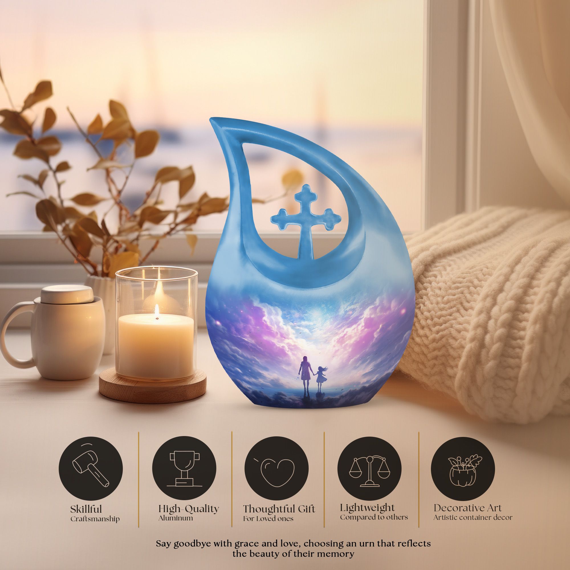 This Walking With Mother Themed Memorial Urn offers a touching tribute to the enduring bond between parent and child. Designed to bring comfort and peace, it serves as a heartfelt resting place for those seeking cremation urns large that reflect love, guidance, and everlasting connection.