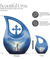 Made from durable aluminium, this 10 inch urn features a peaceful angel motif symbolizing protection, serenity, and eternal love. Its secure screw-top lid ensures safe storage, making it a meaningful choice for those needing urns for ashes adult female, an elegant urn for adult male alternative, or a dignified urn for human ashes adult male for families seeking unisex styling. The generous capacity suits home display, funeral services, or burial.