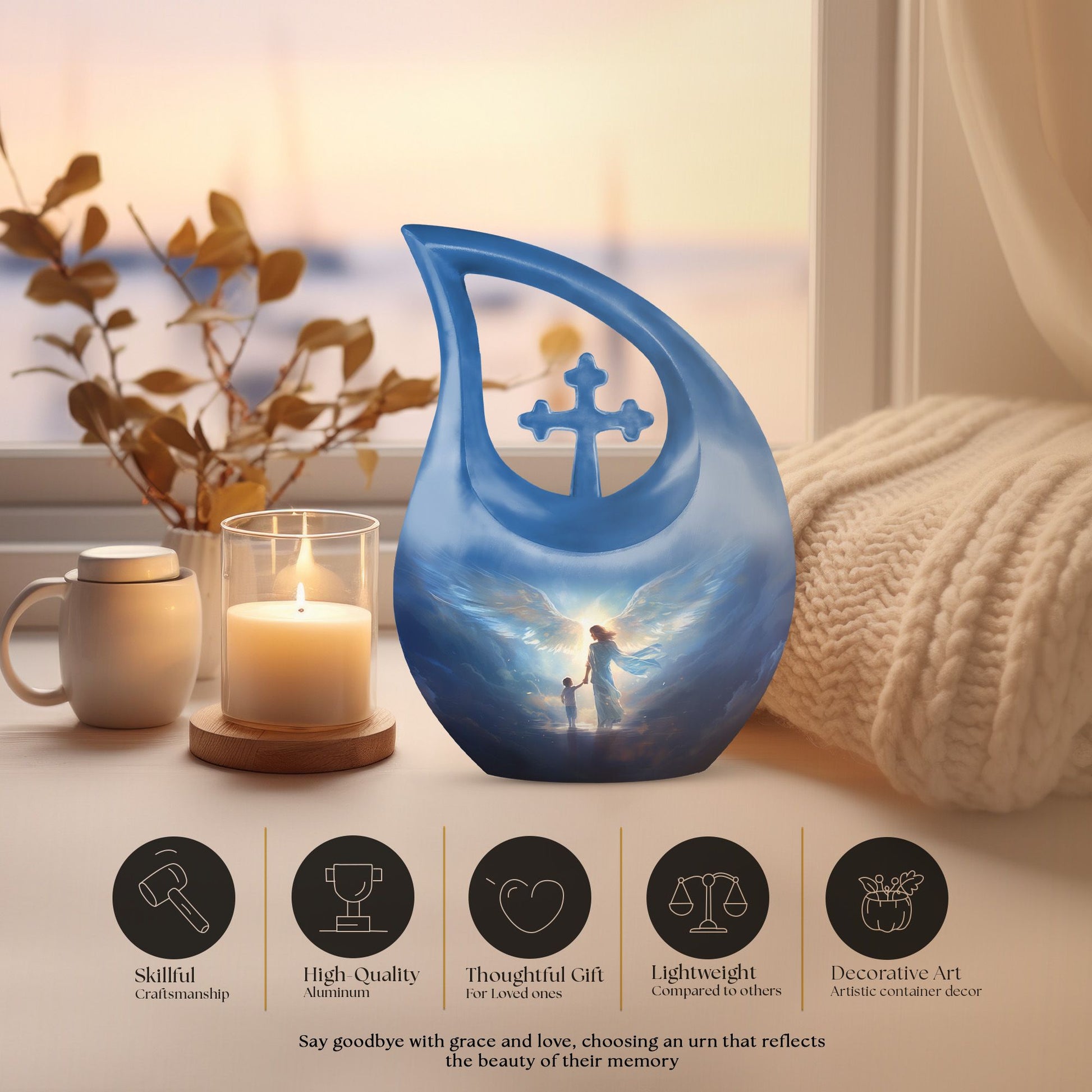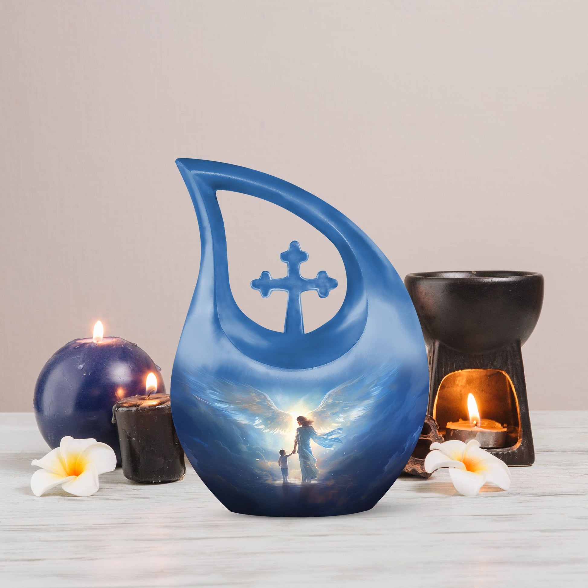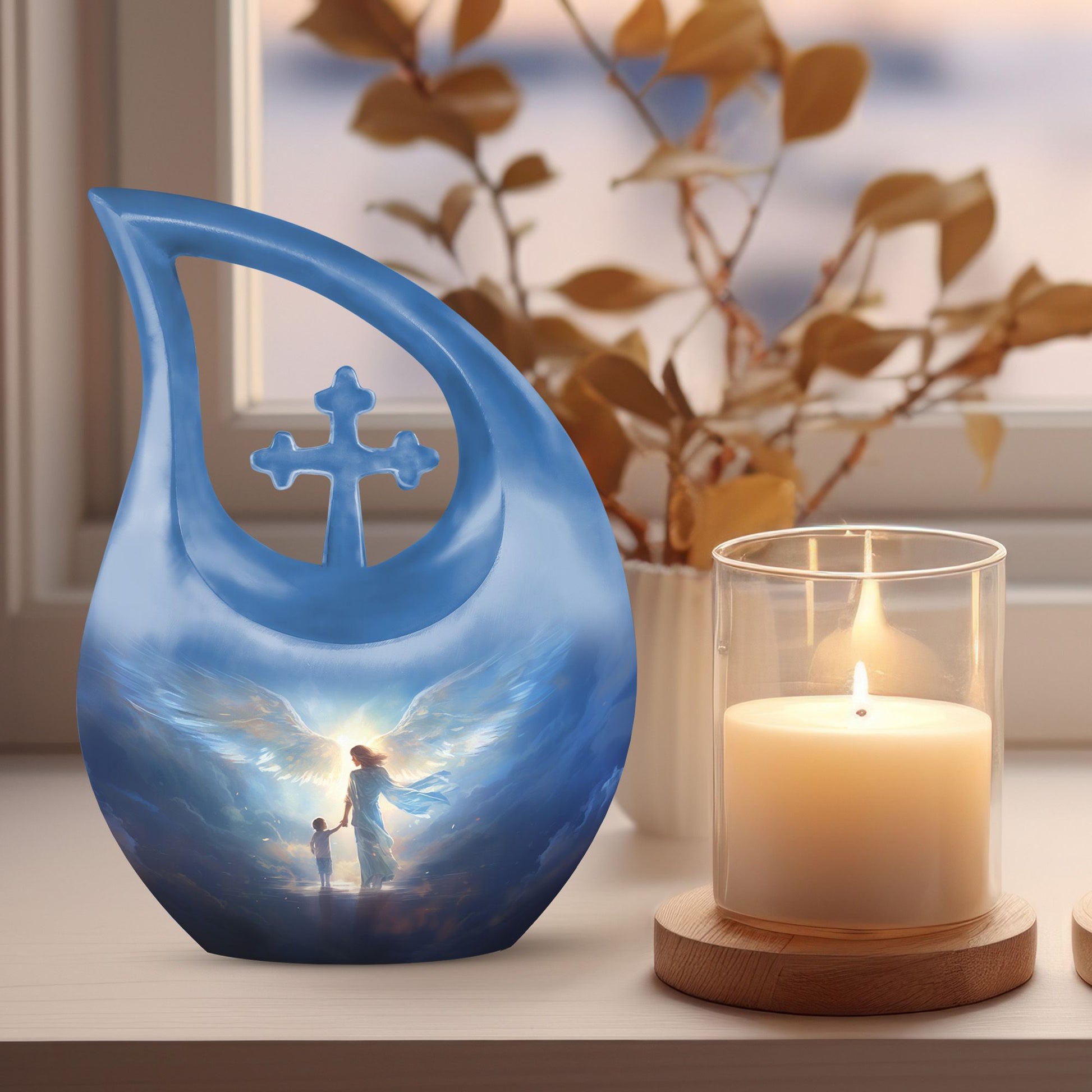 This angelic memorial urn stands as a beautiful symbol of protection, love, and everlasting connection.