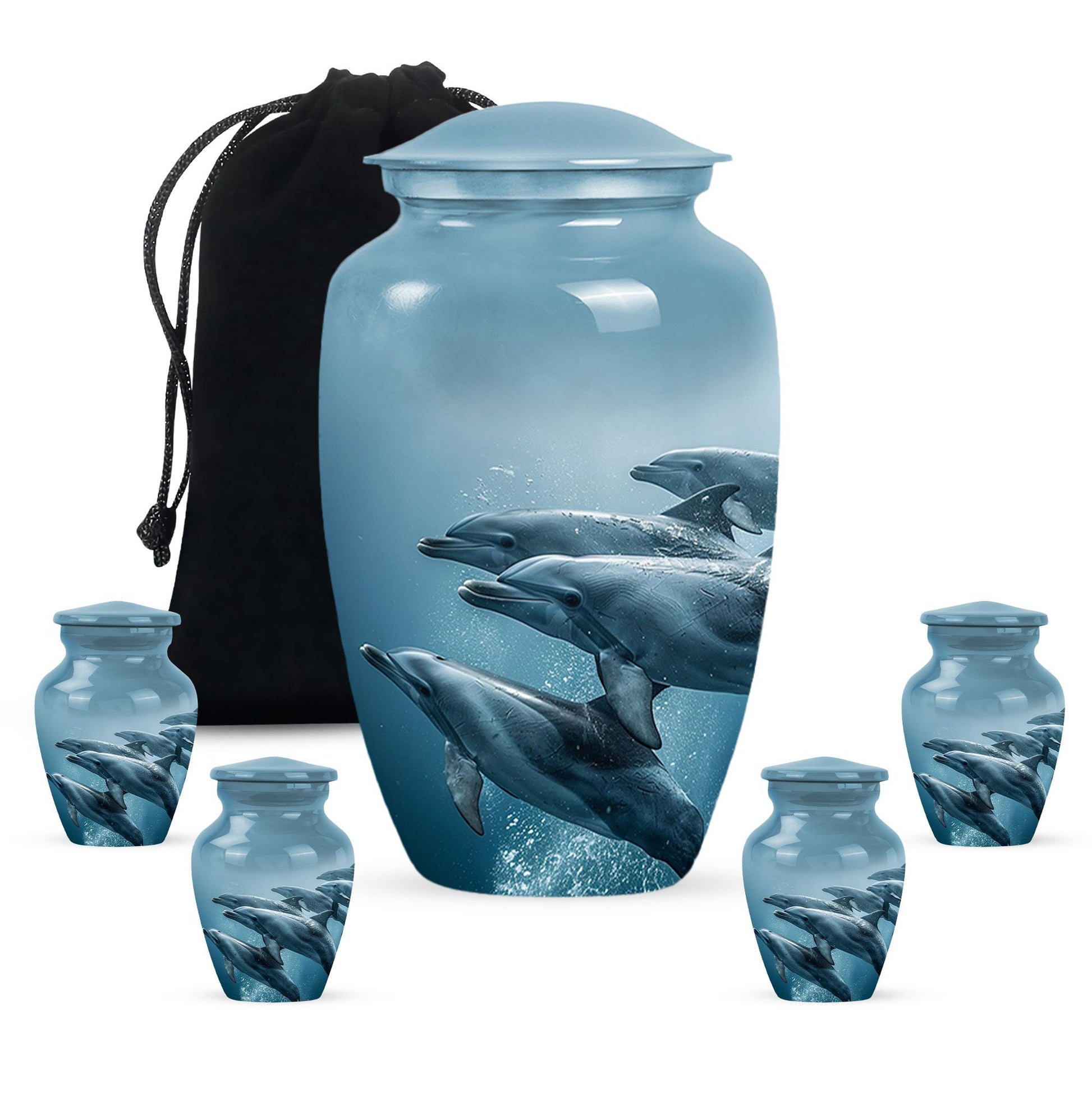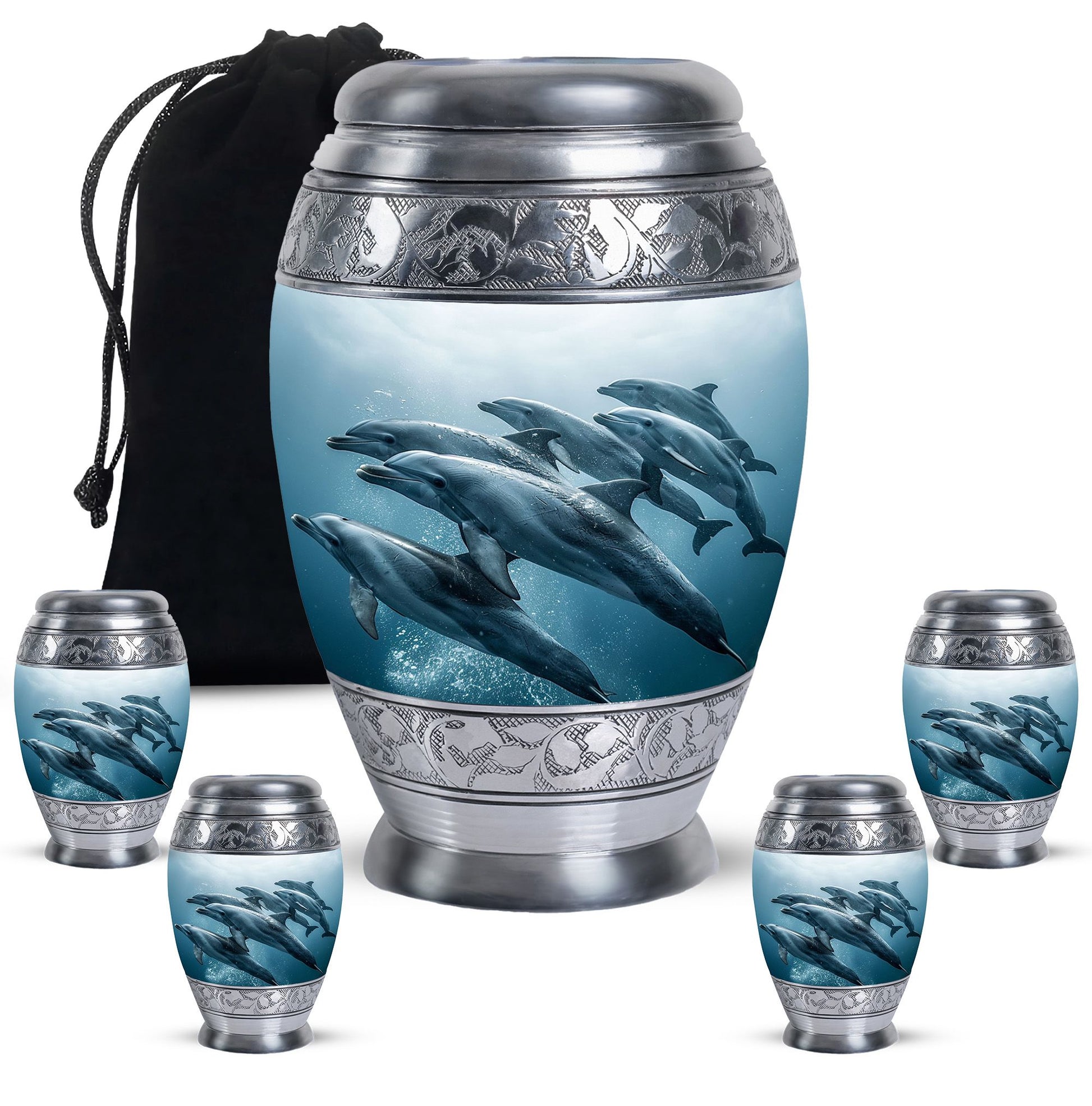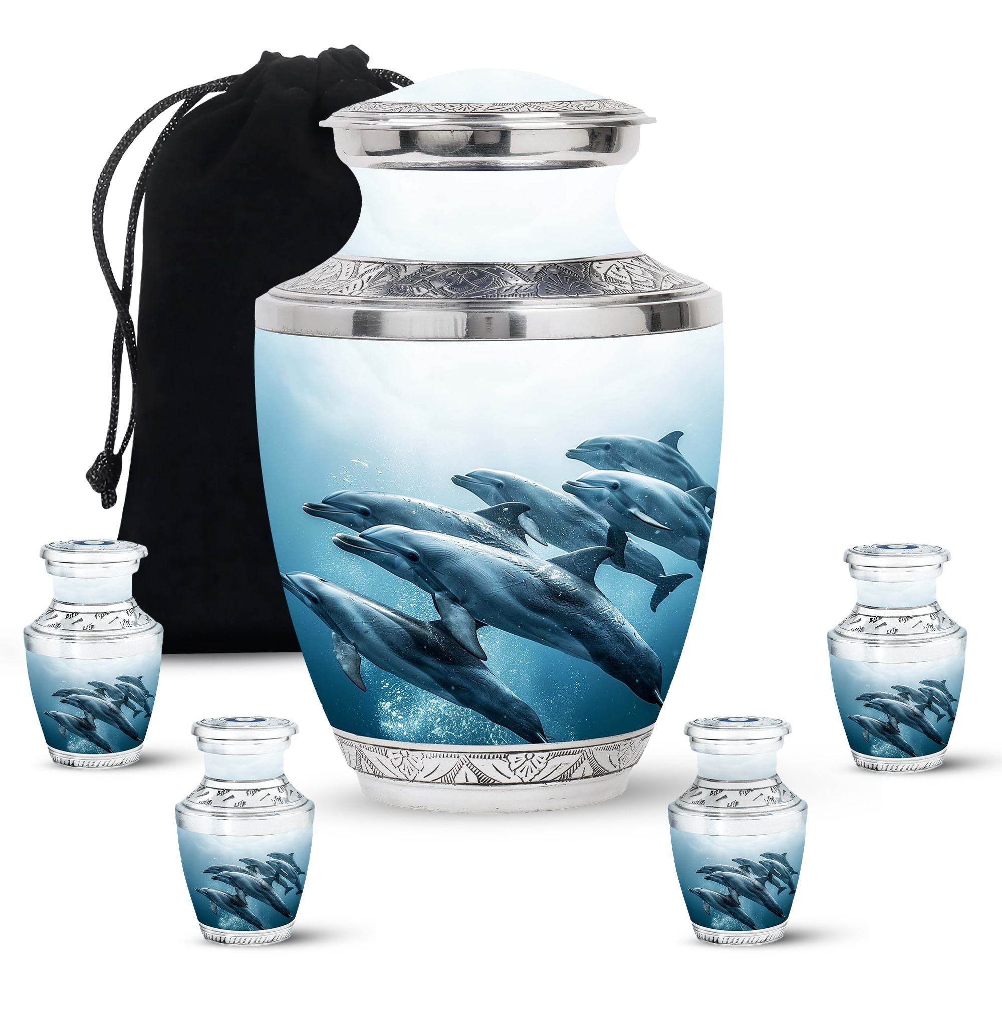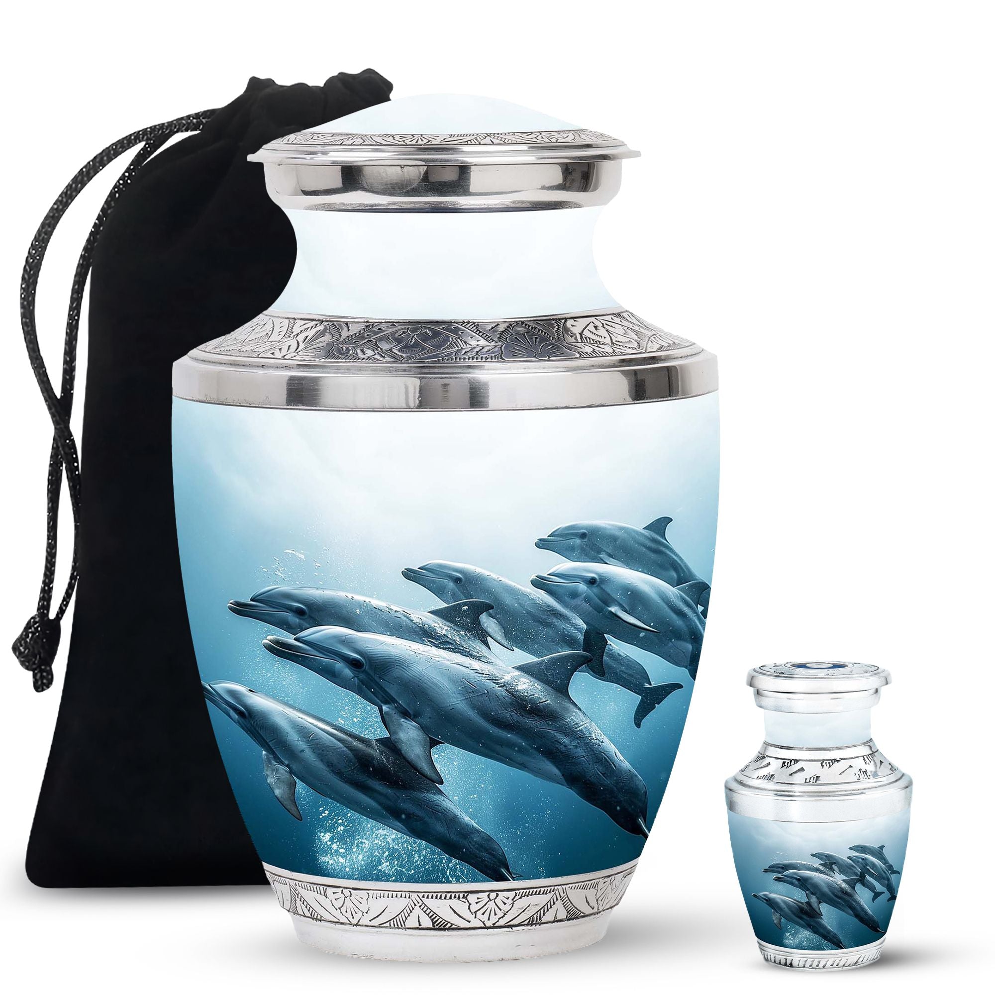 This versatile design provides a heartfelt choice as urn adult female ashes or cremation urns adult males, symbolizing both strength and serenity. Whether displayed at home or used as burial urns adult female, the Aquatic Dolphins Family Urn offers a timeless tribute filled with love and remembrance.