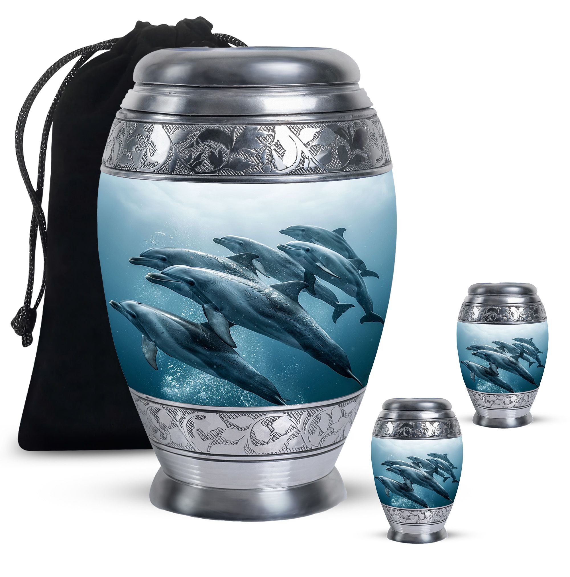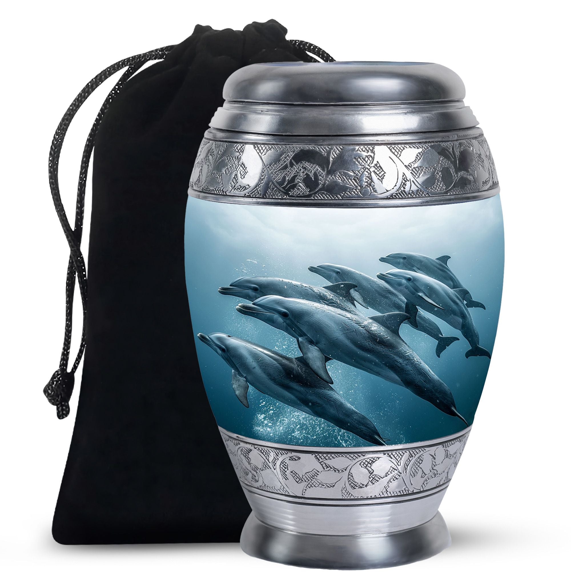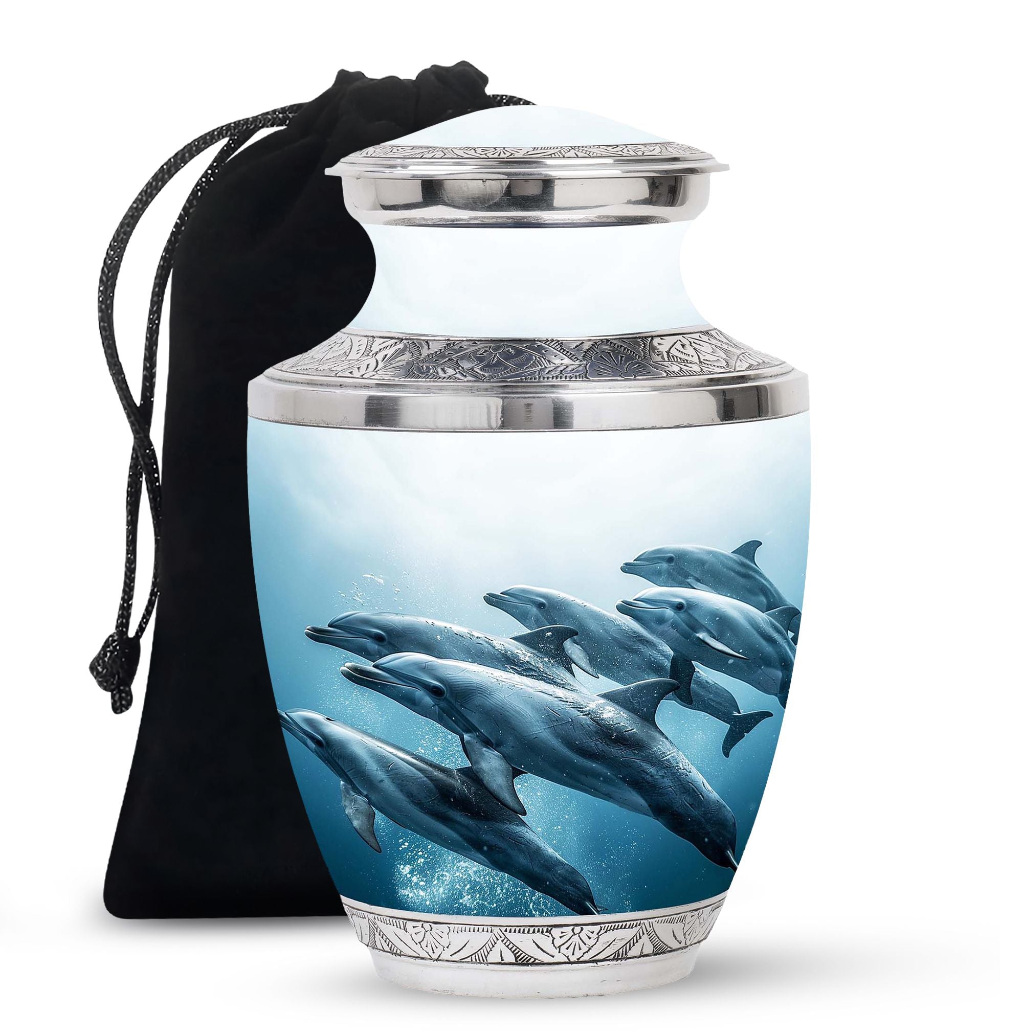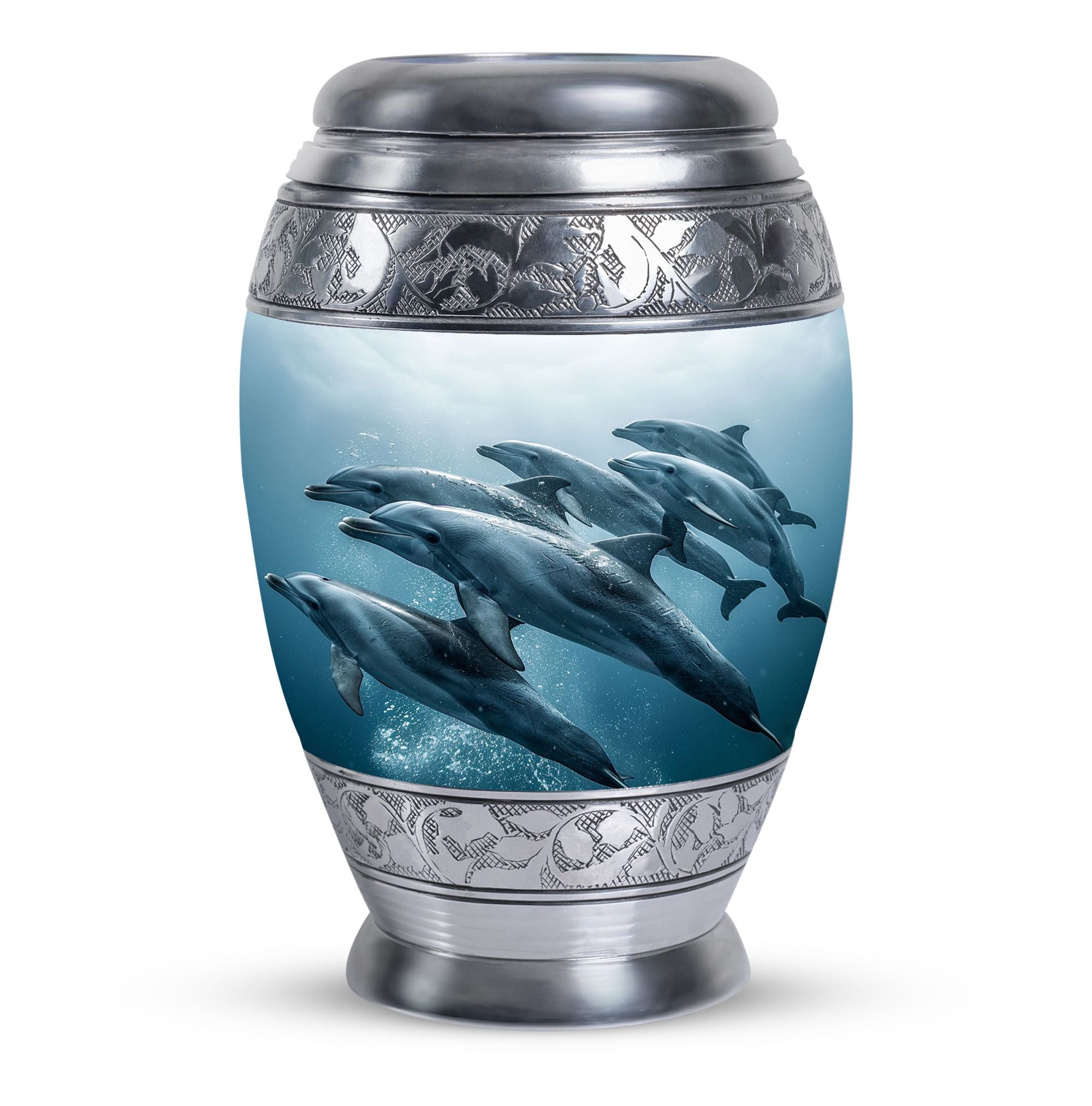 The Aquatic Dolphins Family – Dolphin Cremation Urn For Men And Women is a graceful memorial piece symbolizing unity, love, and eternal peace. Featuring a serene ocean wave backdrop with dolphins, this urn provides a meaningful resting place for loved ones, whether chosen as cremation urns for human ashes adult male or as a dignified urn female adult.