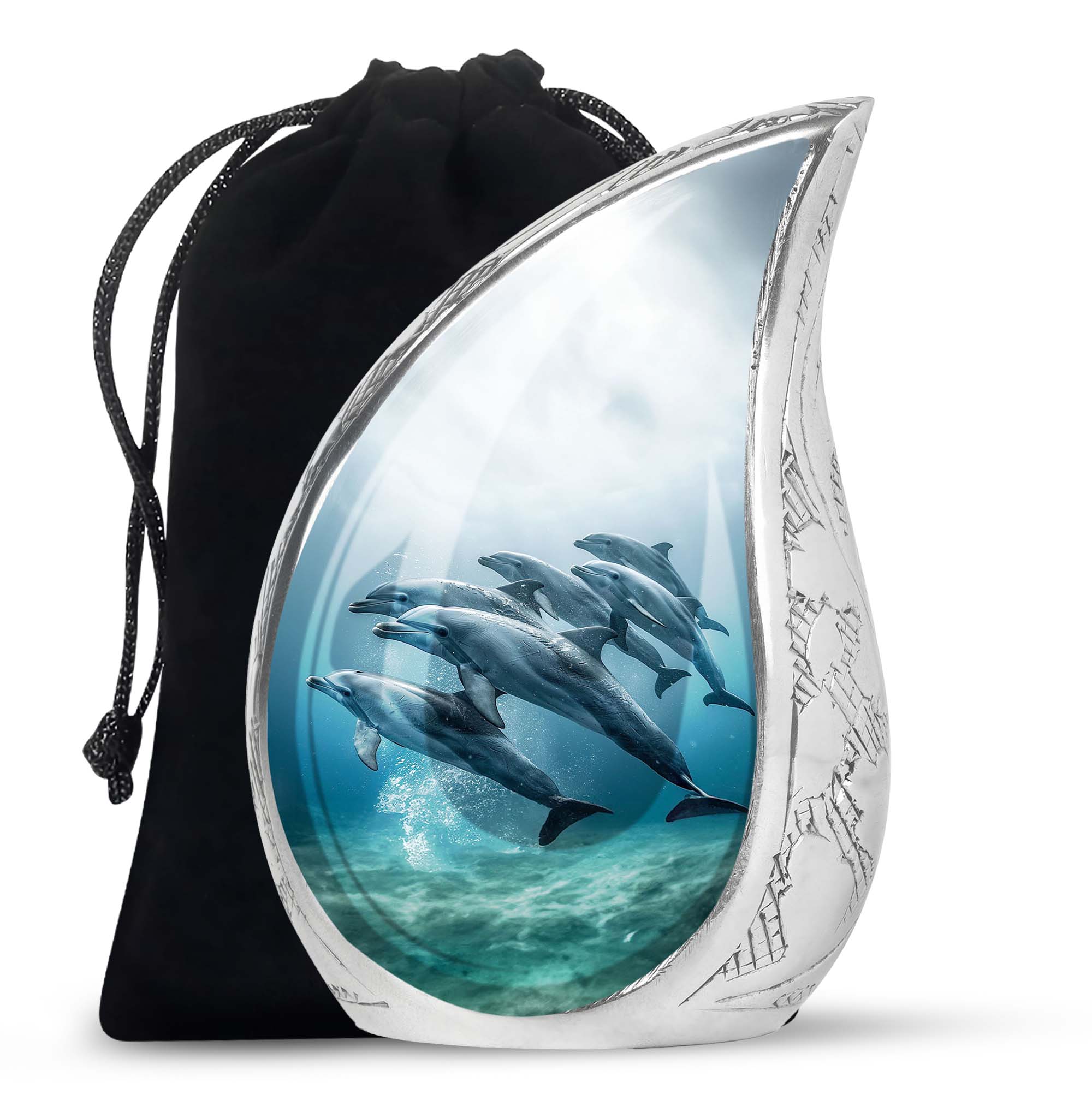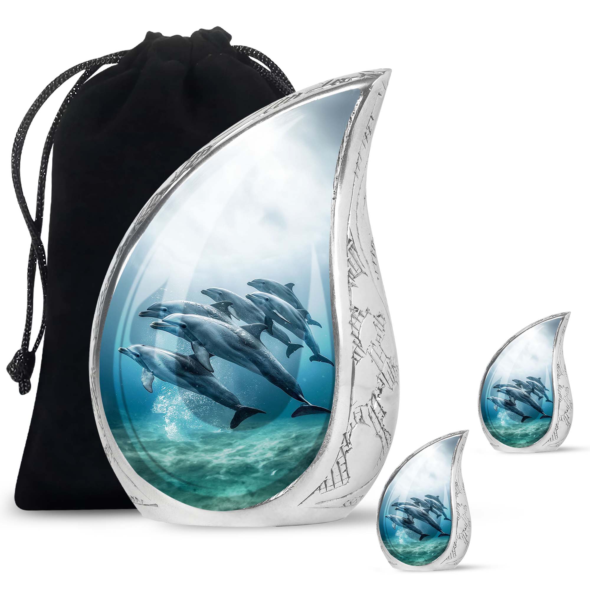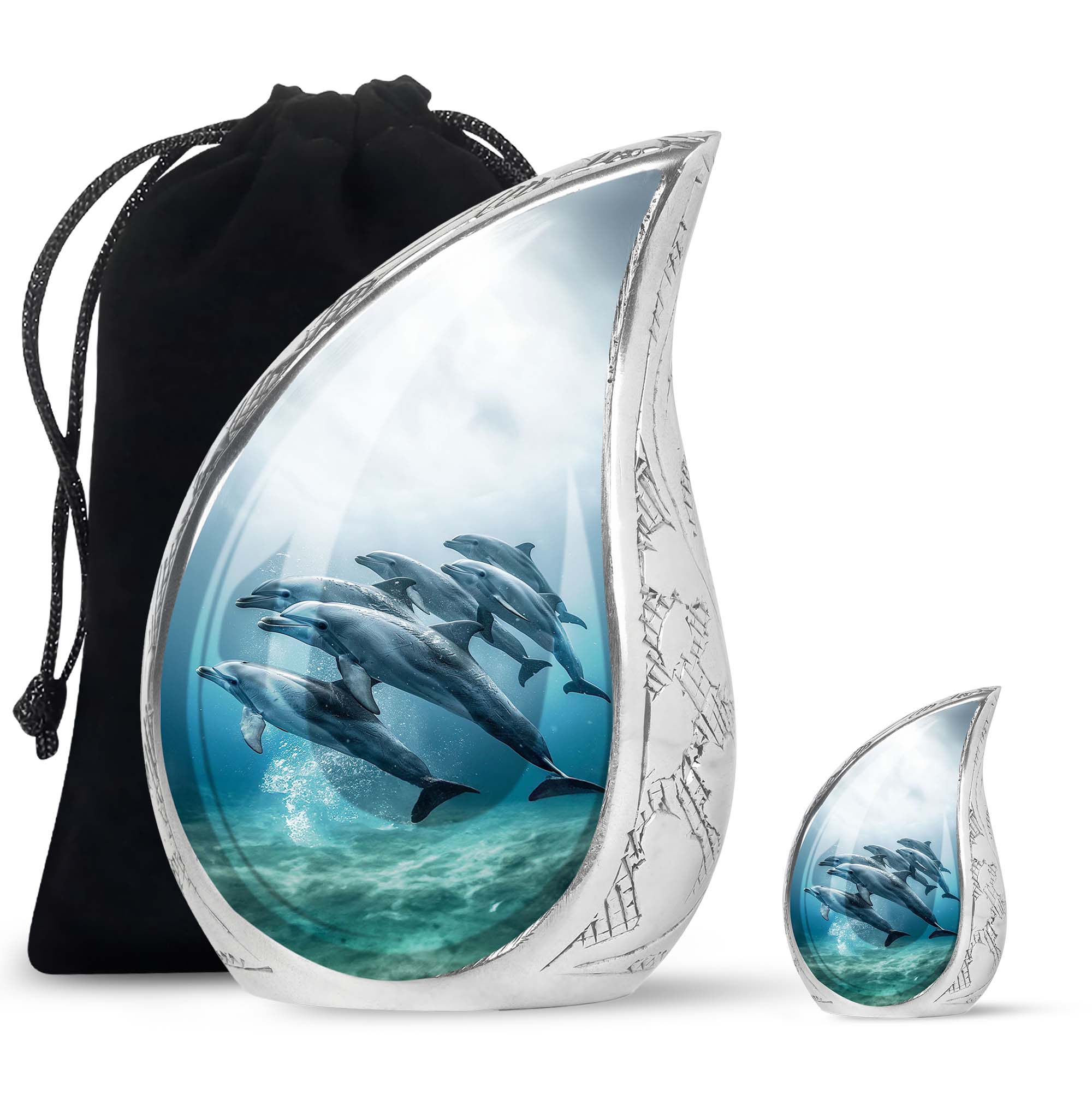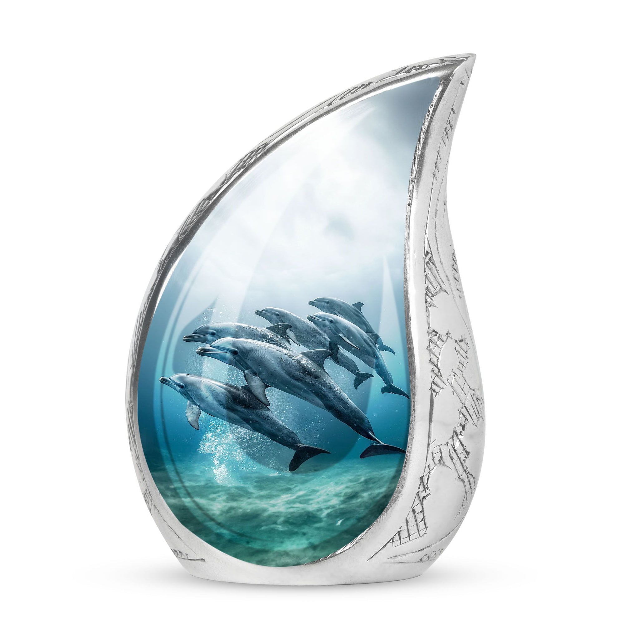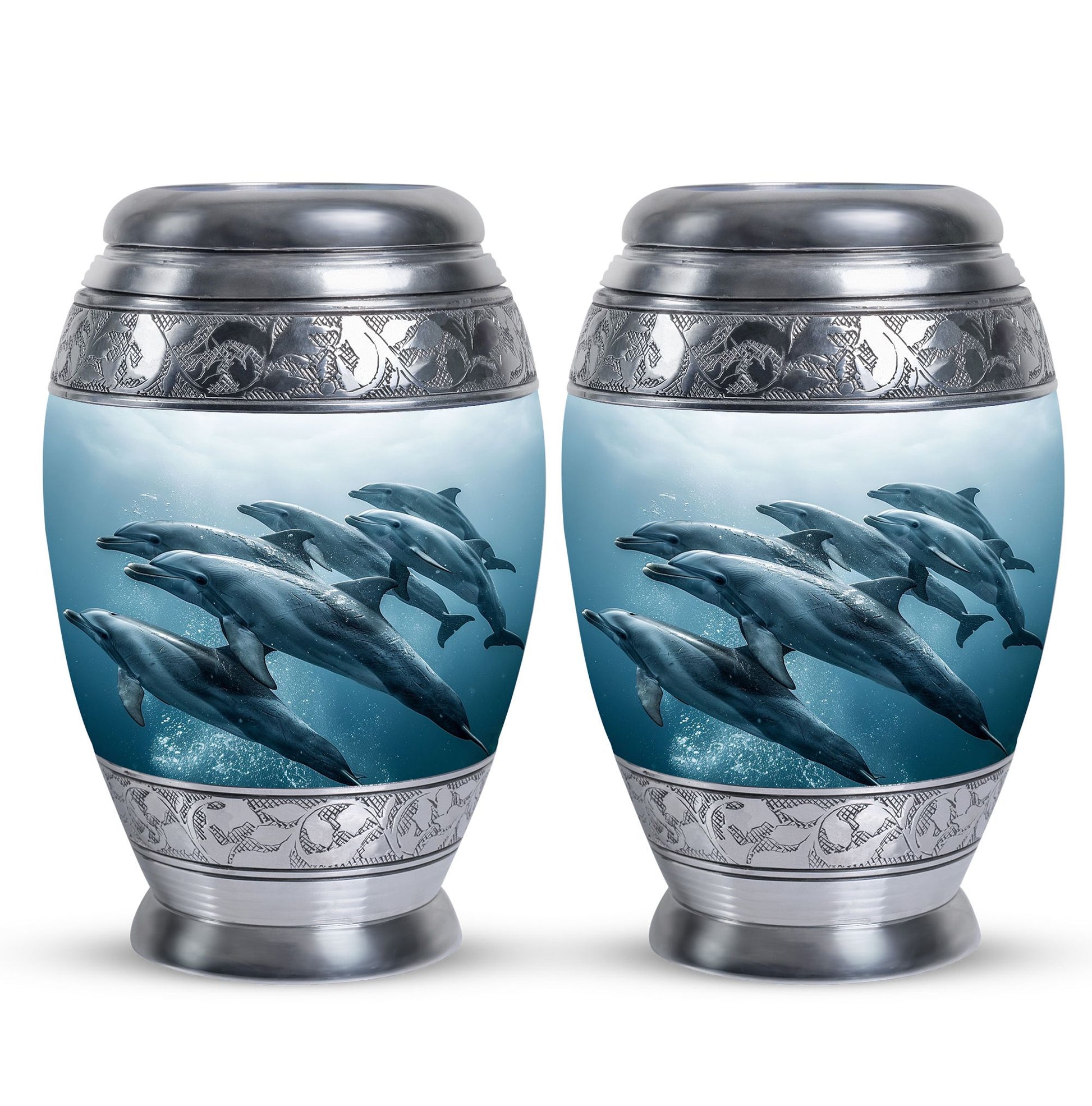 The Aquatic Dolphins Family – Dolphin Cremation Urn For Men And Women is a graceful memorial piece symbolizing unity, love, and eternal peace. Featuring a serene ocean wave backdrop with dolphins, this urn provides a meaningful resting place for loved ones, whether chosen as cremation urns for human ashes adult male or as a dignified urn female adult.