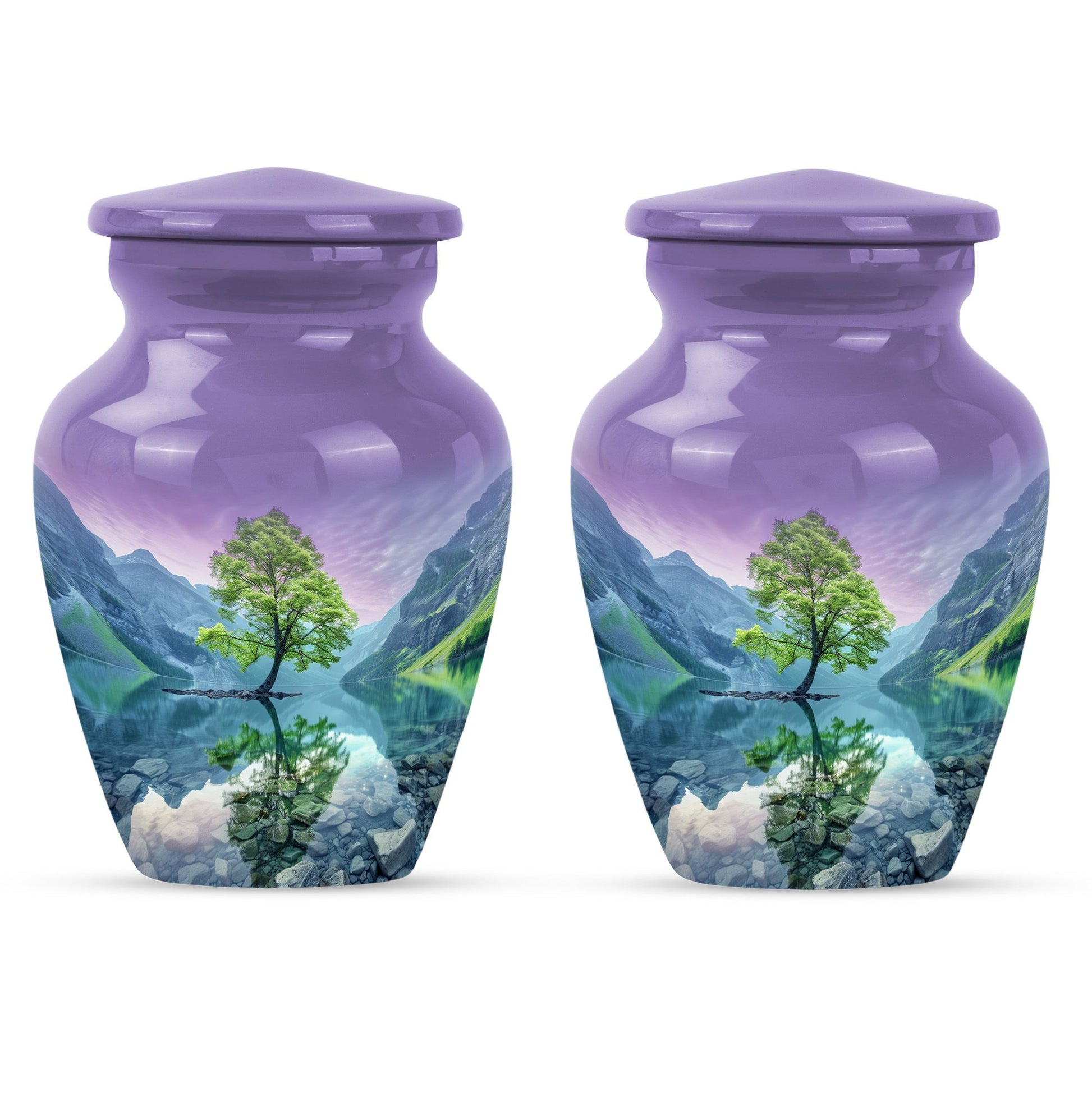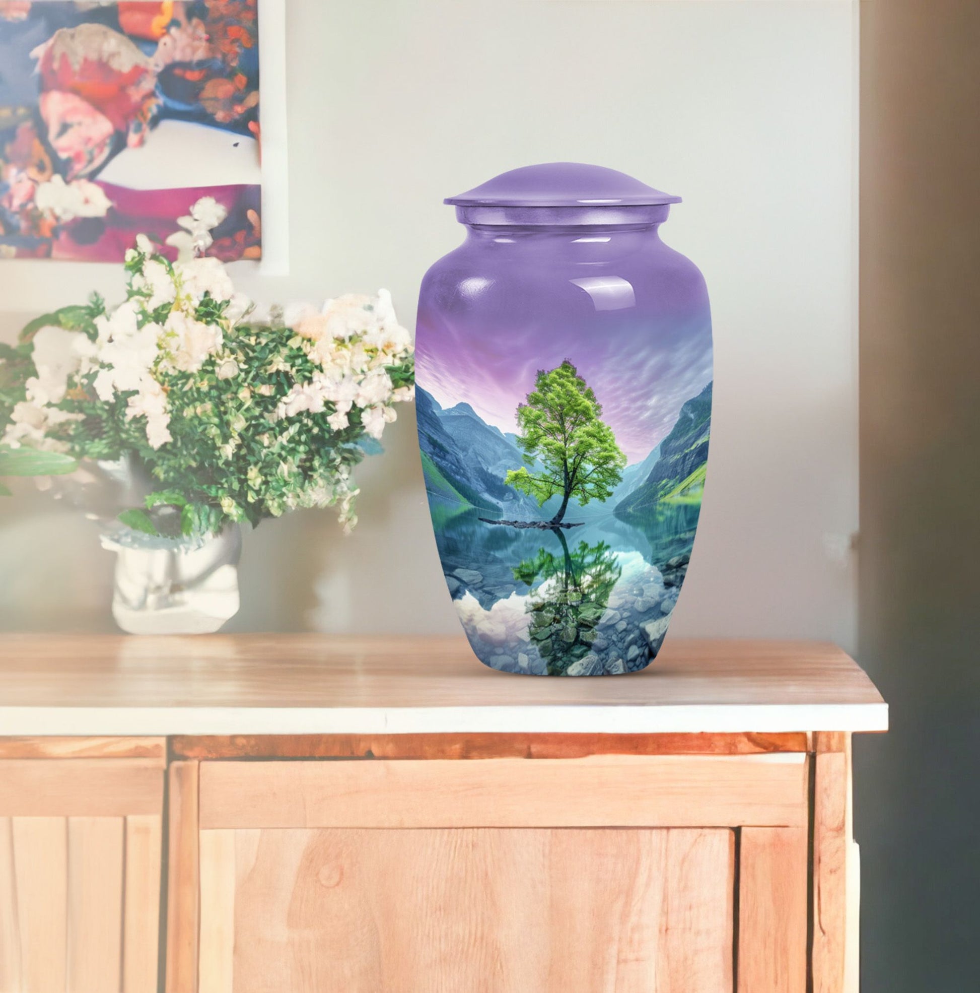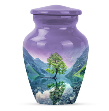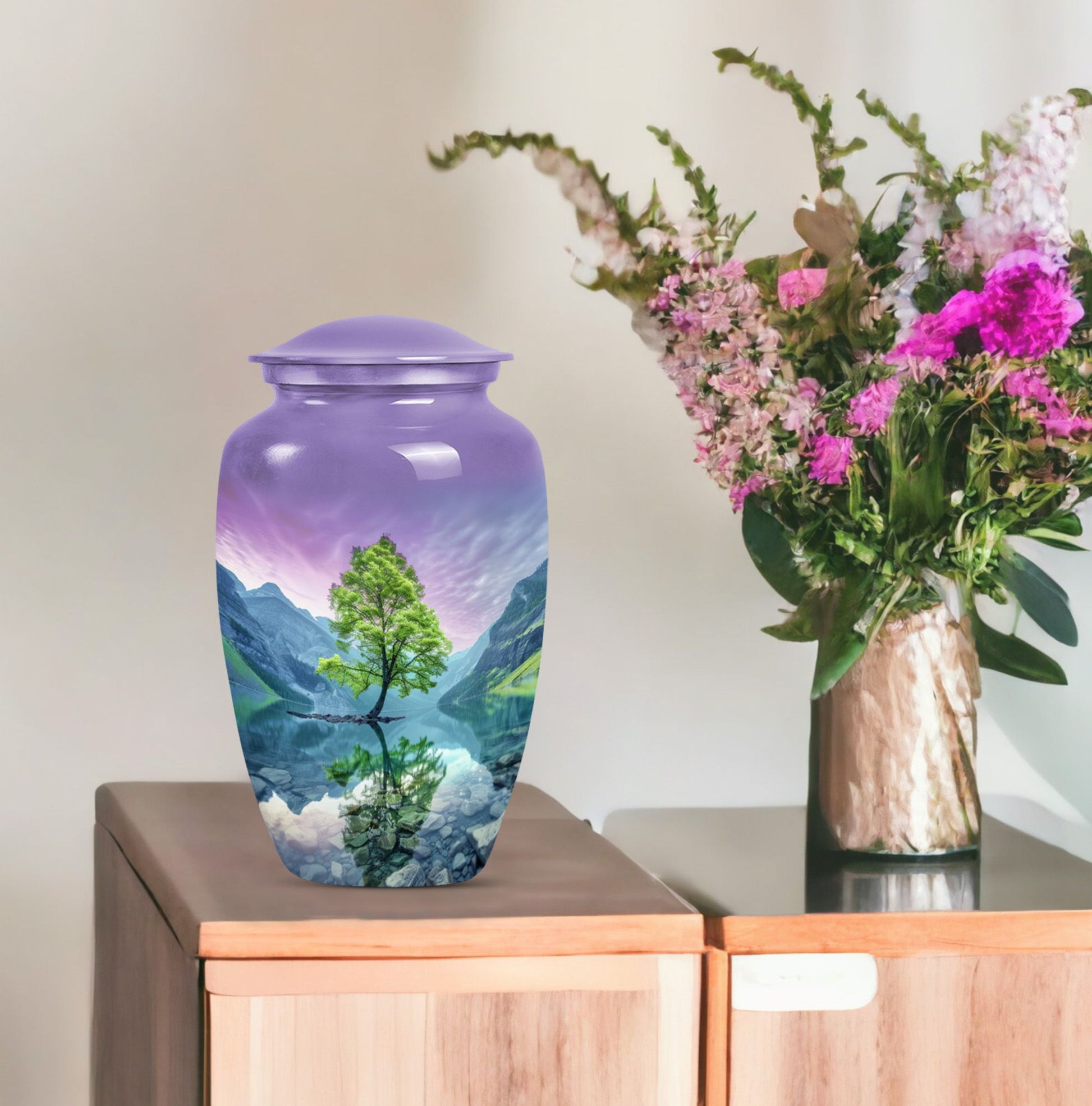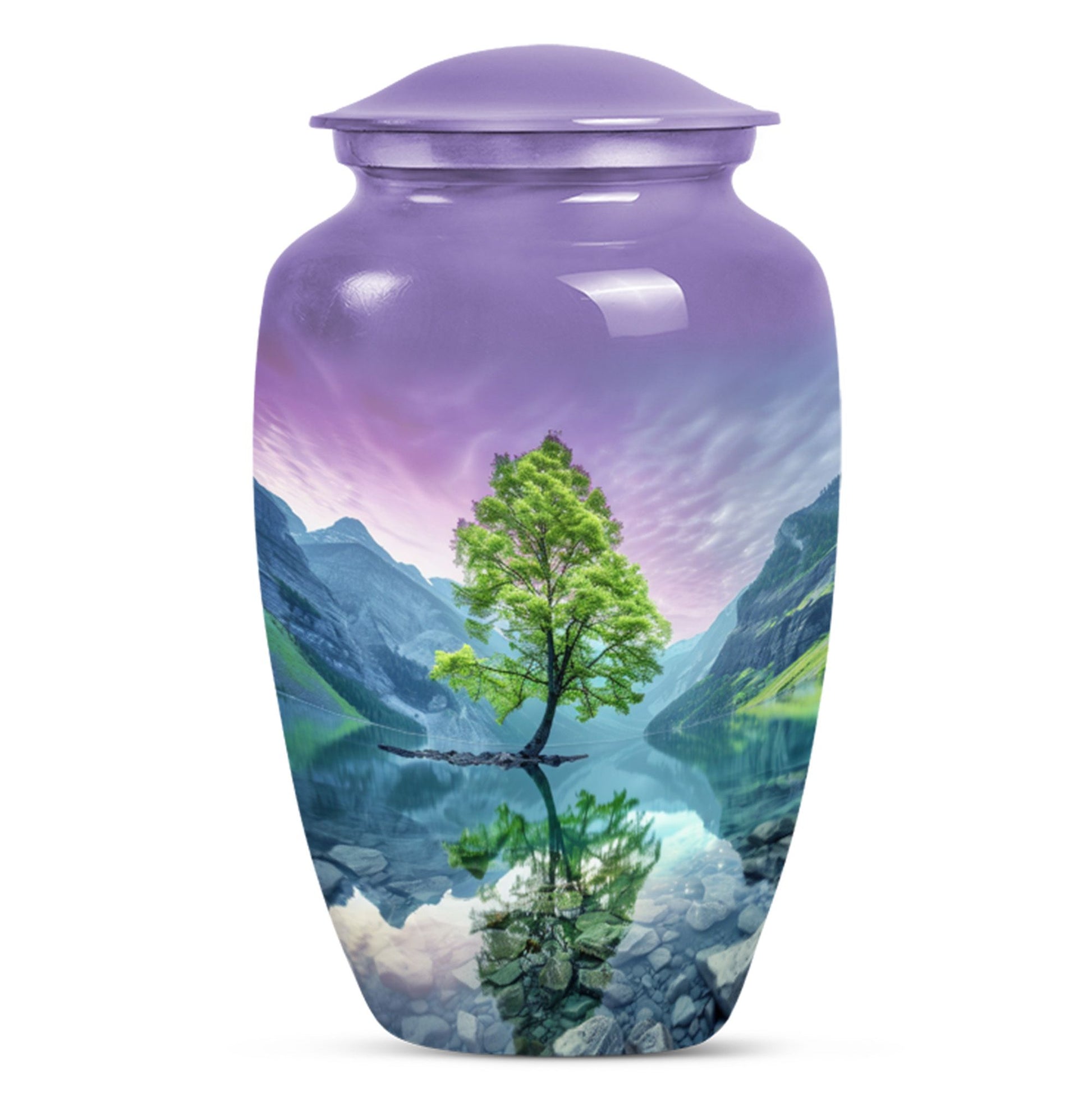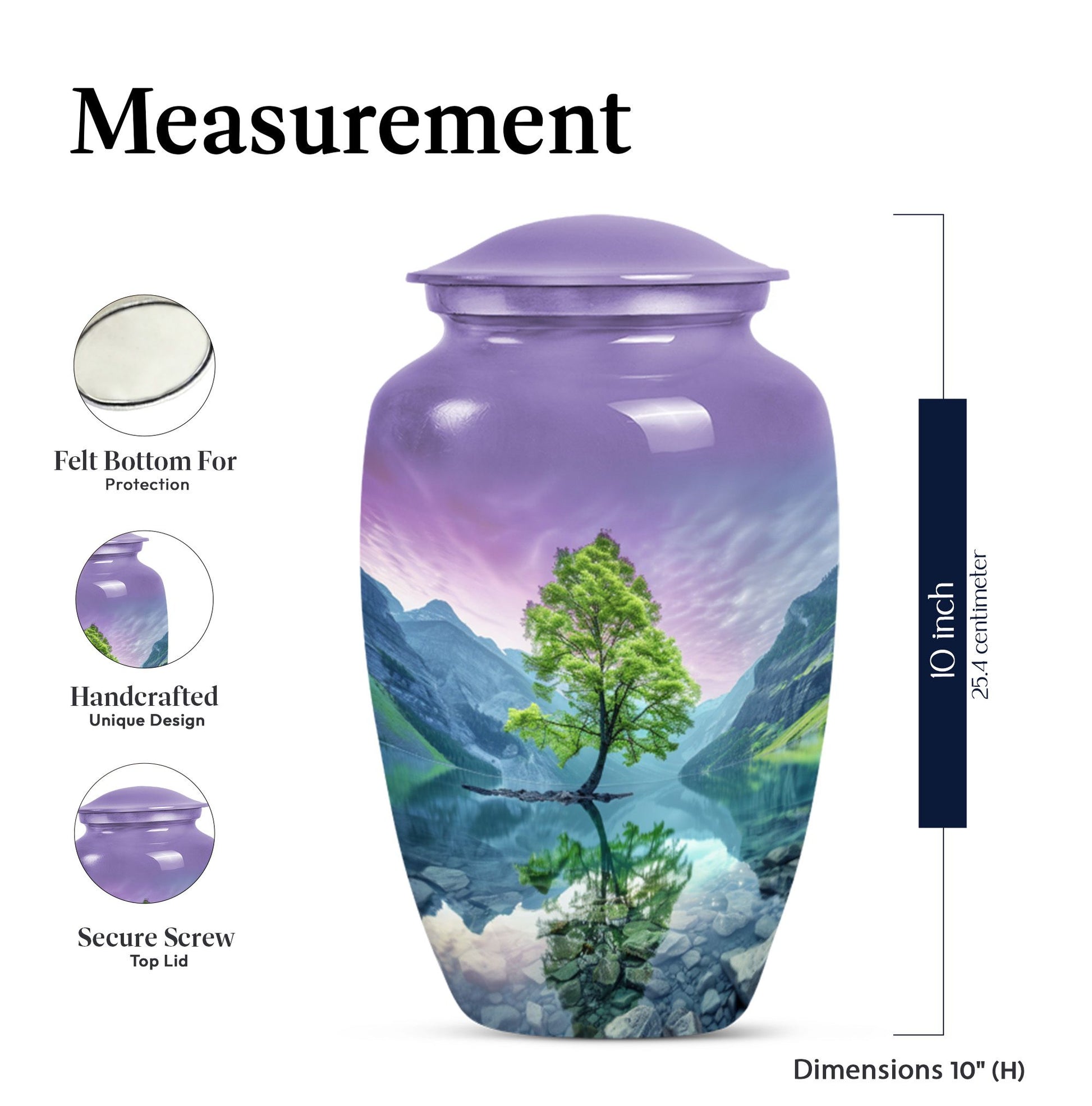 Engage in the utmost reverence towards your departed loved ones with the aurora borealis urn, a timeless piece of solemn beauty for remembrance. This burial urn for cremation ashes is crafted for adults and carries a substantial capacity of 200 cubic inches. Tangible and solemn at 10 inches in height and weighing 3.3 pounds, this urn functions as a large, substantial memorial for your parent. Crafted from high-quality aluminium, its durability ensures it stands as a lasting tribute for your loved ones. Its design theme features an elegant butterfly, reflecting transformation and grace, symbolic of your loved one's journey. This urn even offers customization, providing an option to personalize with engraved names for a unique touch. A velvet pouch accompanies the urn for secure containment of ashes. Ideal for both men and women, this compact urn is an excellent choice for urban homes. An offering from the memorial urns collection, the aurora borealis urn serves as a cherished receptacle for your loved one’s ashes, providing a fitting tribute for their memory.