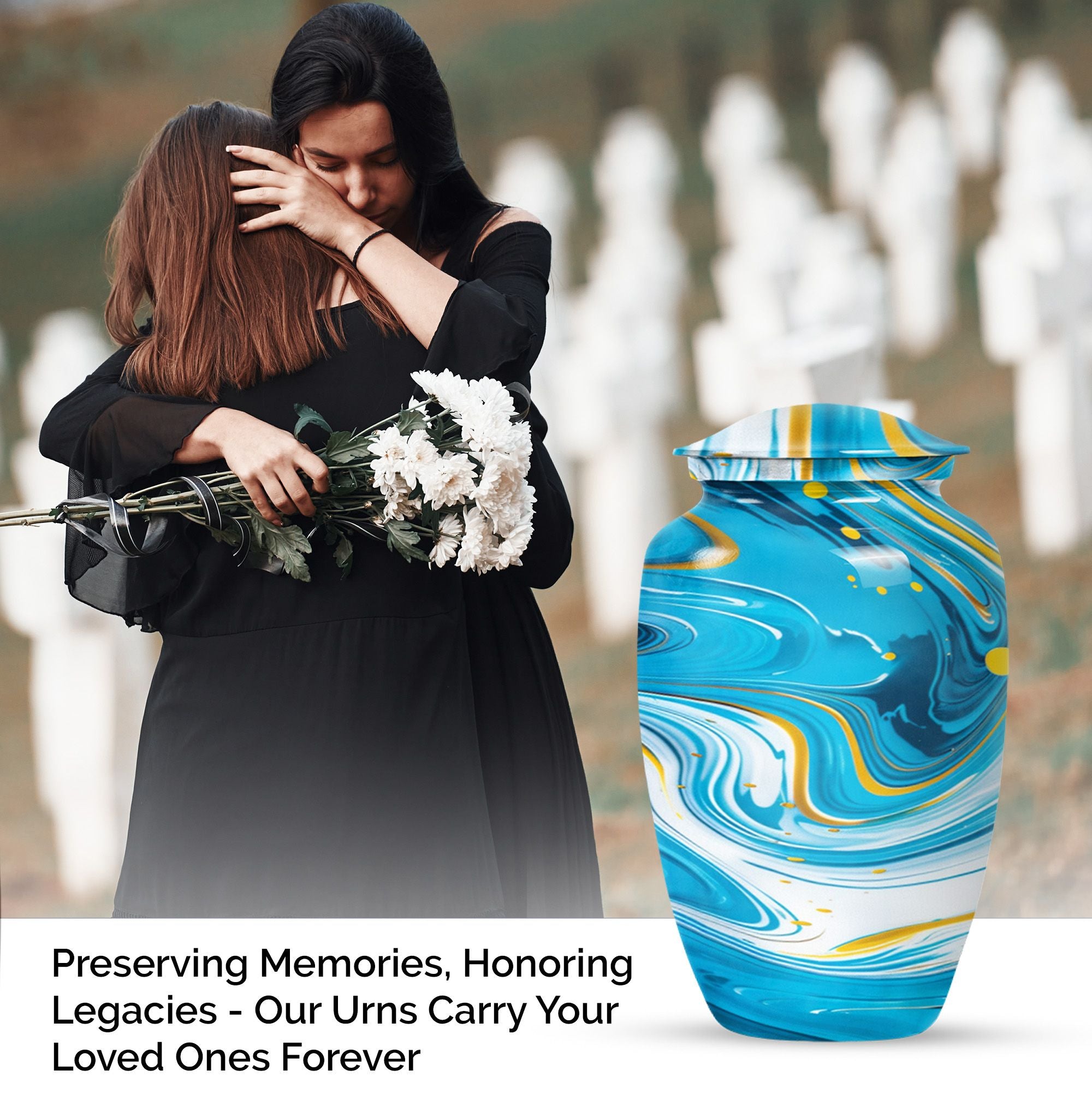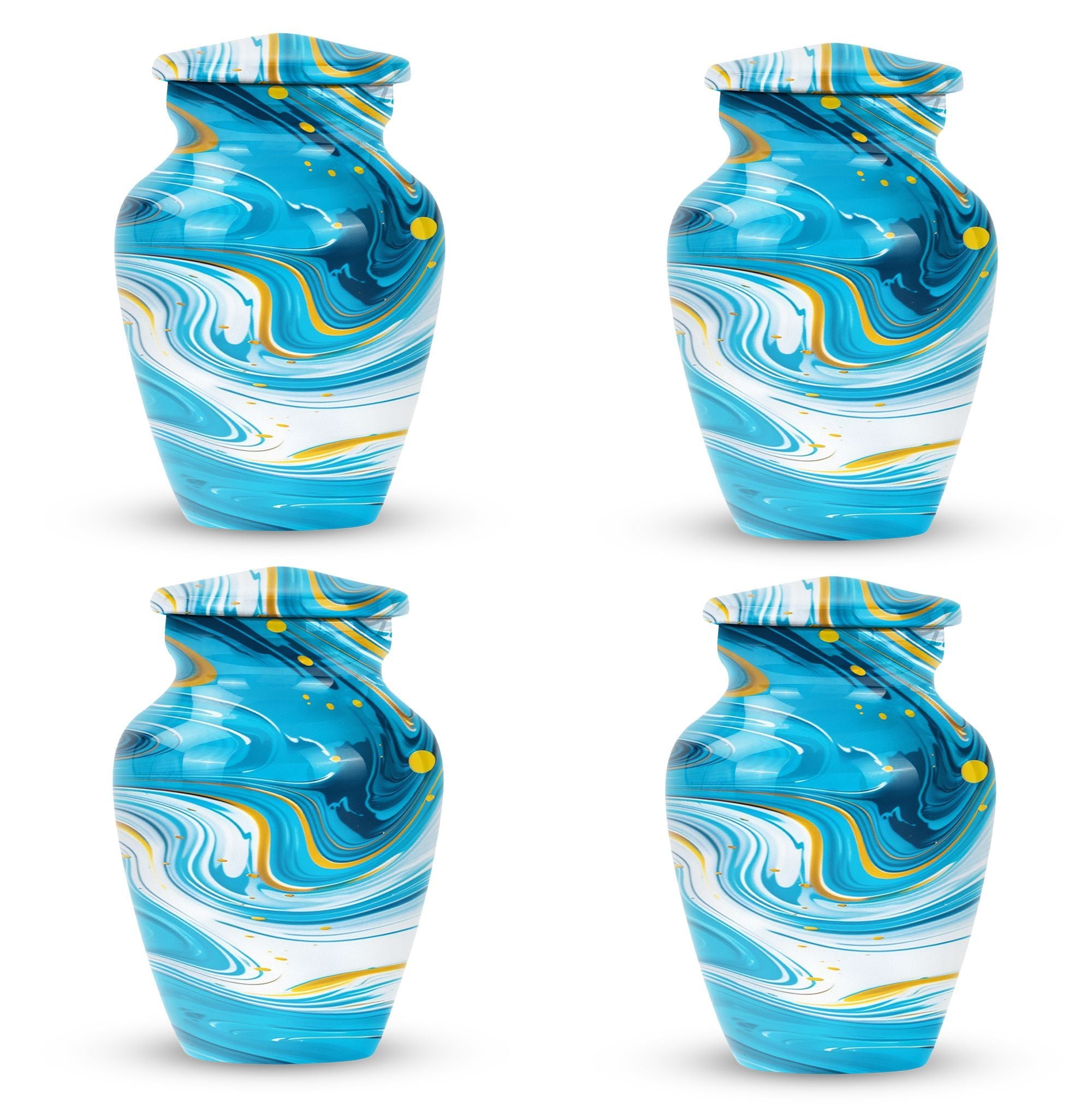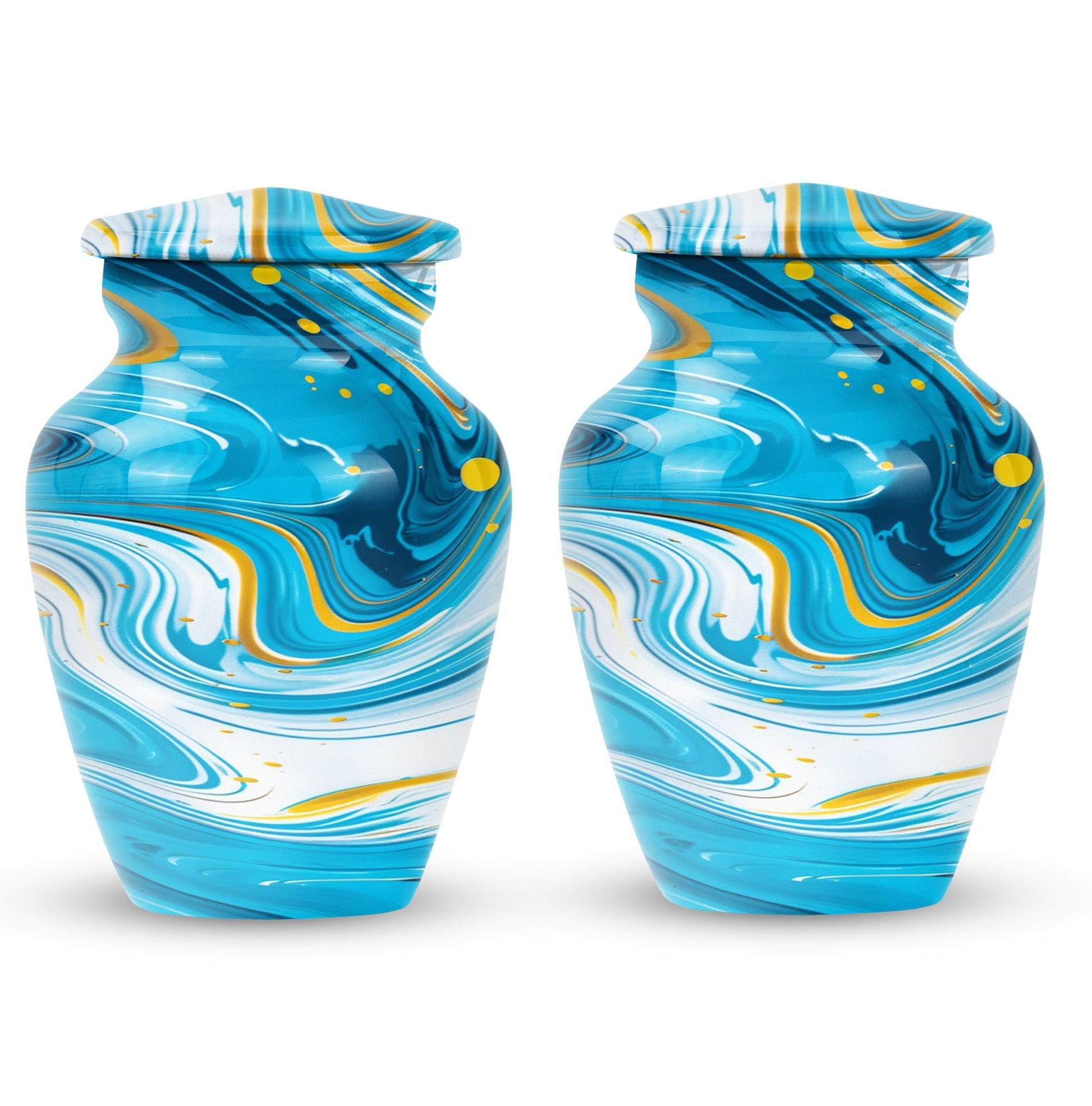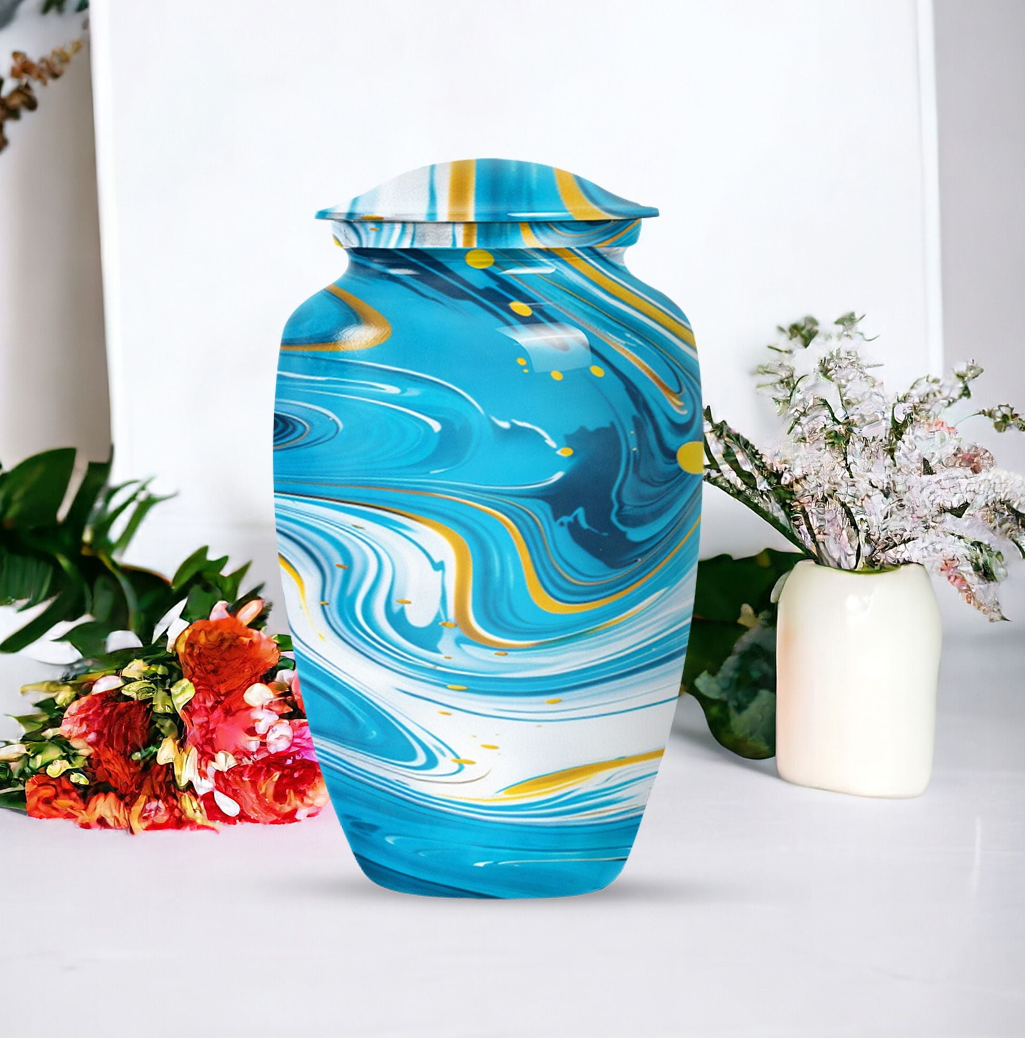 Immerse yourself in the deep spirituality and tranquillity that our 'Classic Urn' offers. As a work of art, it perfectly represents a distinctive and abstract theme. The Artistic Design Urn is handcrafted from top-notch aluminium, perfect for seniors and adults looking for cremation dad urn offerings. It’s a large urn with a size of 10 inches, demonstrating an impressive capacity of 200 cubic inches. With a moderate weight of just 3.3 pounds, this cremation urn is easy to handle. What makes it more unique is the possibility to personalize it with engraved names. Not just an urn, but it's your heartfelt tribute. The package comes with a velvet pouch, providing discreet containment for ashes. Experience the affordable urns that magically combine minimalism, luxury, and deep sentimental values. Please note: avoid limited to Burial urns for adult men ashes or human urns, explore our large urn in iridescent metal collection for a wider range of choices.