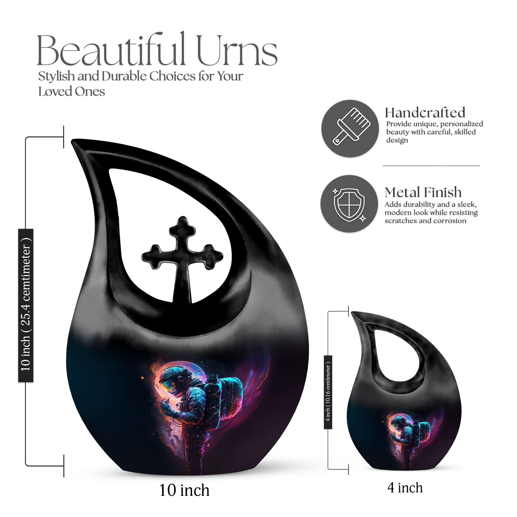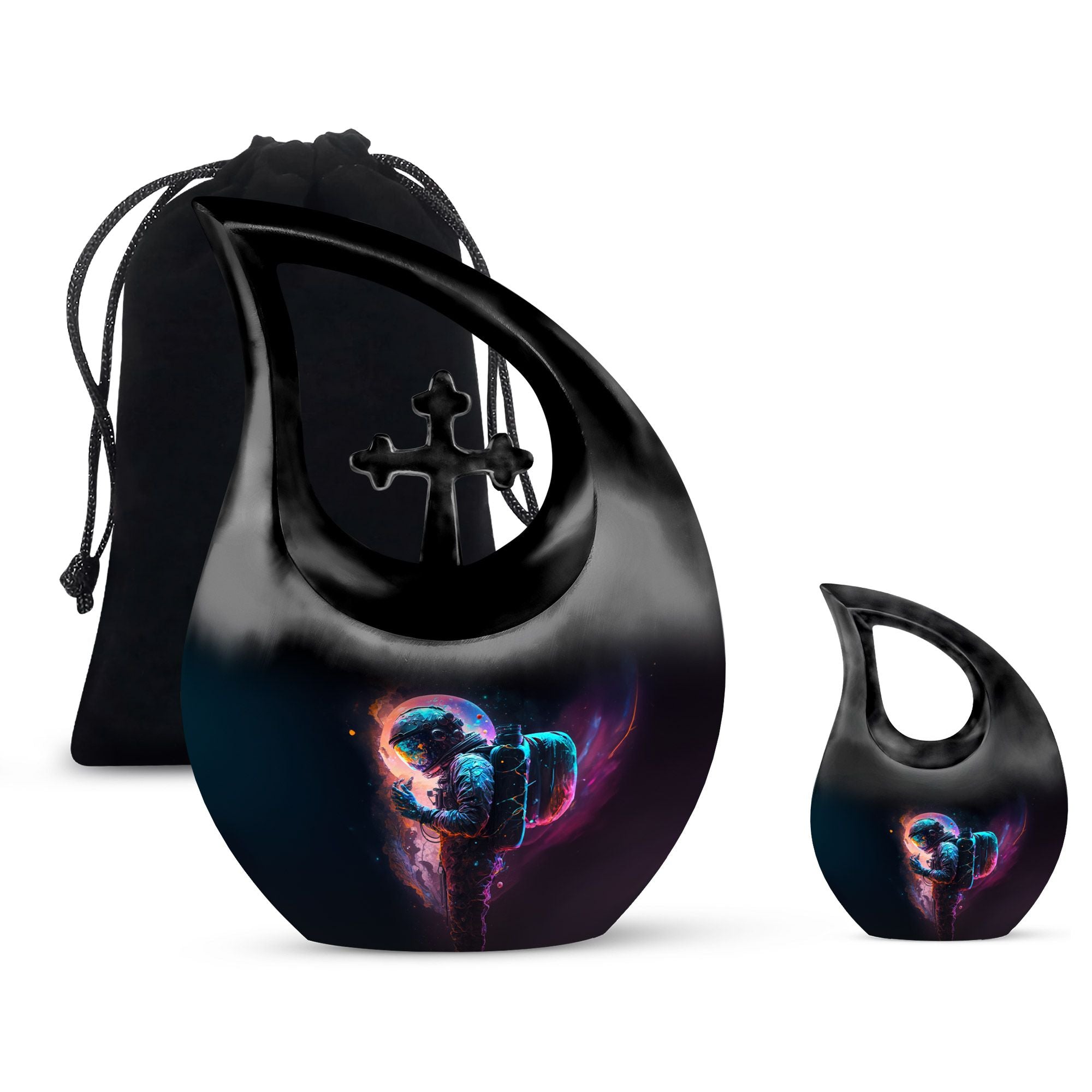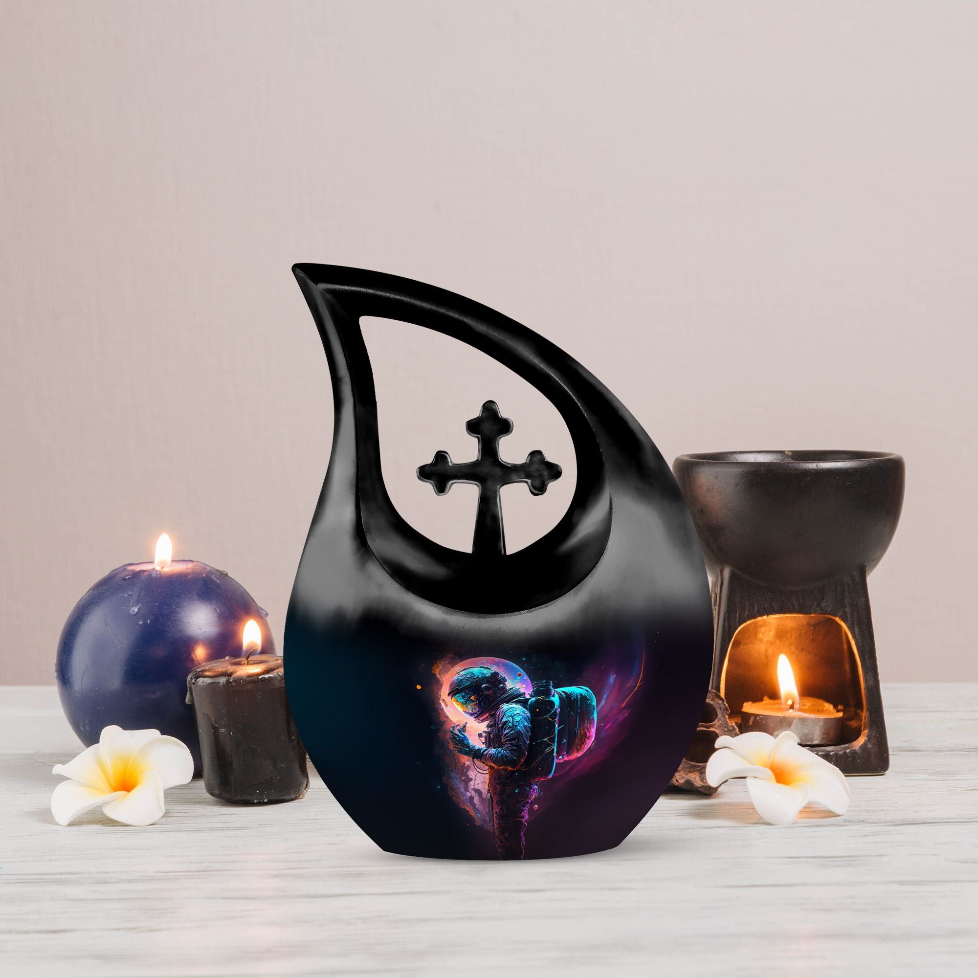 Celebrate the eternal connection between love and the universe with our Cosmic Astronaut Cremation Urn, a stunning tribute that captures celestial beauty and heartfelt remembrance. Designed to bring comfort and serenity, this keepsake urn is ideal for families seeking small memorial urns or mini urns for human ashes that embody both art and meaning. Whether chosen for Mom, Dad, or a beloved family member, it serves as a timeless reminder of life’s unending journey.