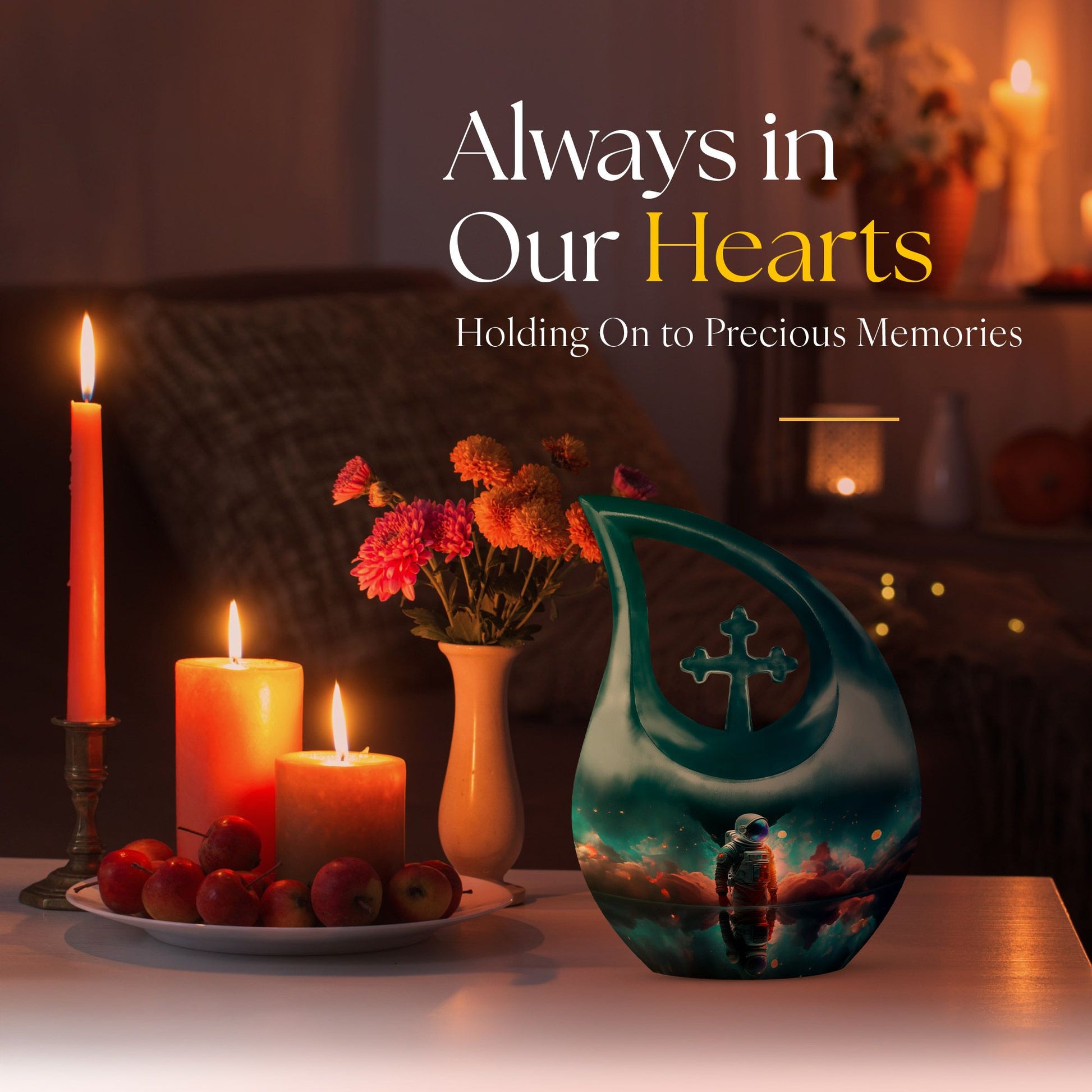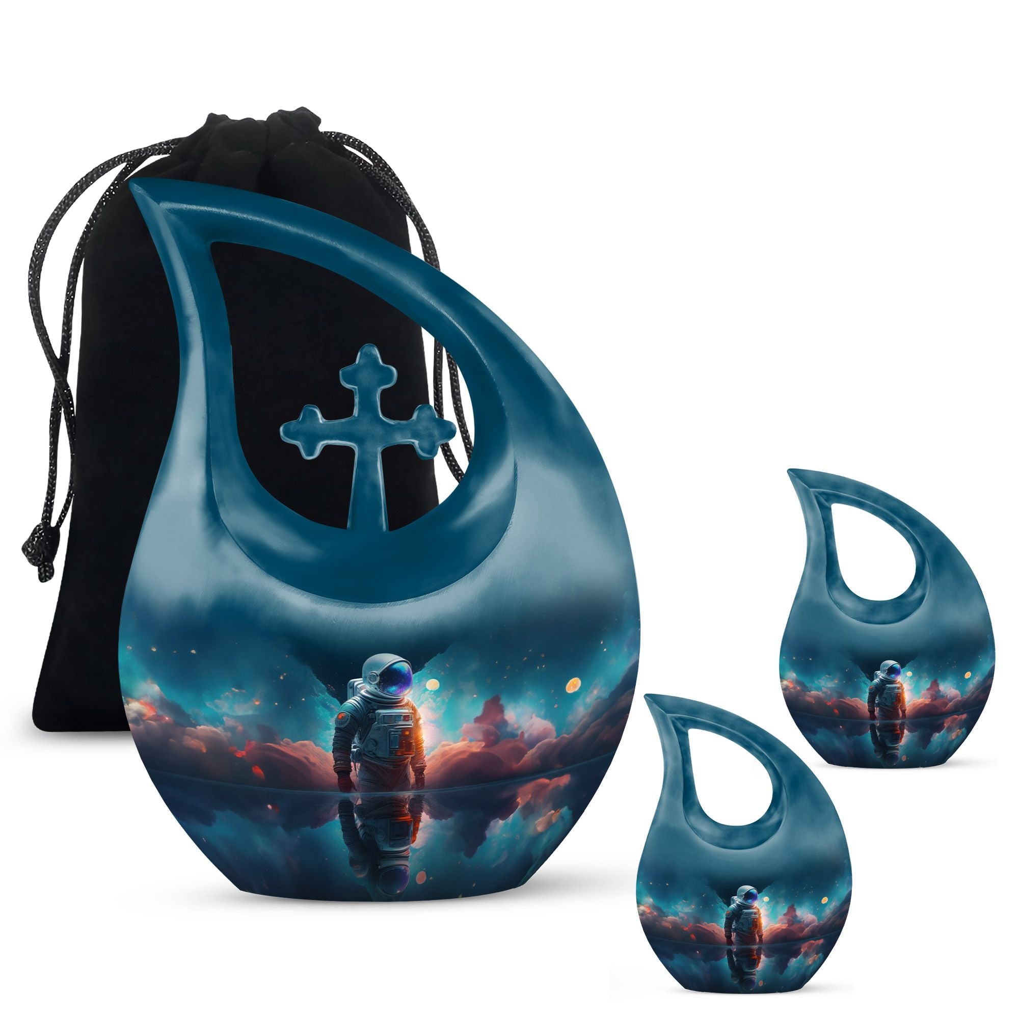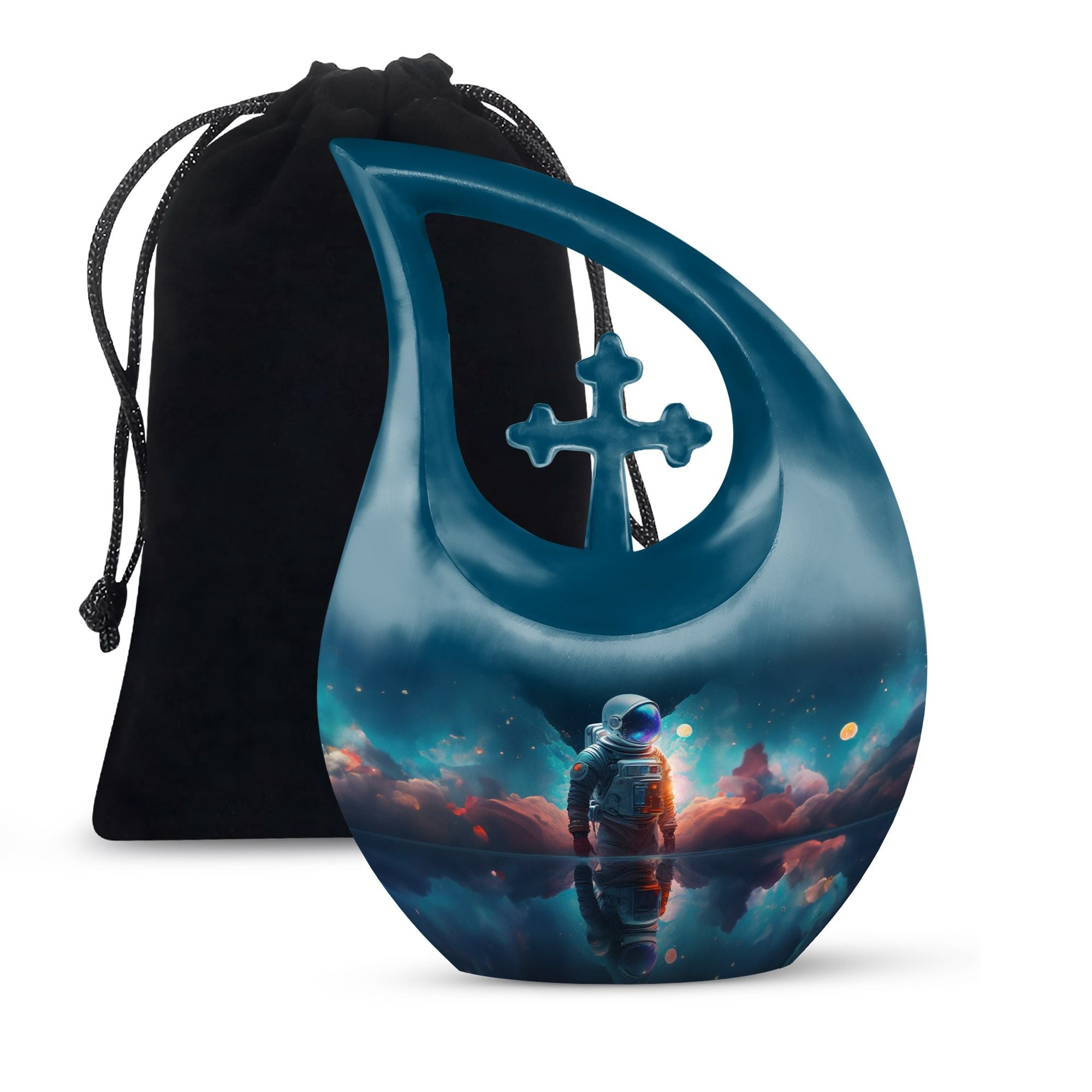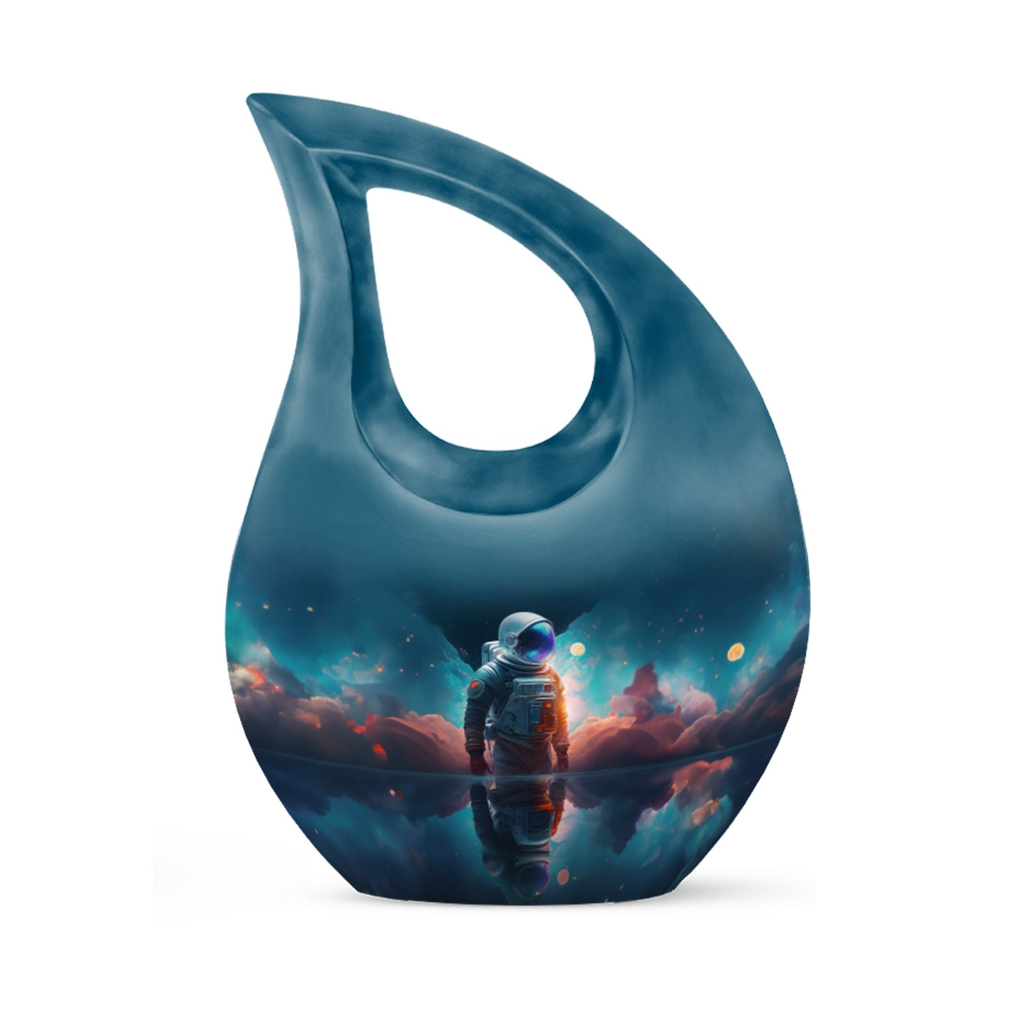 Crafted from premium aluminum, this urn for cremations features a sleek teardrop silhouette adorned with a mesmerizing space-inspired design. Its durable construction and smooth finish make it one of the most elegant cremation urns ashes available. Whether displayed at home or used as part of a memorial service, it offers both beauty and emotional depth. Families may also choose cremation keepsakes ashes, small keepsake urns for human ashes, or small urns for human ashes keepsake options to share among loved ones.