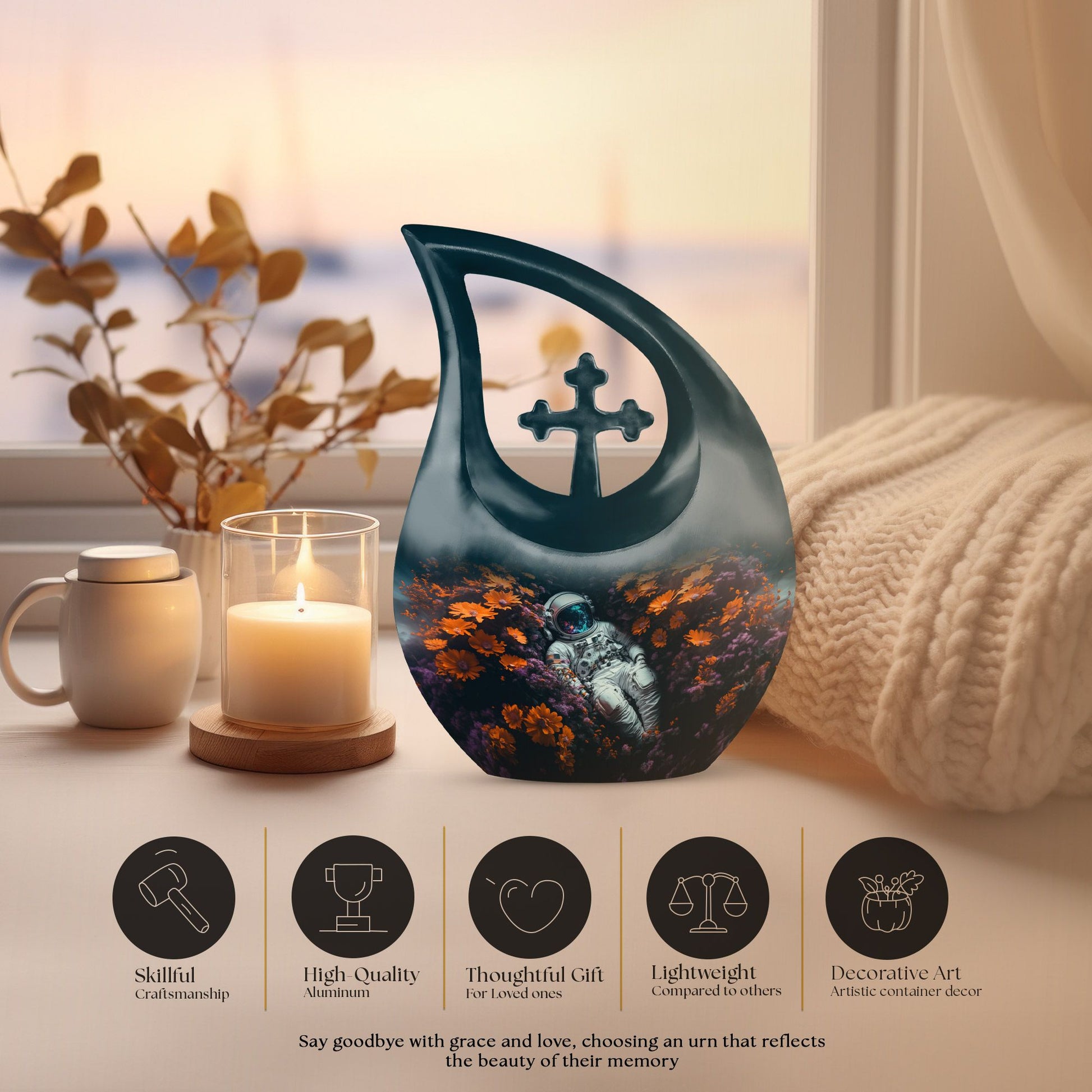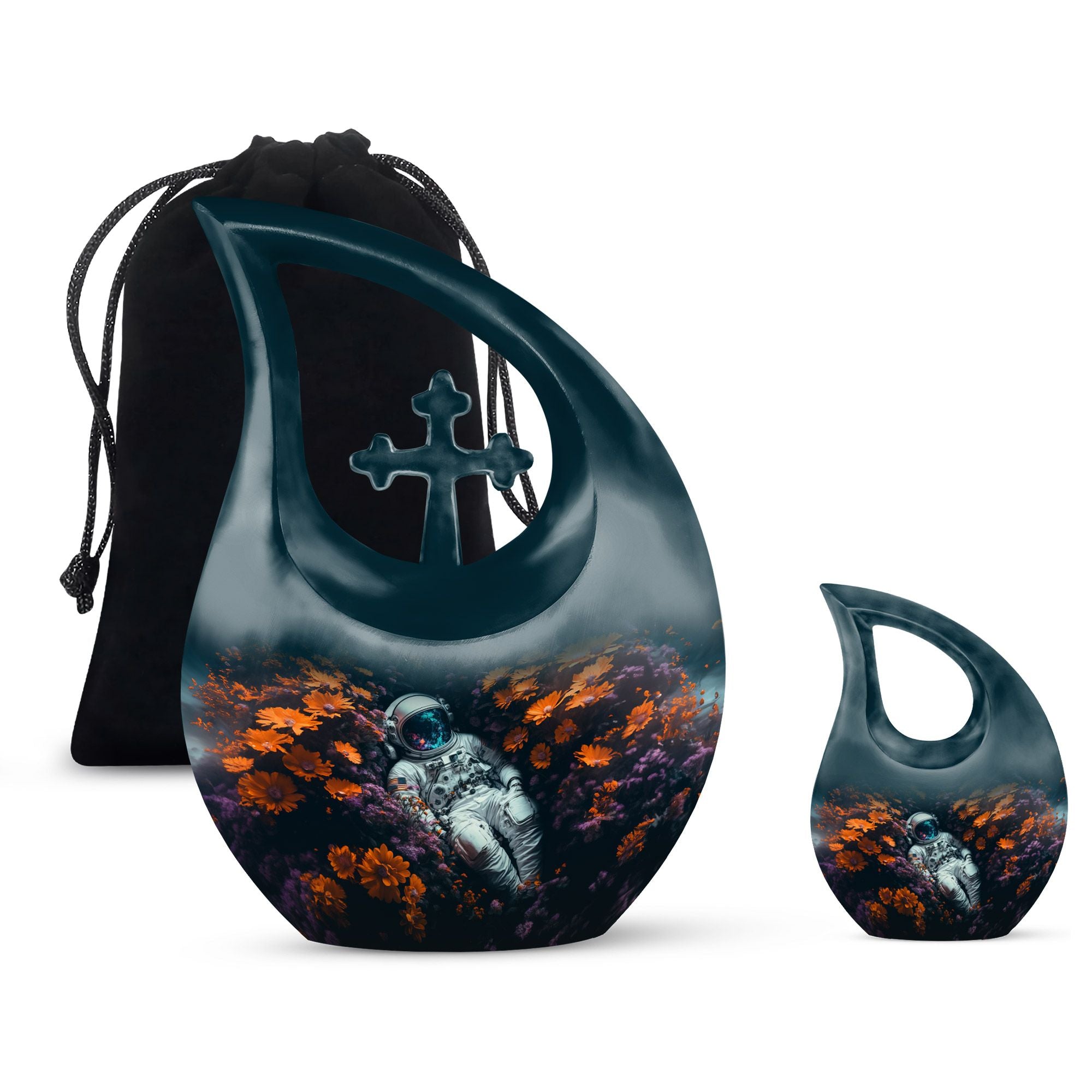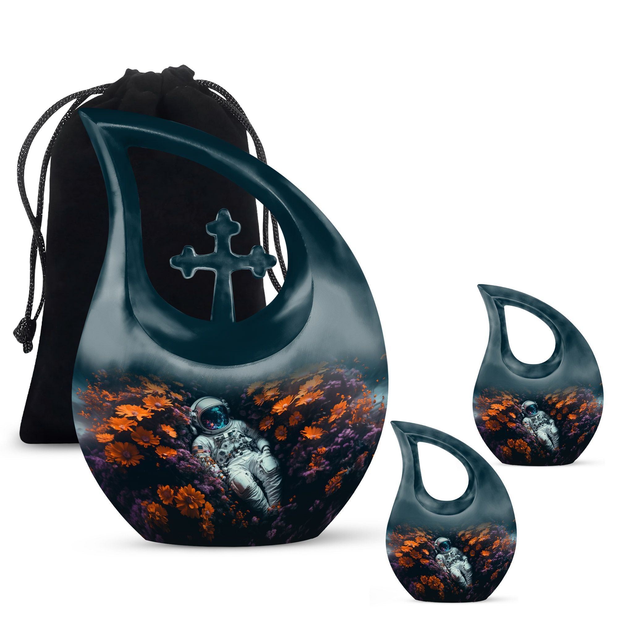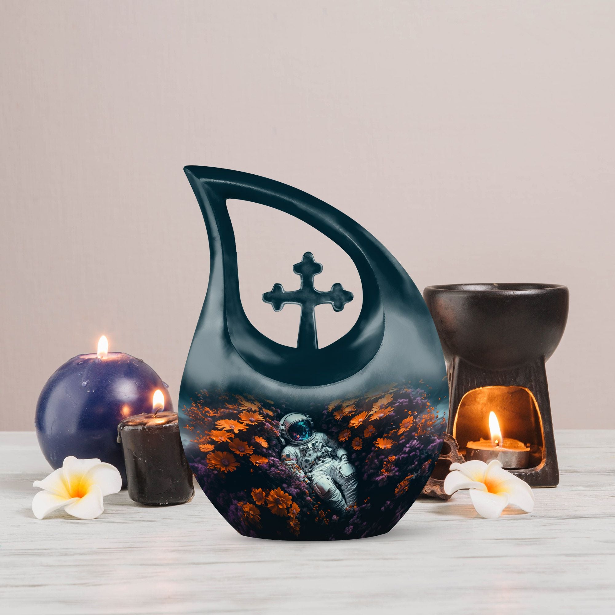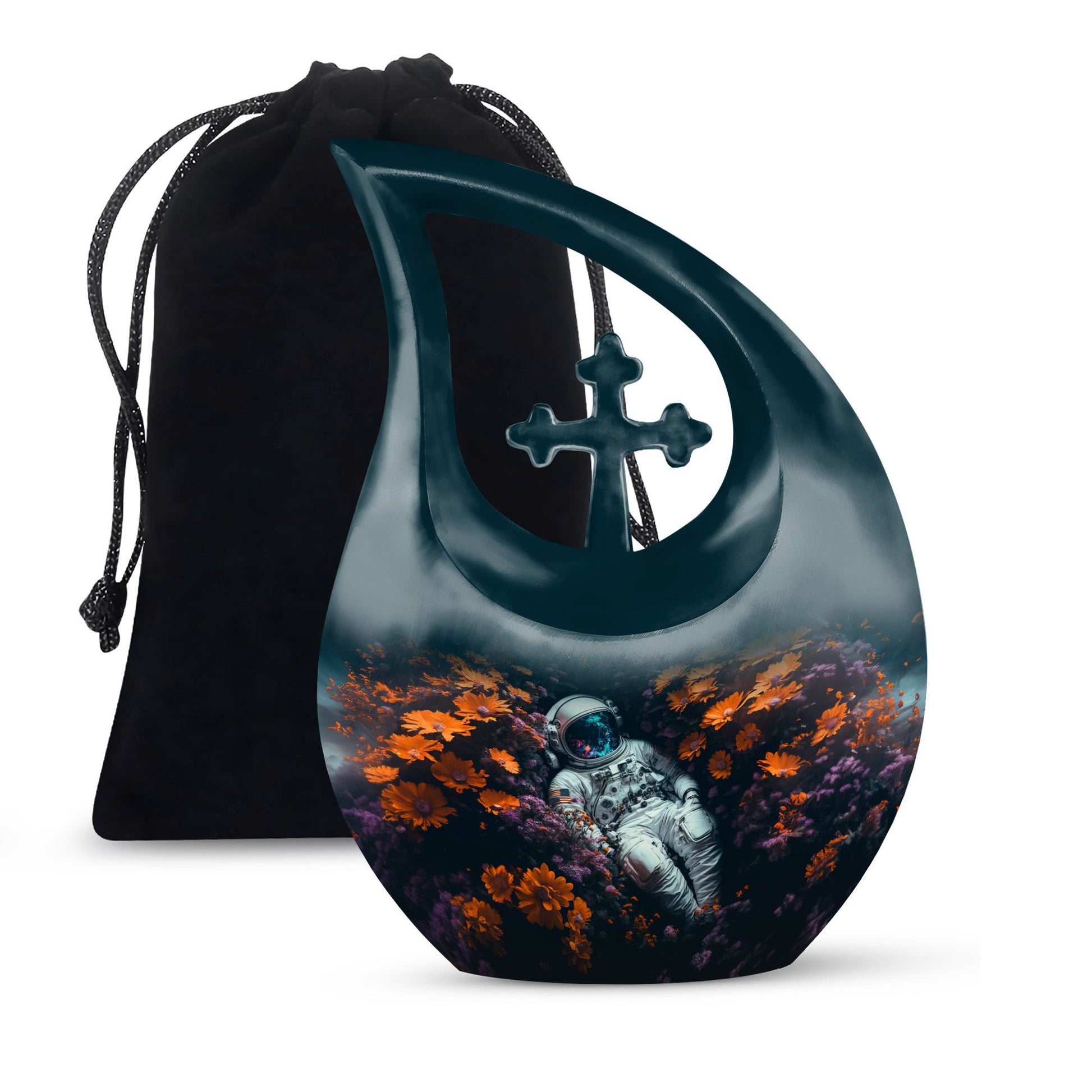 The Space Exploration Cremation Urn for Human Ashes honors the boundless spirit of those who dreamed beyond the horizon. This touching tribute reflects a soul’s eternal journey among the stars, making it a meaningful choice for families seeking an urn for ashes for women or a large urn for a beloved mom. Its celestial design and deep tones evoke the mystery and beauty of the night sky — a comforting reminder that love knows no boundaries.