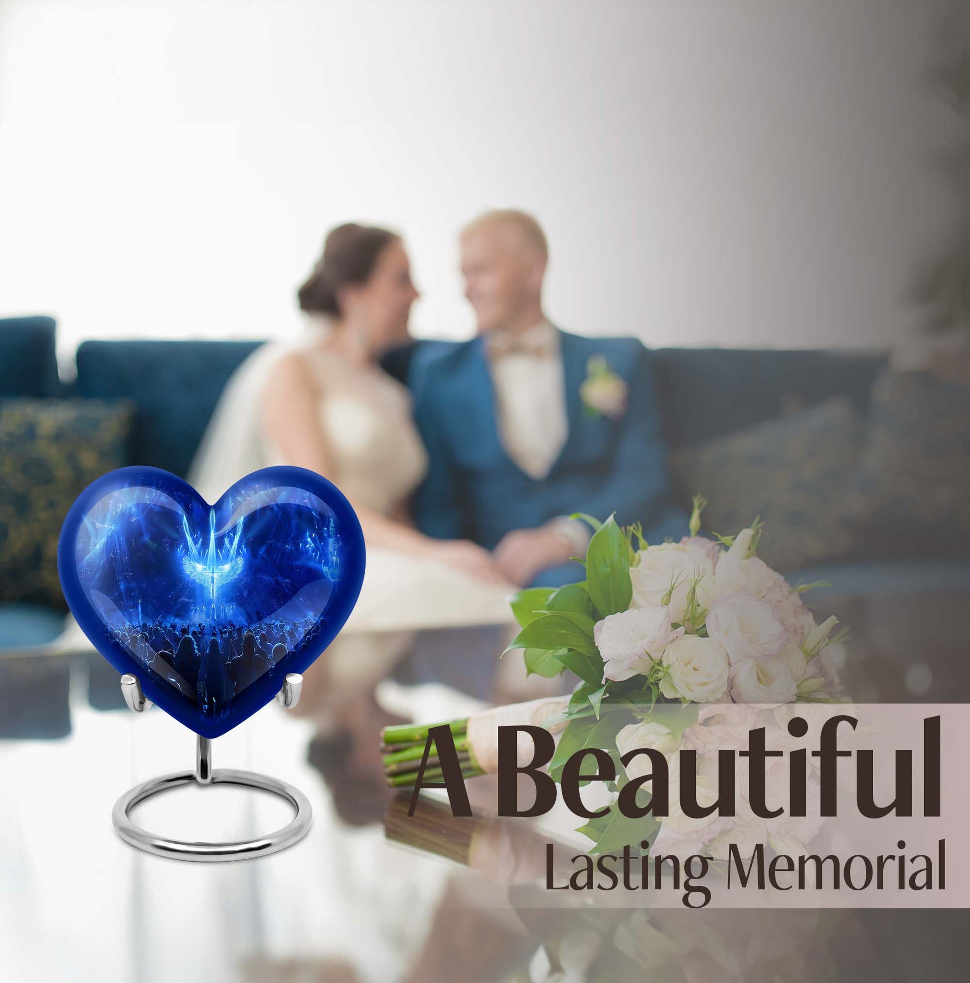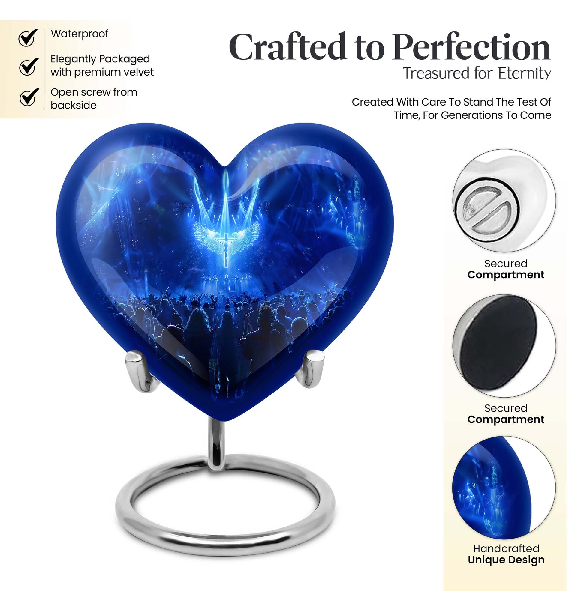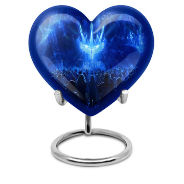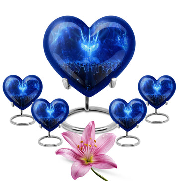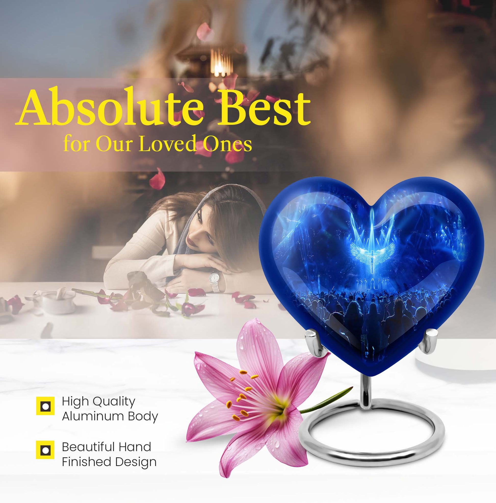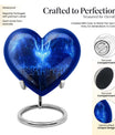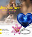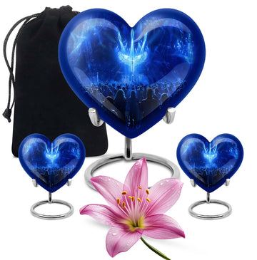 Discover our beautifully crafted 10-inch 'Cross Urn,' part of our extensive collection of burial medium size urns. Each one is a heartfelt work of art, forged with the aim of honoring the unique life of your loved one. The weight of this urn is 3.3 pounds, with each one comprised of high-quality, sturdy aluminium. As part of our offering, we have a 'Heart Urn' design with an enchanting 'Aurora Borealis' theme for an ethereal touch. The urn's dimensions provide a generous capacity of 200 cubic inches—ample space to hold ashes securely. We also include a plush velvet pouch to safeguard those precious remnants further. Moreover, you can make your selection truly unique with our customization option. Personalize your urn with engraved names, adding an intimate touch to your memorial. This urn is ideal for cremation rituals and it can also serve as a respectful metal urn for burial in the ground. Opt for our artistic urns—the perfect solution for commemorating your beloved ones, suitable for both women and men. Freshen up the memorial service with our large urns, the perfect tribute to signifying love and respect for a lifetime.
