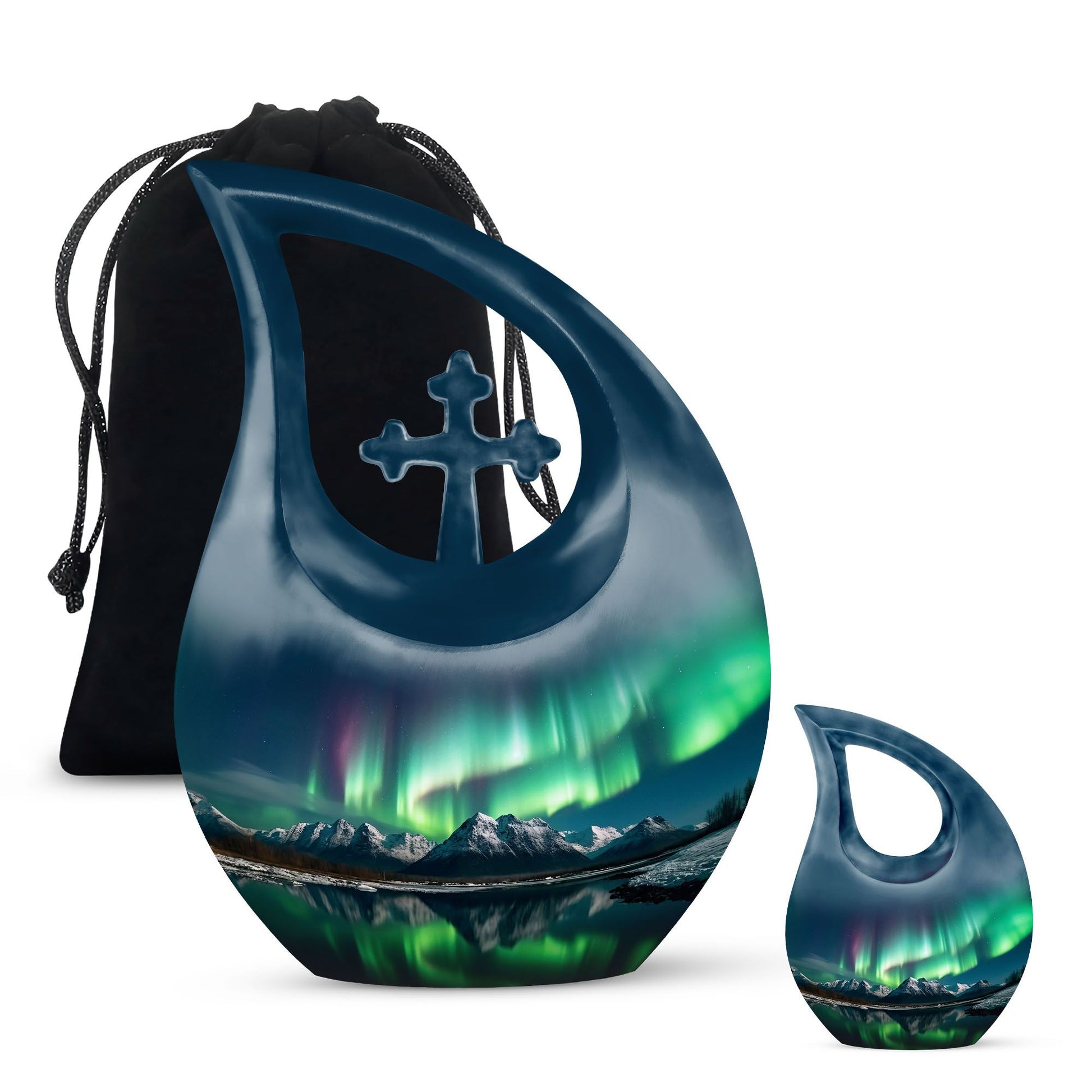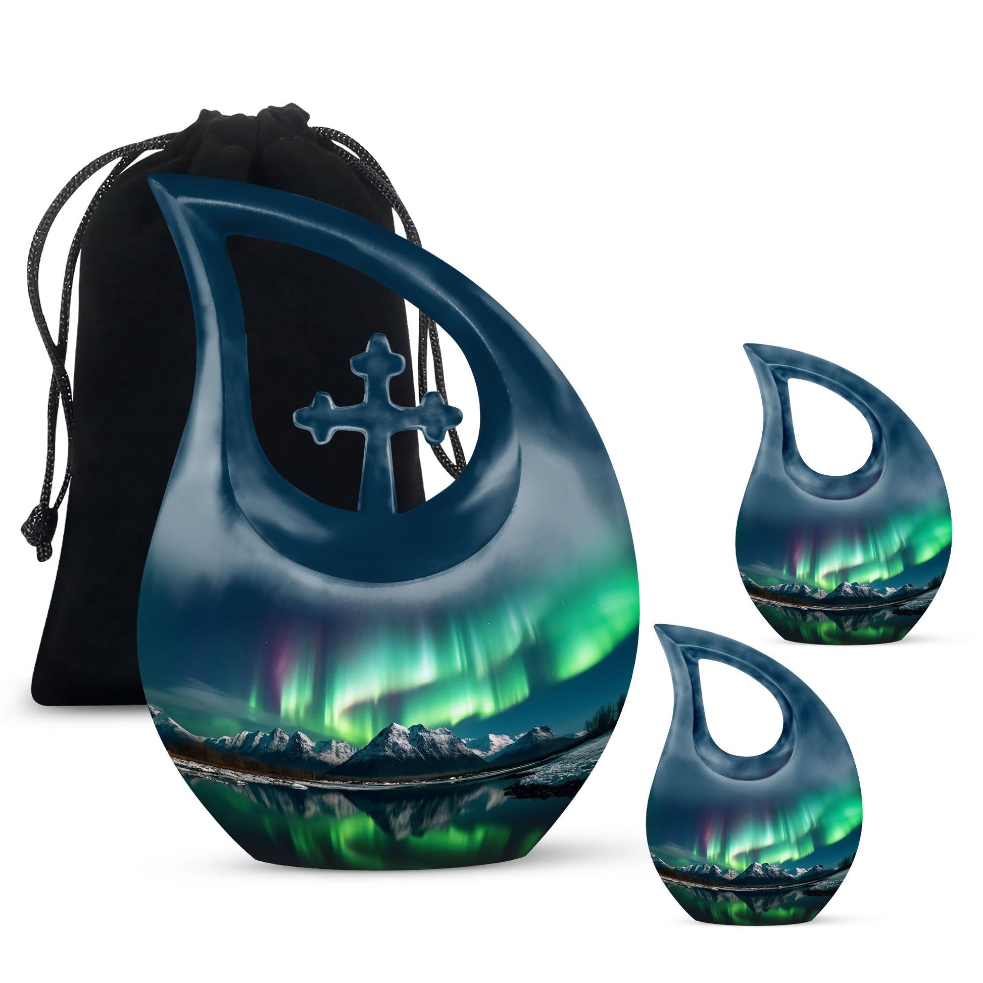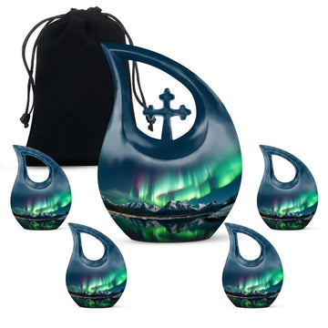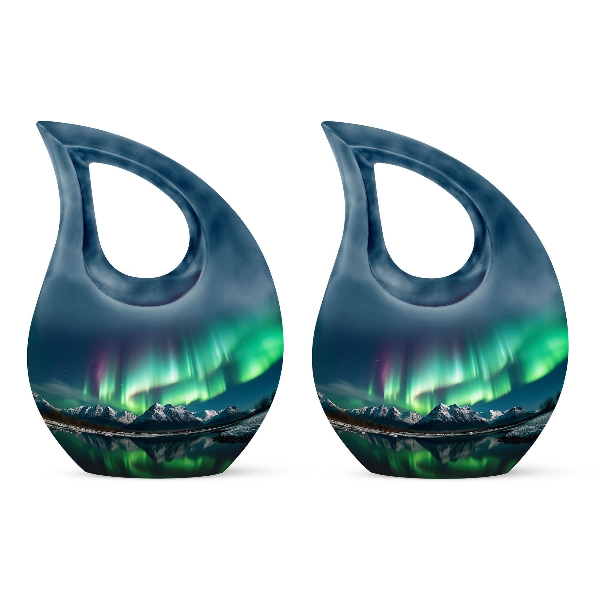 This set also serves beautifully as keepsake cremation urns for human ashes adult, or cremation urns for human ashes adult small. Whether used for an urn for cremation ashes or as a cremation urn for human, the Aurora Borealis Commemorative Urn ensures memories remain honored and close to the heart.