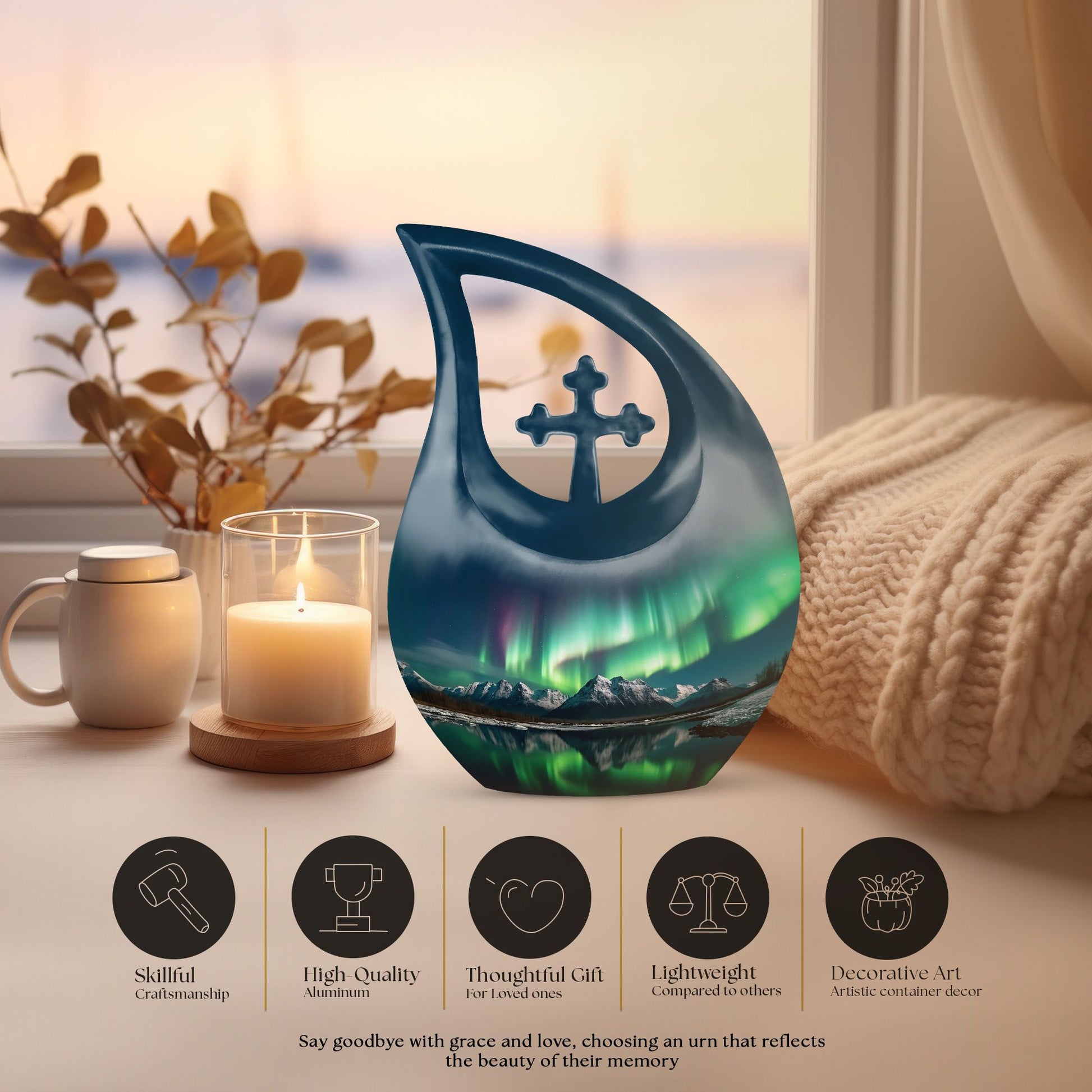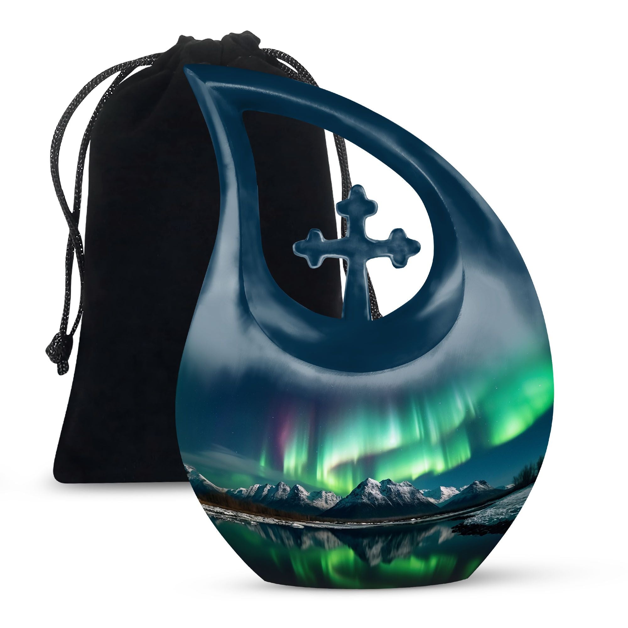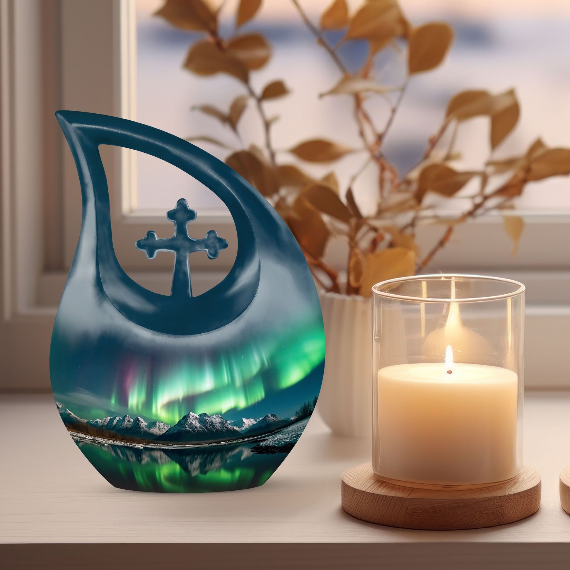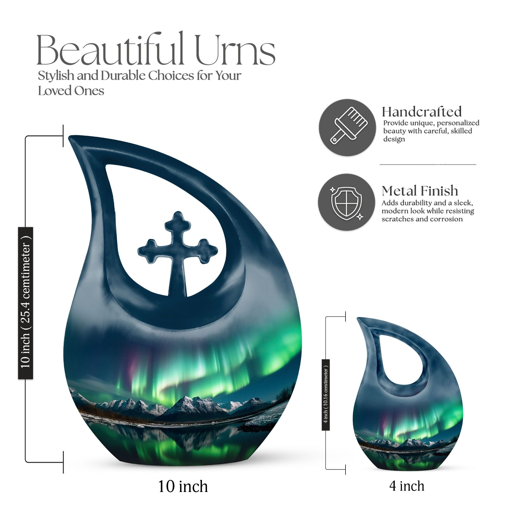 This set also serves beautifully as keepsake cremation urns for human ashes adult, or cremation urns for human ashes adult small. Whether used for an urn for cremation ashes or as a cremation urn for human, the Aurora Borealis Commemorative Urn ensures memories remain honored and close to the heart.