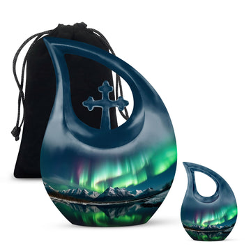 Remember and celebrate your loved one with the Aurora Borealis Commemorative Urn, thoughtfully designed to provide both a large and keepsake option. This set is ideal for adult cremation urns for human ashes, human cremation urns, or keepsake cremation urns for human ashes adult, ensuring every memory is preserved with care and dignity.