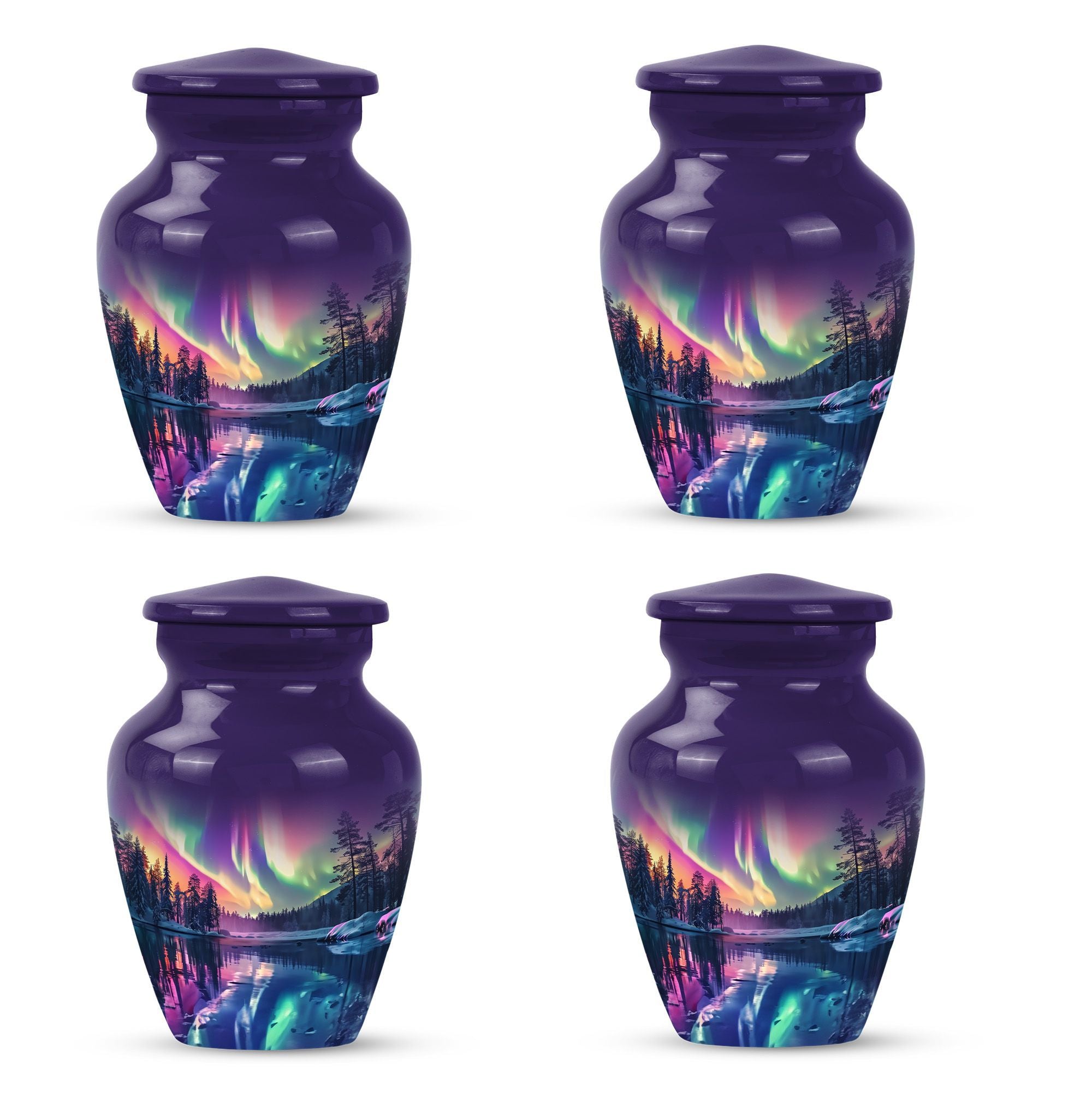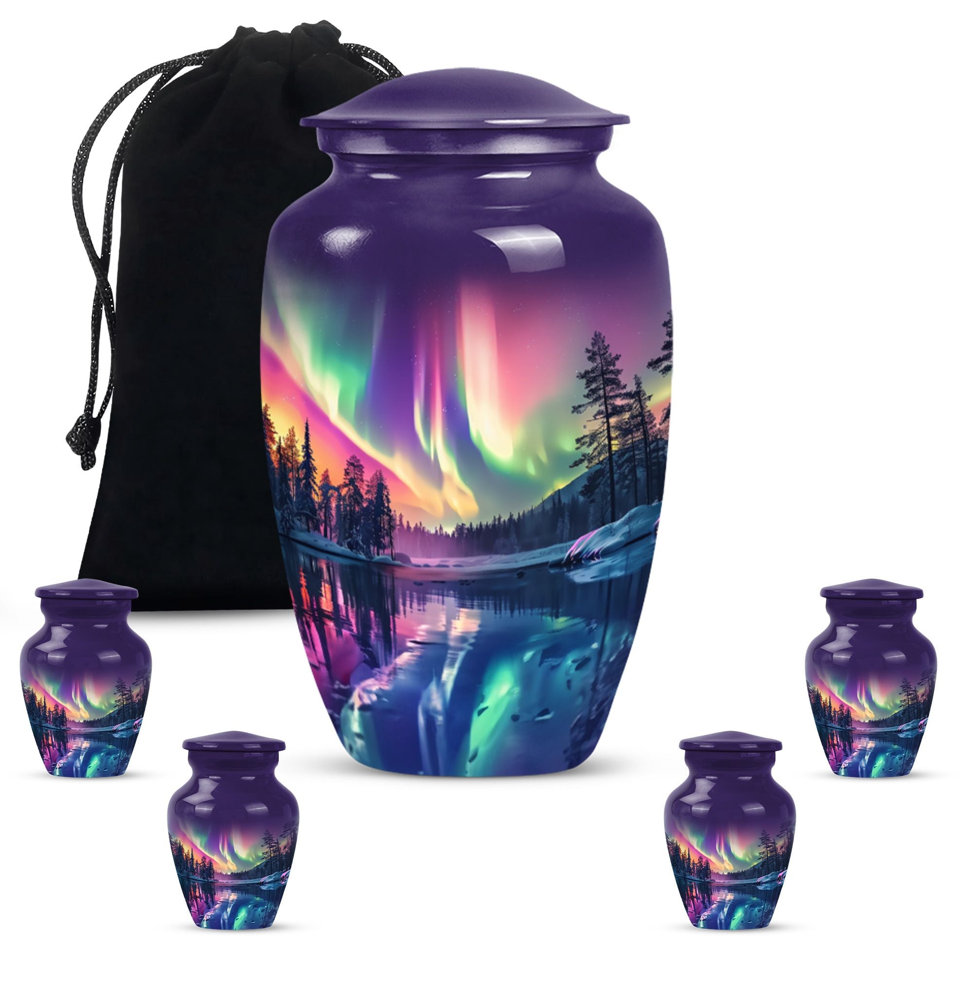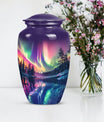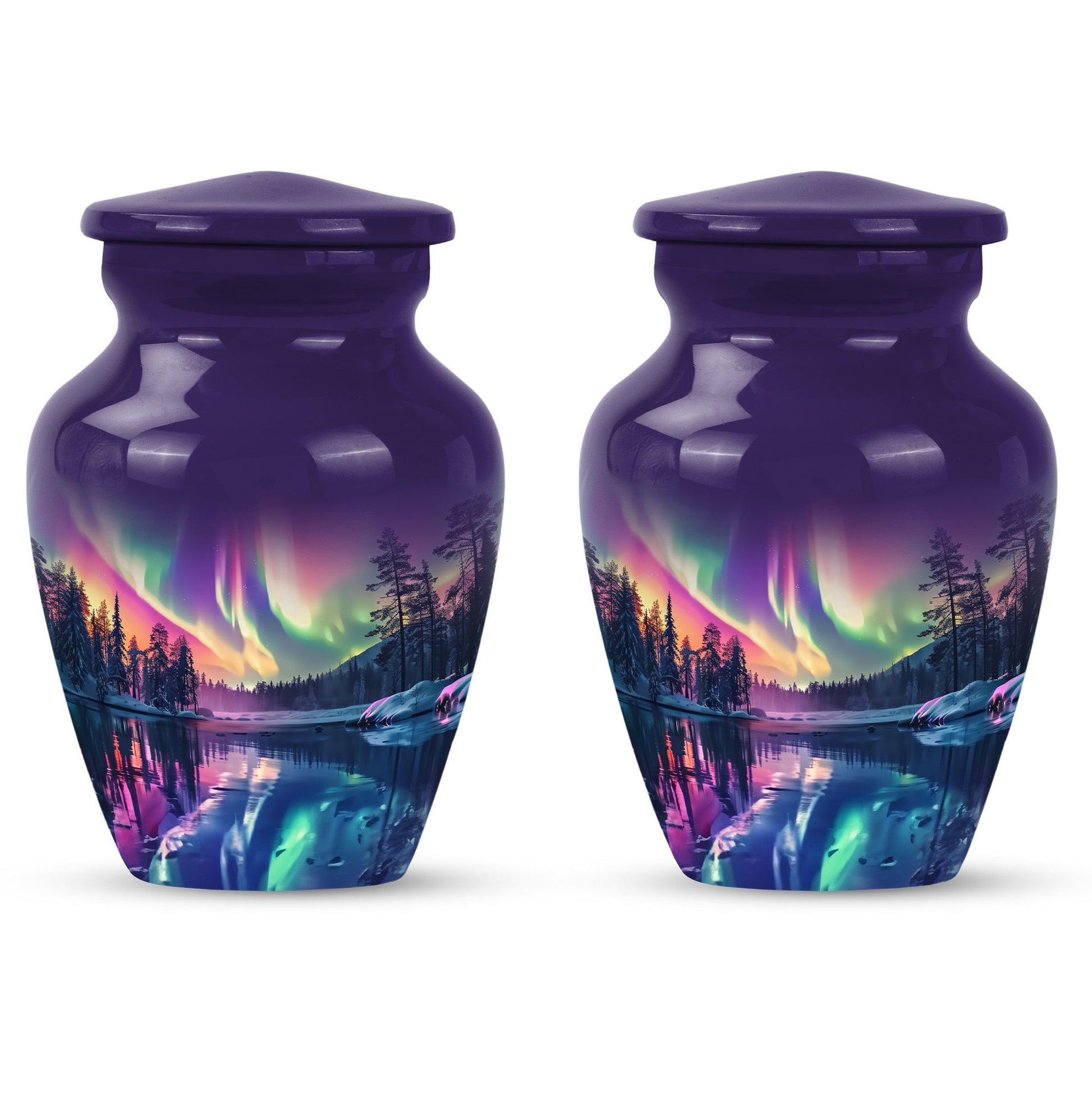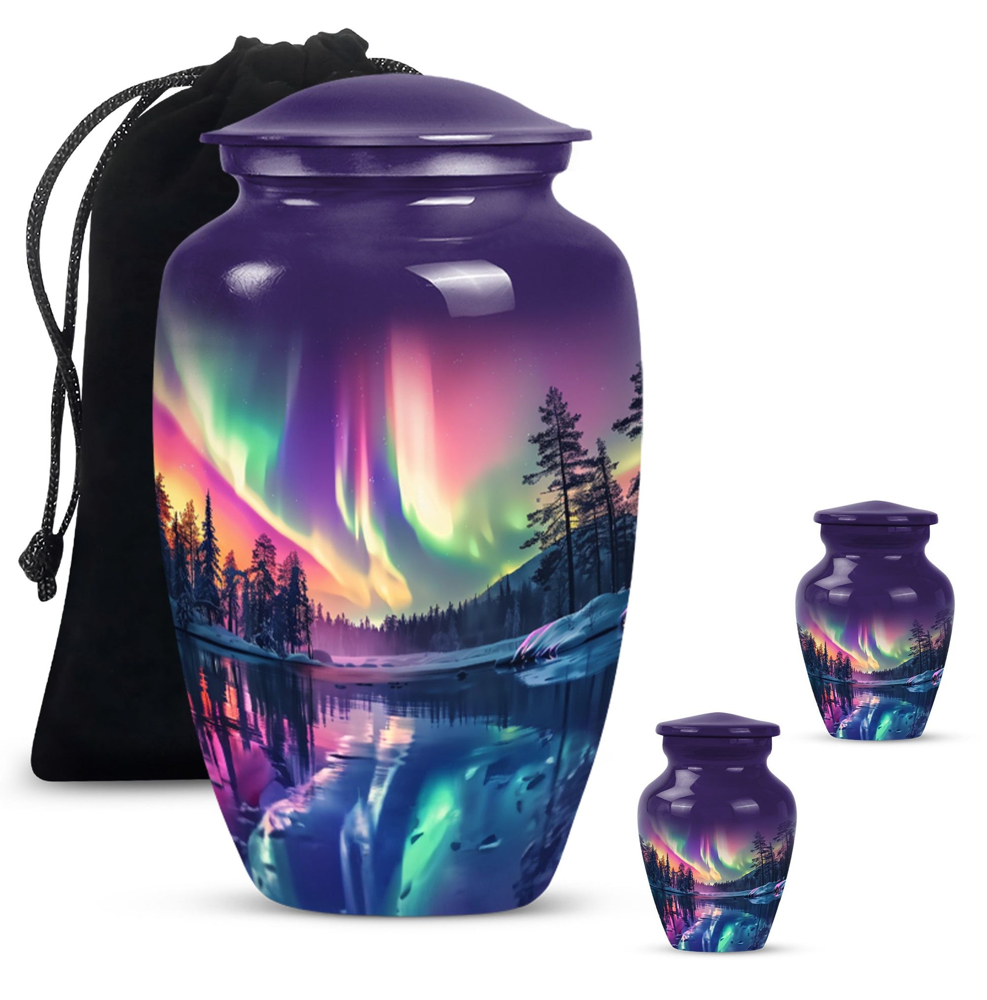 Gracefully crafted from strong aluminum, the AURORA Urn is the epitome of elegant and sophisticated simplicity. Serving as an ideal memorial adult urn, this cremation urn, measuring 10 inches, possesses a weight of 3.3 pounds and the capacity to hold up to 200 cubic inches. This size is perfectly suited for adults, making it applicable for large urns category. The urn is elegantly packaged in a velvet pouch for graceful containment and protection of the cherished ashes. One of the key features is the opportunity for personalization - you can engrave names on it to preserve the memory of your loved ones in more than spirit. Exhibiting an abstract theme, it combines the high-quality contemporary materials with a timeless classic urn design that doesn't fade or lose its touch over the years. With appropriate keywords such as funeral burial urns, human ash urns, ashes urn, and cremation containers for human ashes, this urn distinctly stands out with its impeccable features and purposeful simplicity.