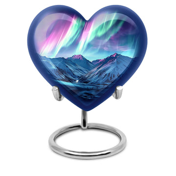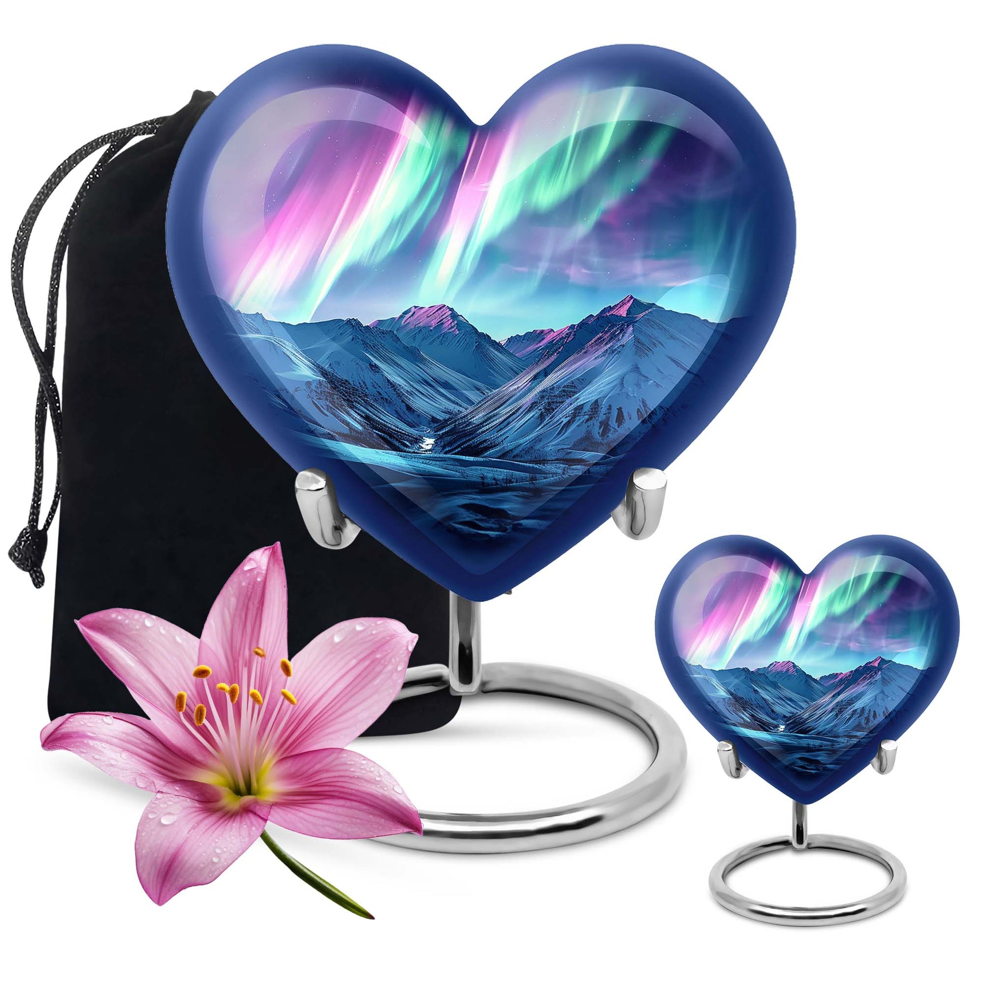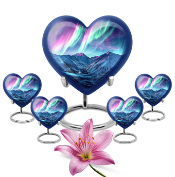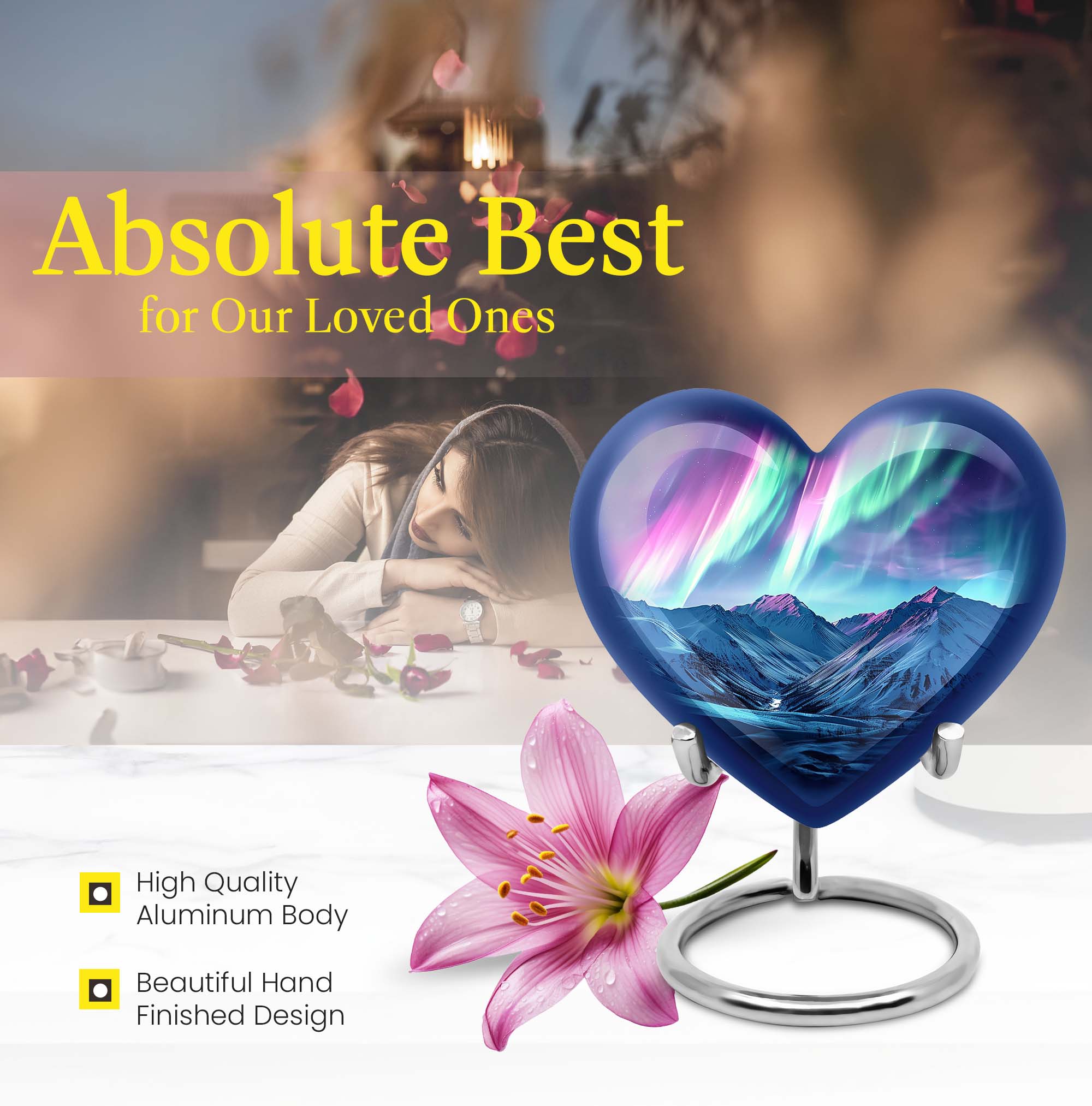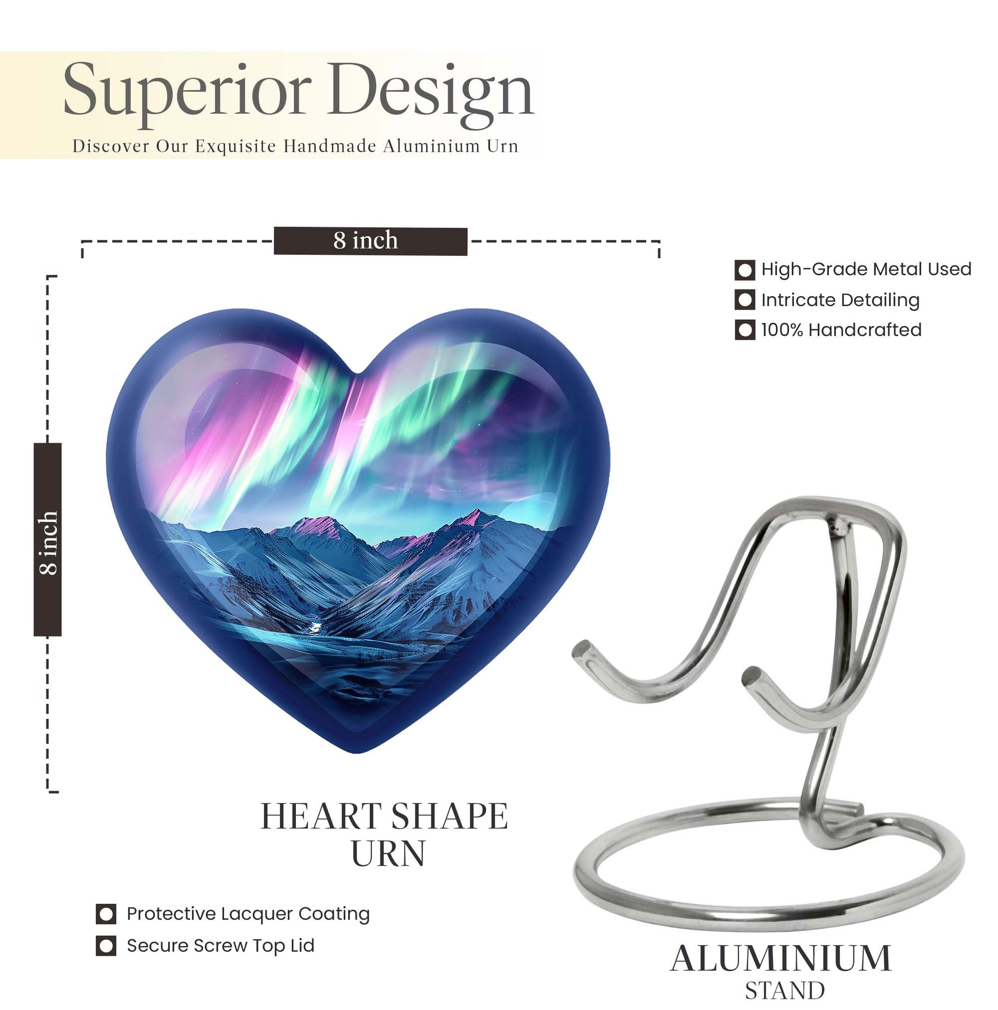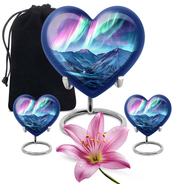 Honor your loved ones with the AURORA Urn, meticulously crafted to hold the ashes of adults. This large, 10-inch urn is beautifully designed with an abstract theme, presenting a heartfelt symbol of love and remembrance. Made of durable aluminium and weighing a sturdy 3.3 pounds, this cremation urn is built to stand the test of time. With a generous capacity of 200 cubic inches, it can spaciously hold the ashes of your loved one, ensuring they have a fitting and respectful resting place. For a meaningful touch, personalize this urn with engraved names - a lasting tribute to the departed. Your purchase also includes a velvet pouch, offering secure containment for the ashes. Whether you're looking for 'urn ash burial urn' or 'urns for cremation ashes for men', the AURORA Urn ensures you memorialize with dignity, respect, and love.