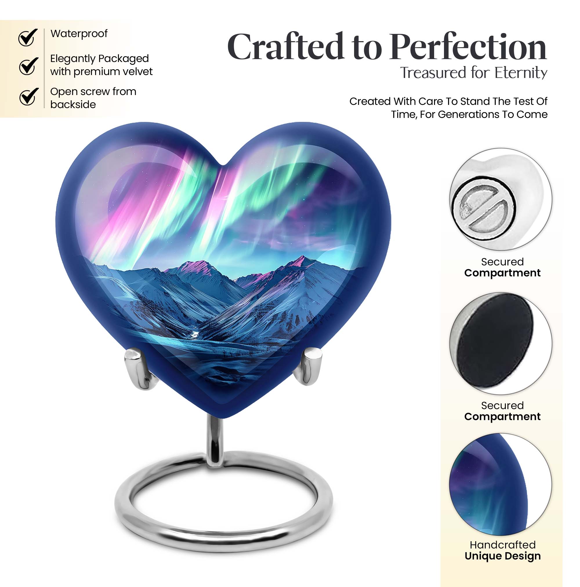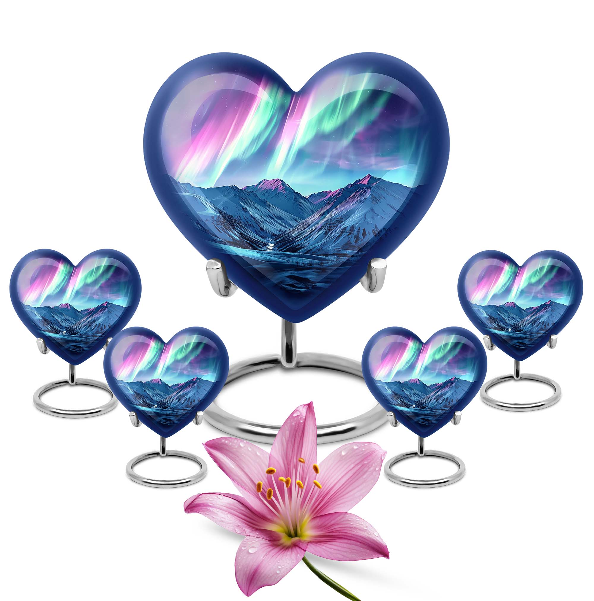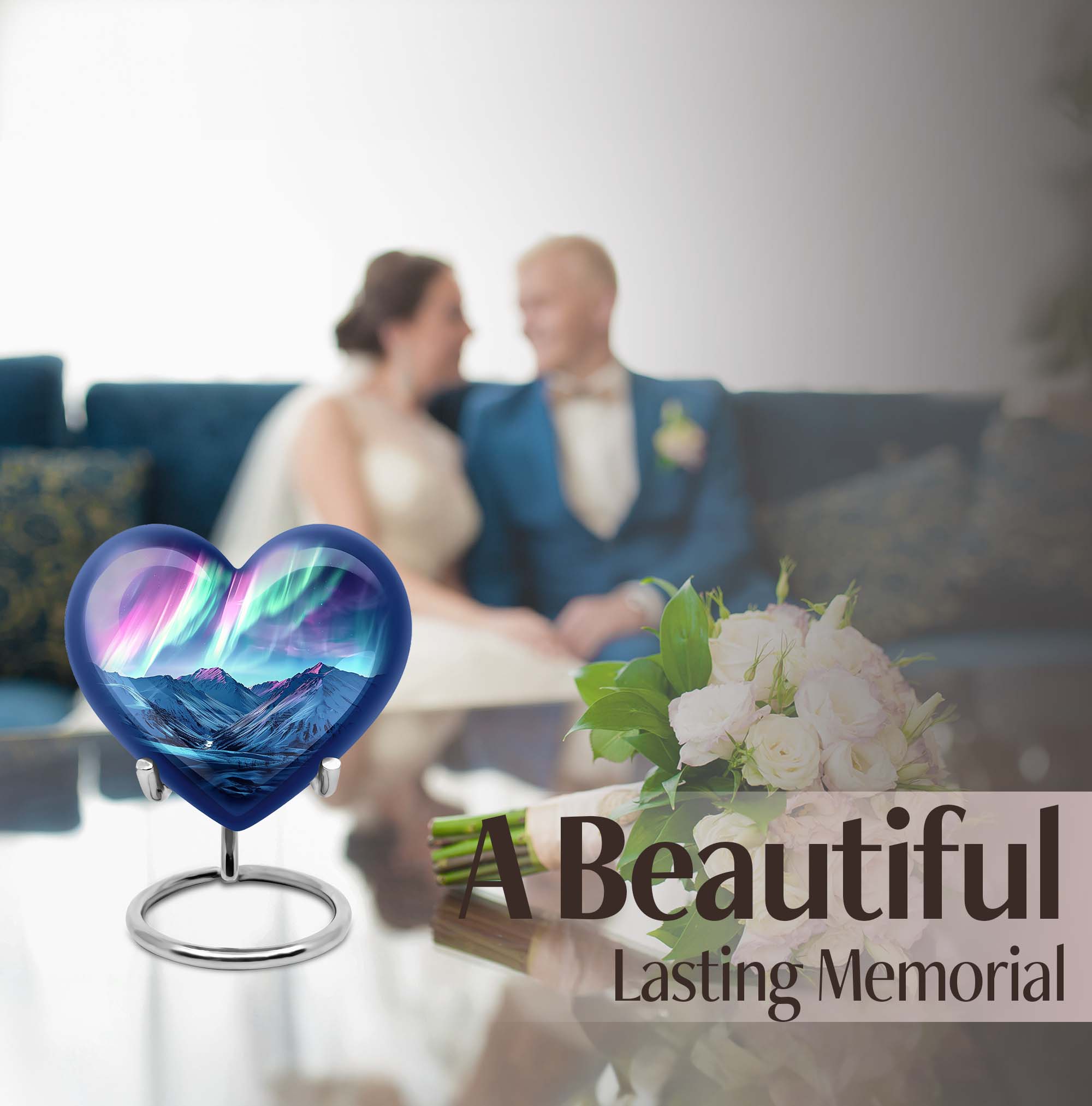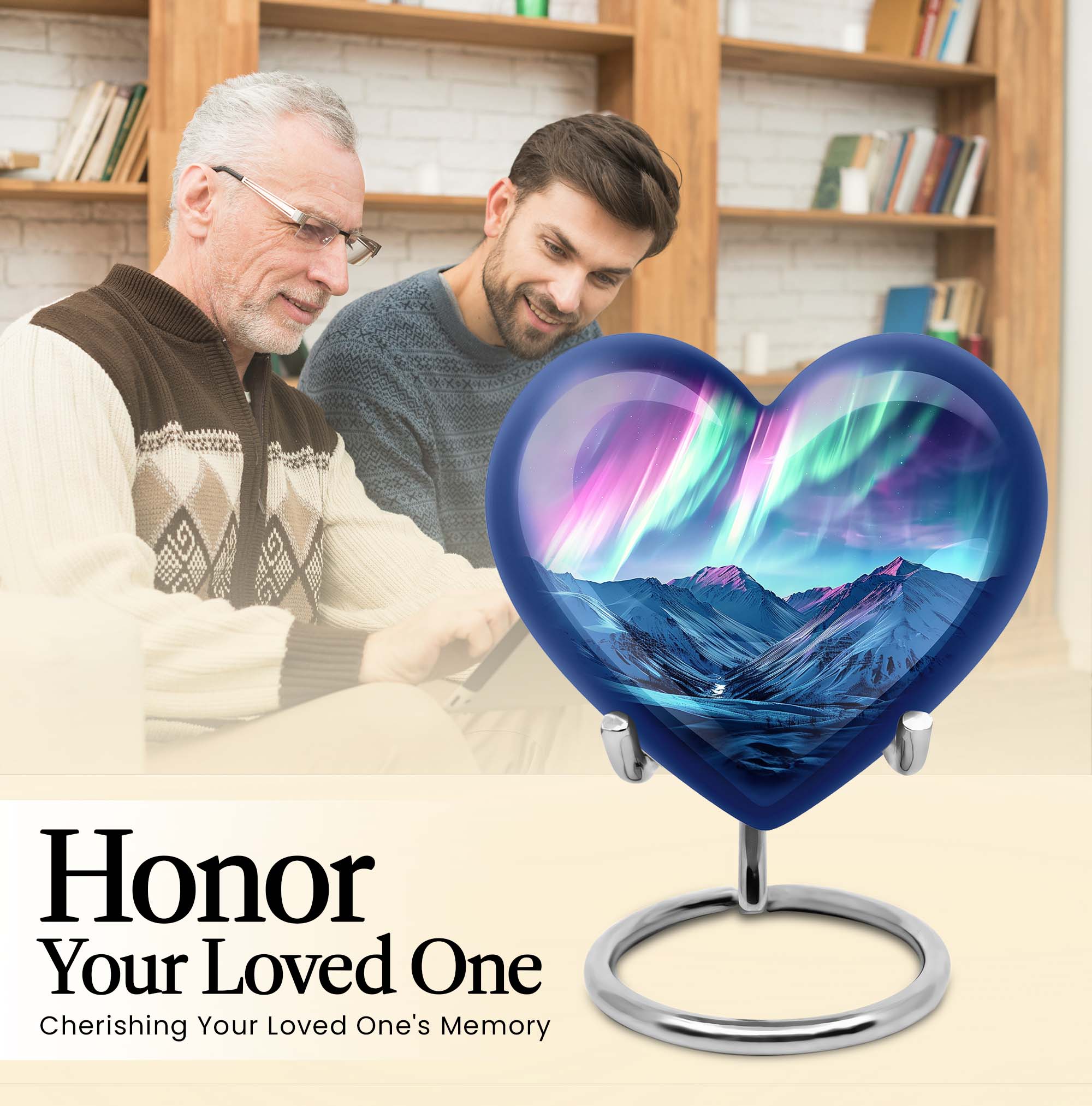 Honor your loved ones with the AURORA Urn, meticulously crafted to hold the ashes of adults. This large, 10-inch urn is beautifully designed with an abstract theme, presenting a heartfelt symbol of love and remembrance. Made of durable aluminium and weighing a sturdy 3.3 pounds, this cremation urn is built to stand the test of time. With a generous capacity of 200 cubic inches, it can spaciously hold the ashes of your loved one, ensuring they have a fitting and respectful resting place. For a meaningful touch, personalize this urn with engraved names - a lasting tribute to the departed. Your purchase also includes a velvet pouch, offering secure containment for the ashes. Whether you're looking for 'urn ash burial urn' or 'urns for cremation ashes for men', the AURORA Urn ensures you memorialize with dignity, respect, and love.