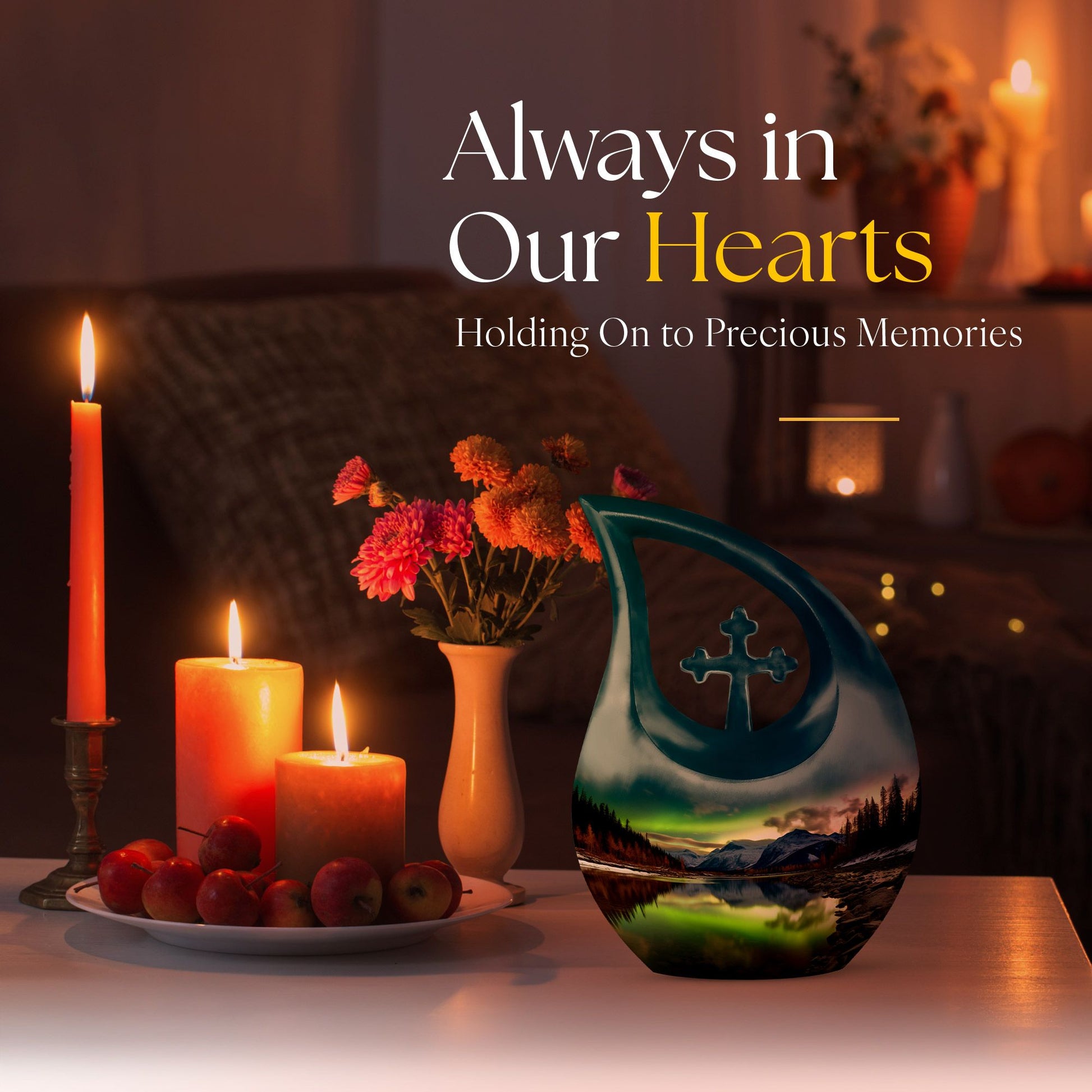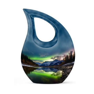 The Mountain Lake Cremation Urn for Human Ashes reflects the tranquility and strength of nature — a peaceful tribute for a beloved mother, father, or family member. Its calming design mirrors a serene mountain lake at sunset, reminding us that love, like water, endures and flows endlessly. Ideal for families seeking cremation urns for adult ashes small or human cremation urns adult, it beautifully captures both peace and remembrance.