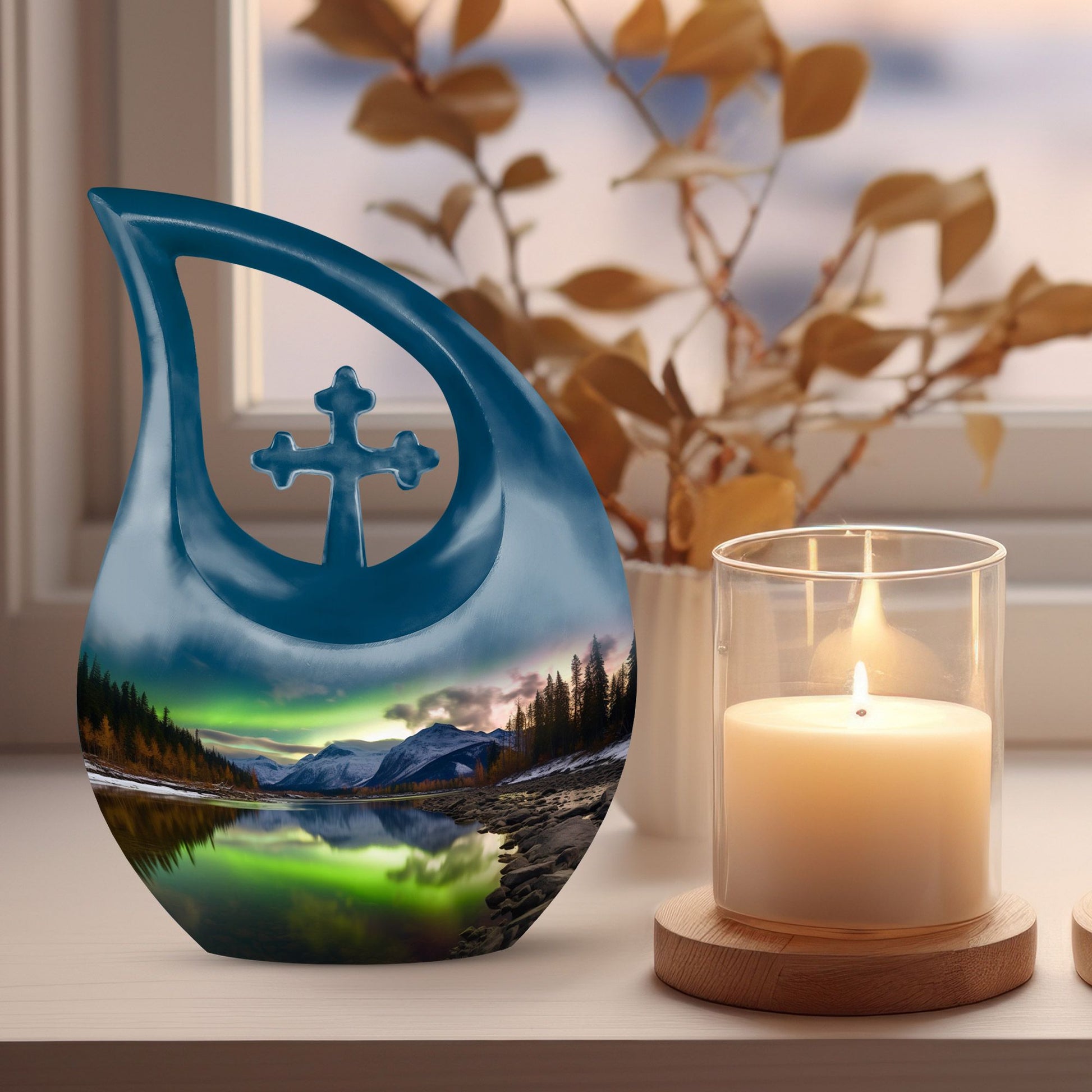 Let the Mountain Lake Cremation Urn serve as a peaceful reflection of everlasting love — a reminder that every soul returns to calm waters and eternal light.