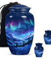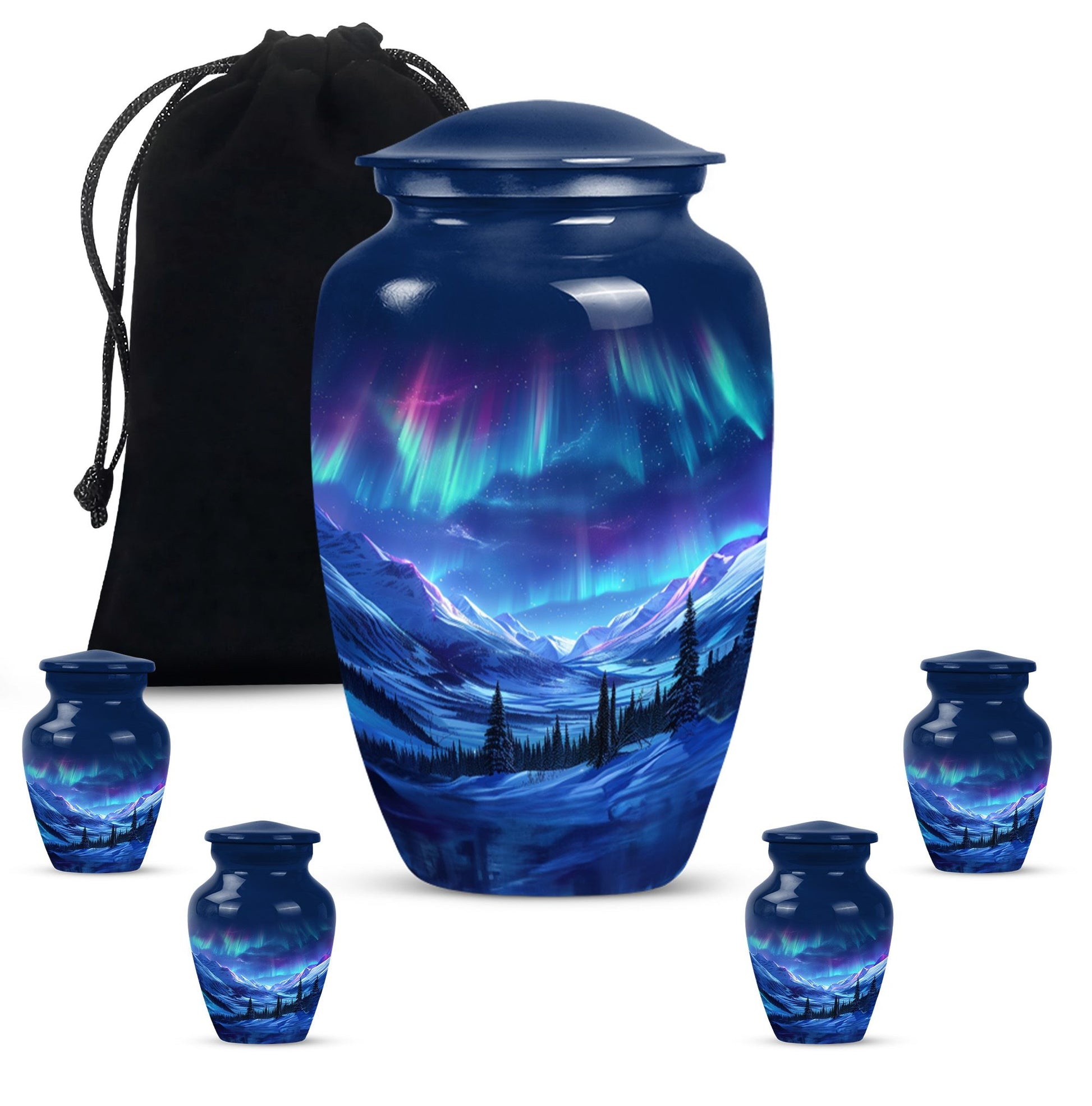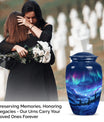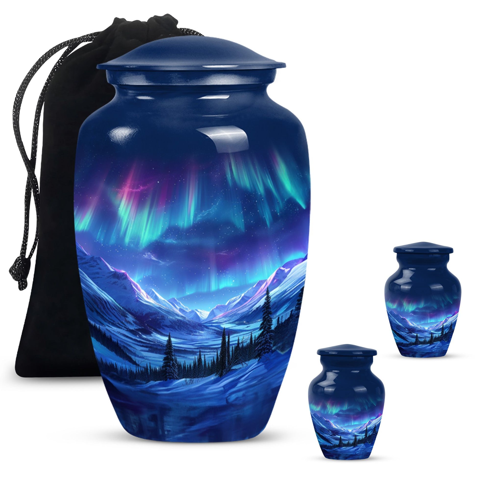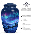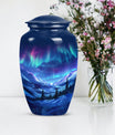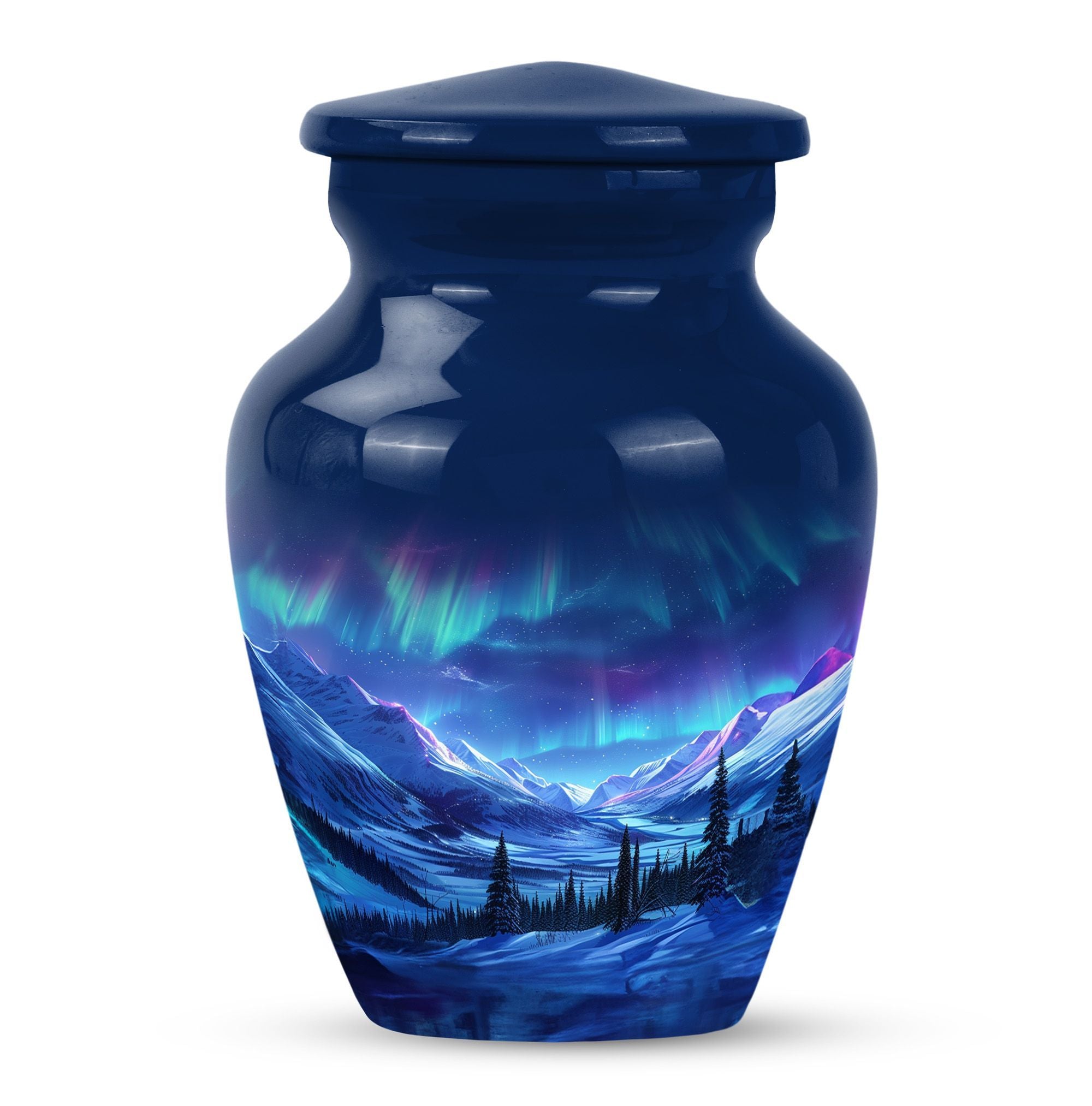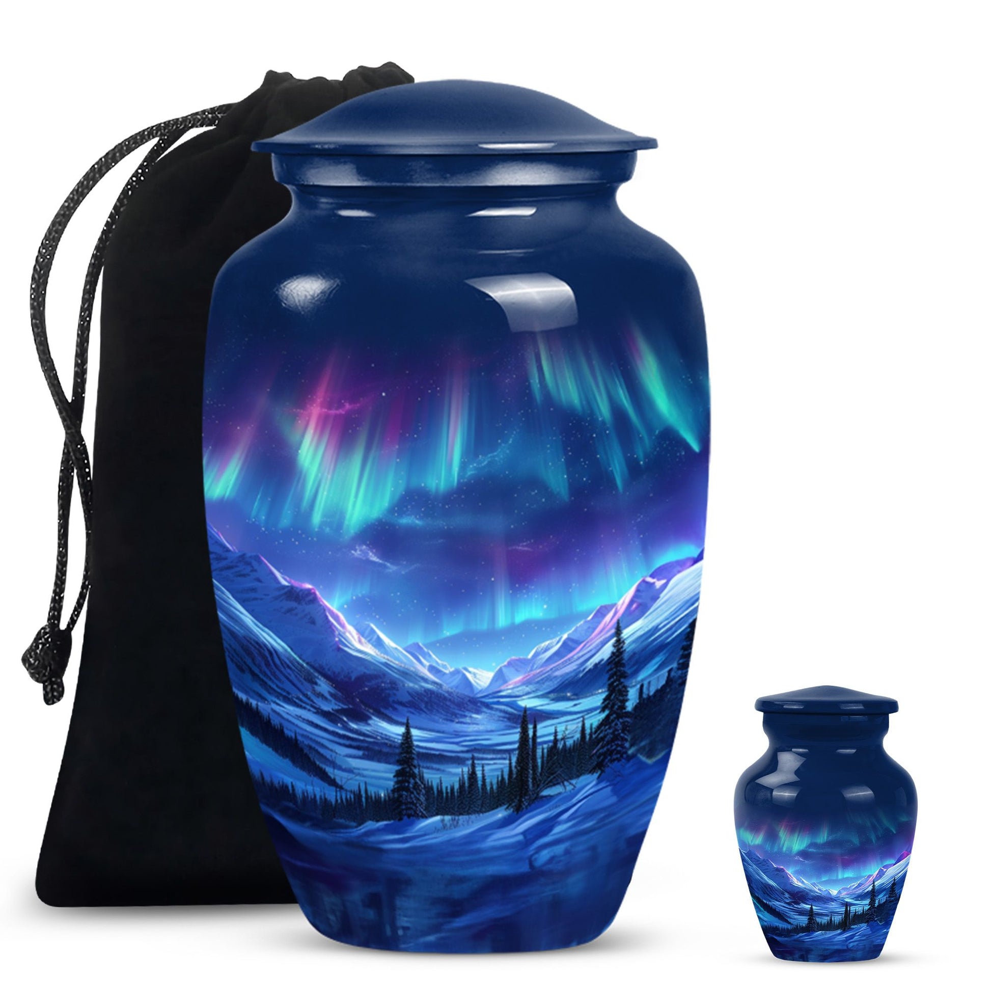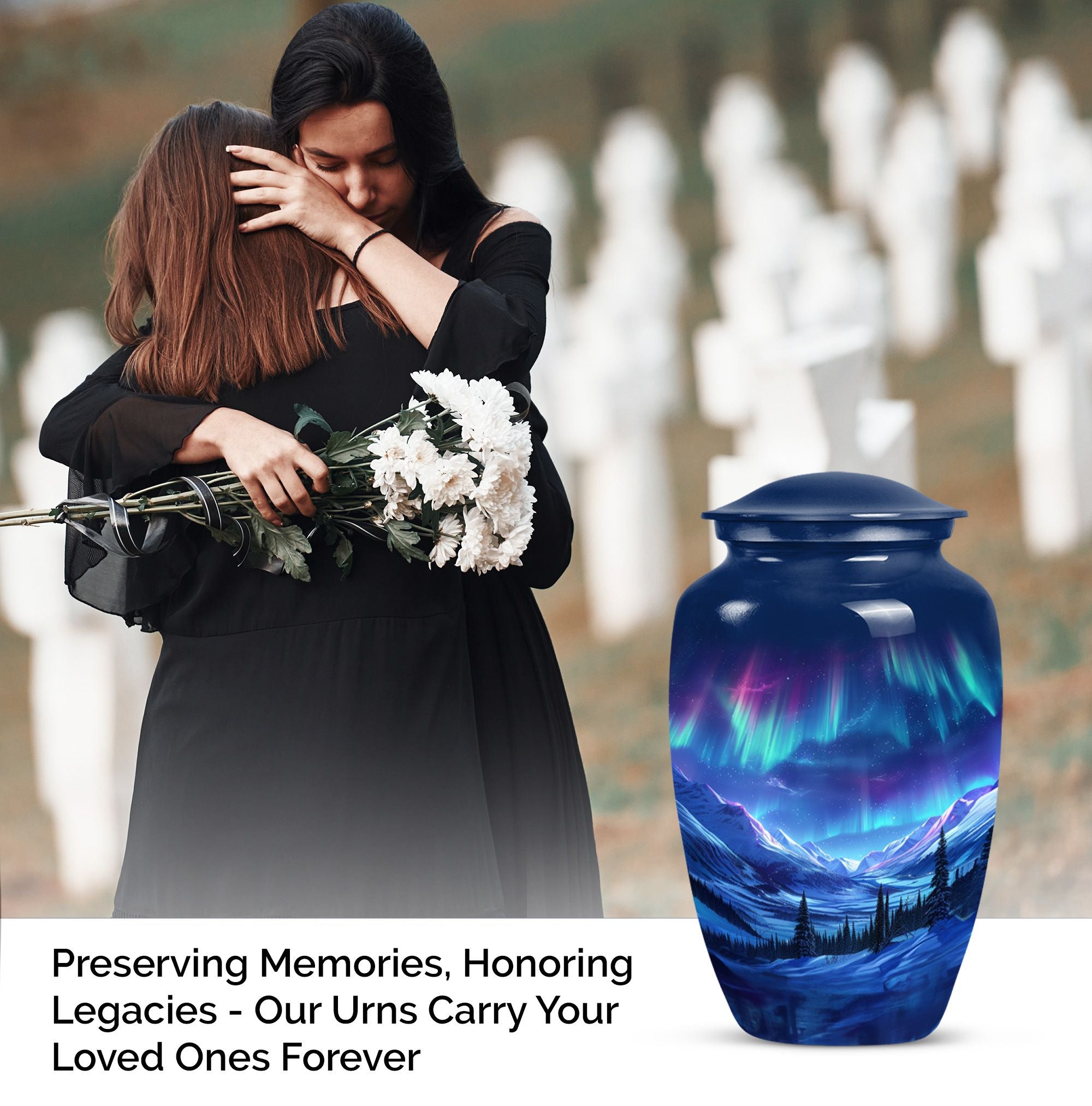 Experience serenity and peace with our AURORA Urn, a superior choice for those on the hunt for high-quality funeral medium-sized urns for human ashes. This 'Abstract' themed cremation urn offers a size of 10 inch, making it an impeccable option when searching for large urns. Made from robust and reliable aluminium, there is a comfort found in its solid weightiness of 3.3 pounds and compact dimensions of 10 inches in height. Boasting a capacity of 200 cubic inches, this urn promises ample space for ashes. The package also includes a gorgeously soft velvet pouch, specifically designed for the containment and protection of ashes, promising a respectful and secure solution. An added advantage of the AURORA urn, is the customization option where you can personalize the urn with engraved names, adding a touch of intimacy and connection. Perfect for memorial ceremonies, the urn harmoniously merges functionality and an elegant, timeless design, offering a comforting presence during times of grief. Notable keywords that amplify your search for this are 'memorial medium urn', 'urn human ash adult ash', 'urns for human ashes', and 'urns for cremation'. So, elevate your search with the AURORA urn, an exemplary blend of quality, respectfulness, and personal touch.