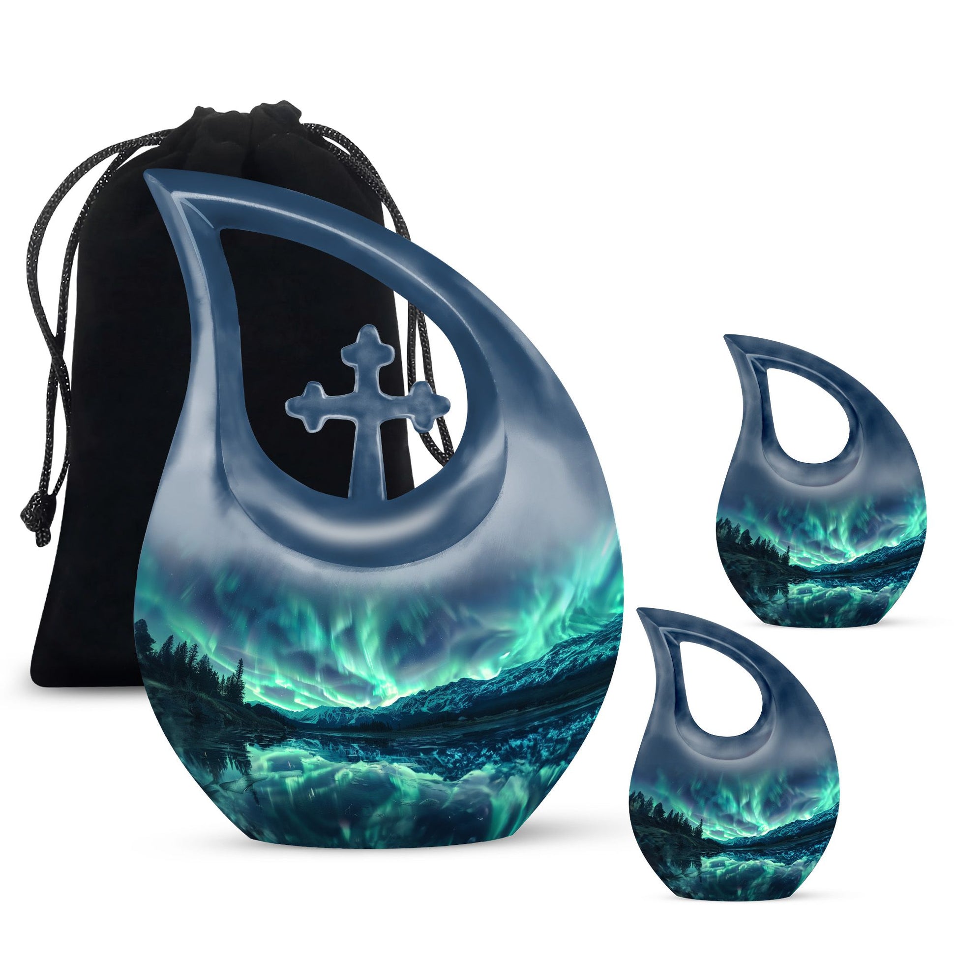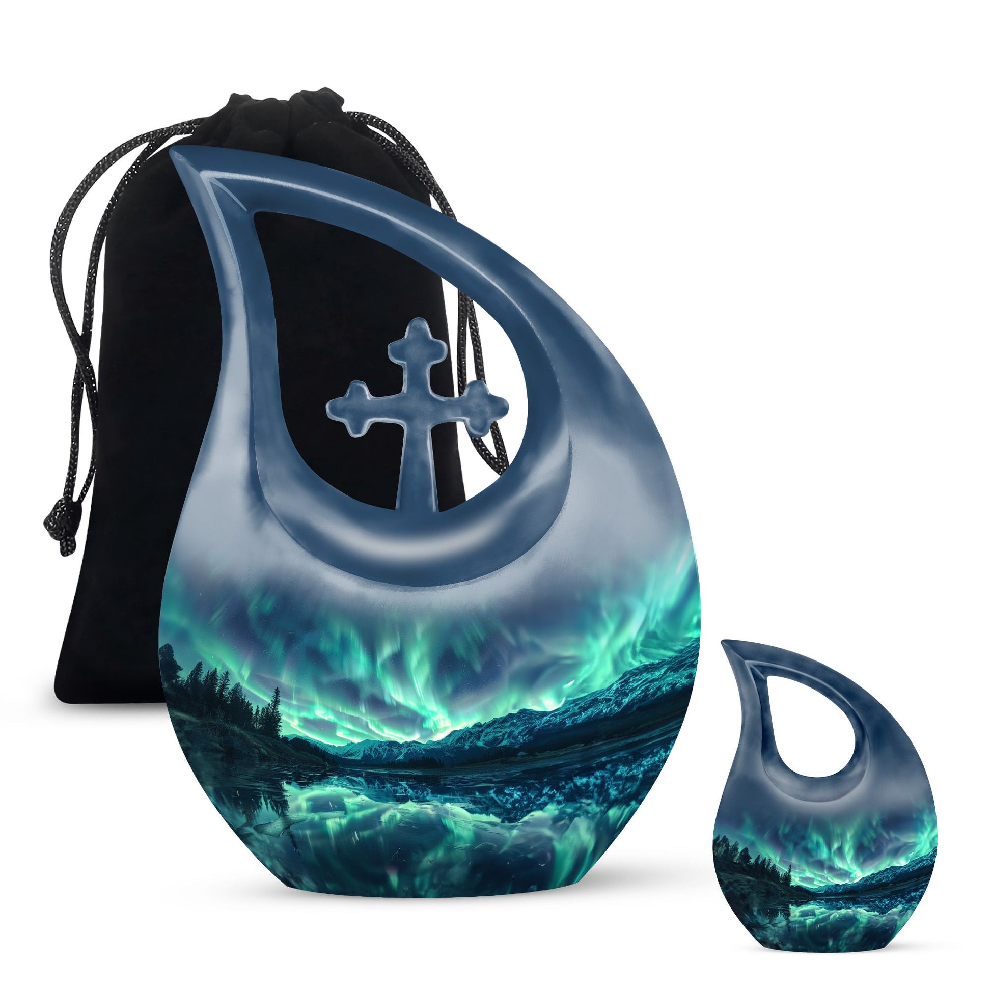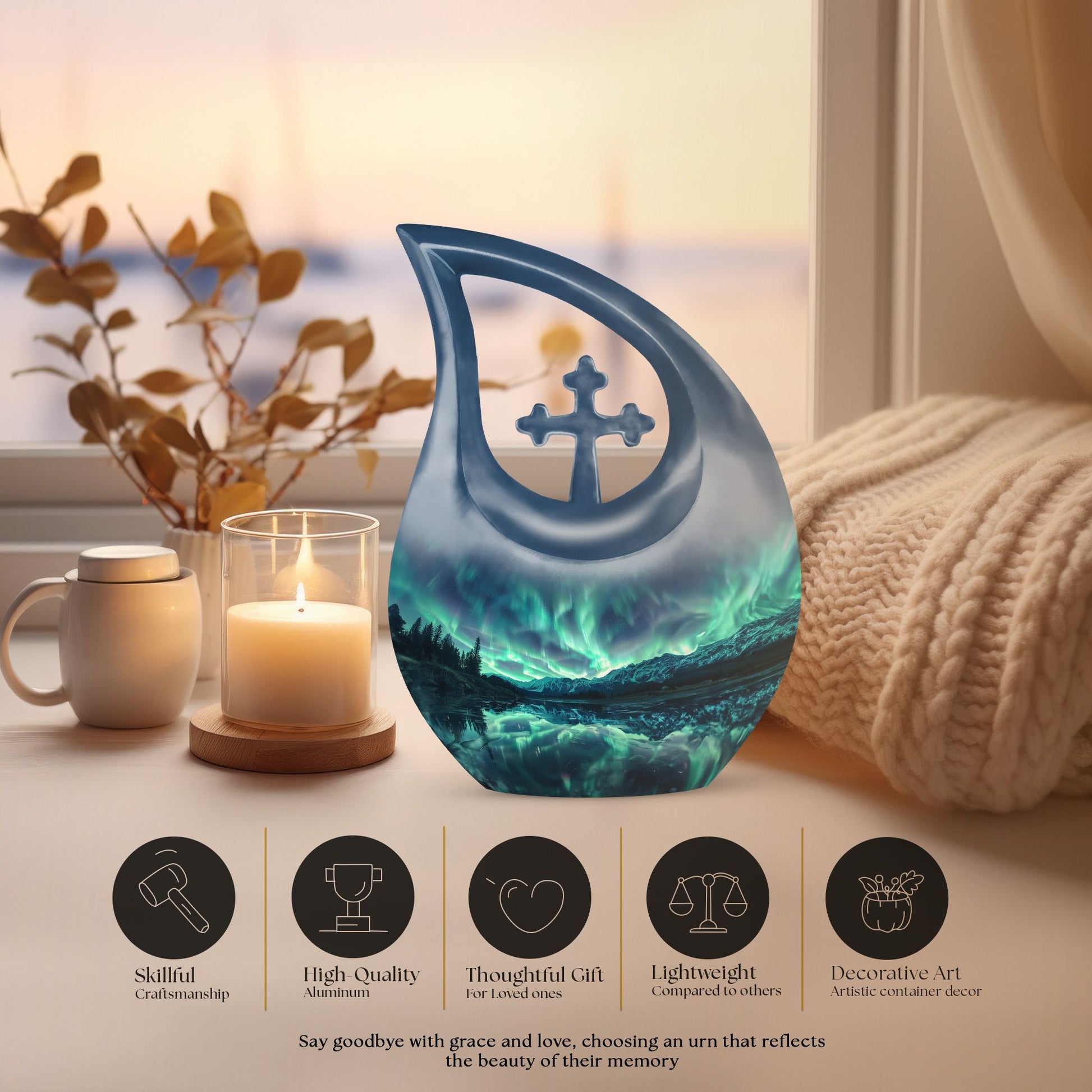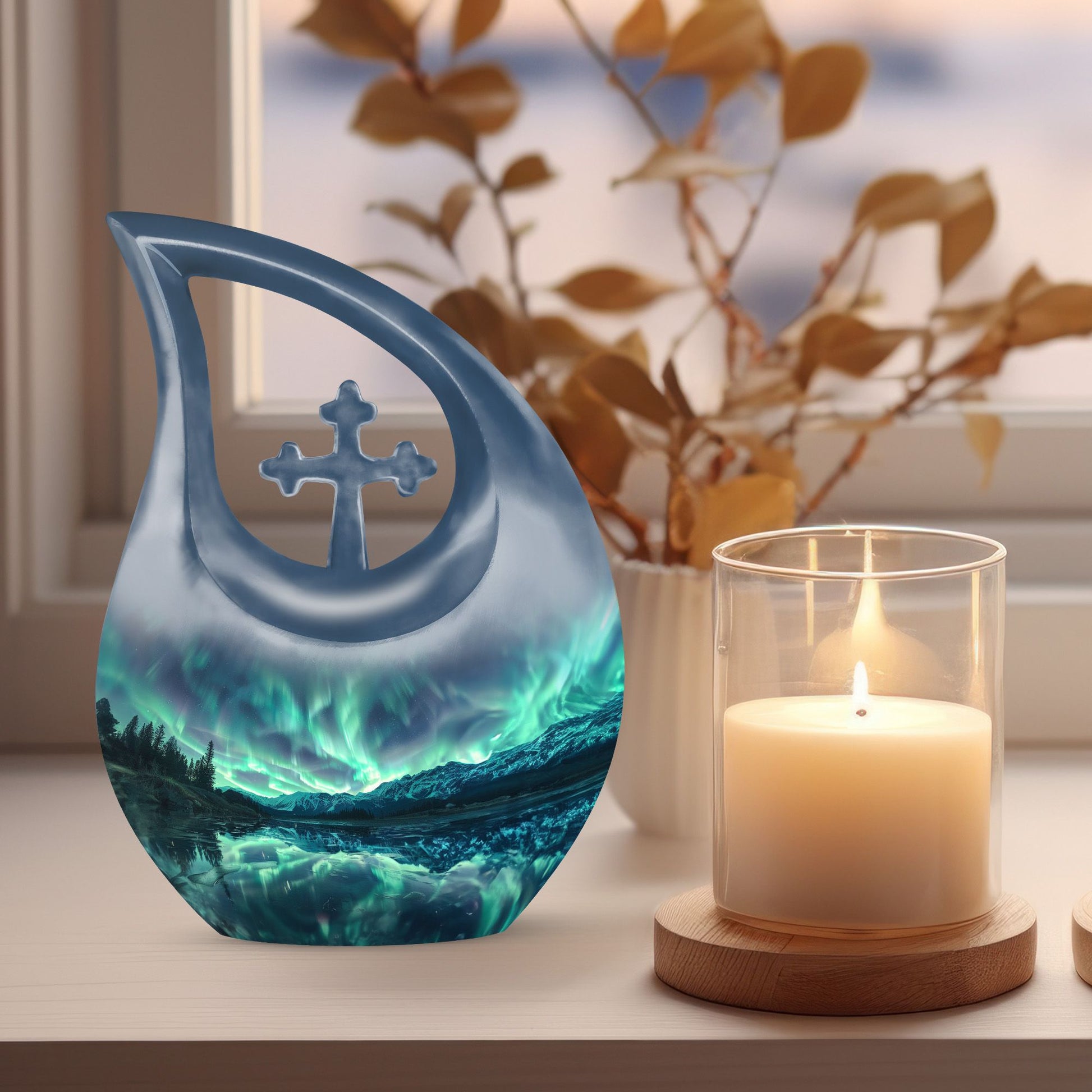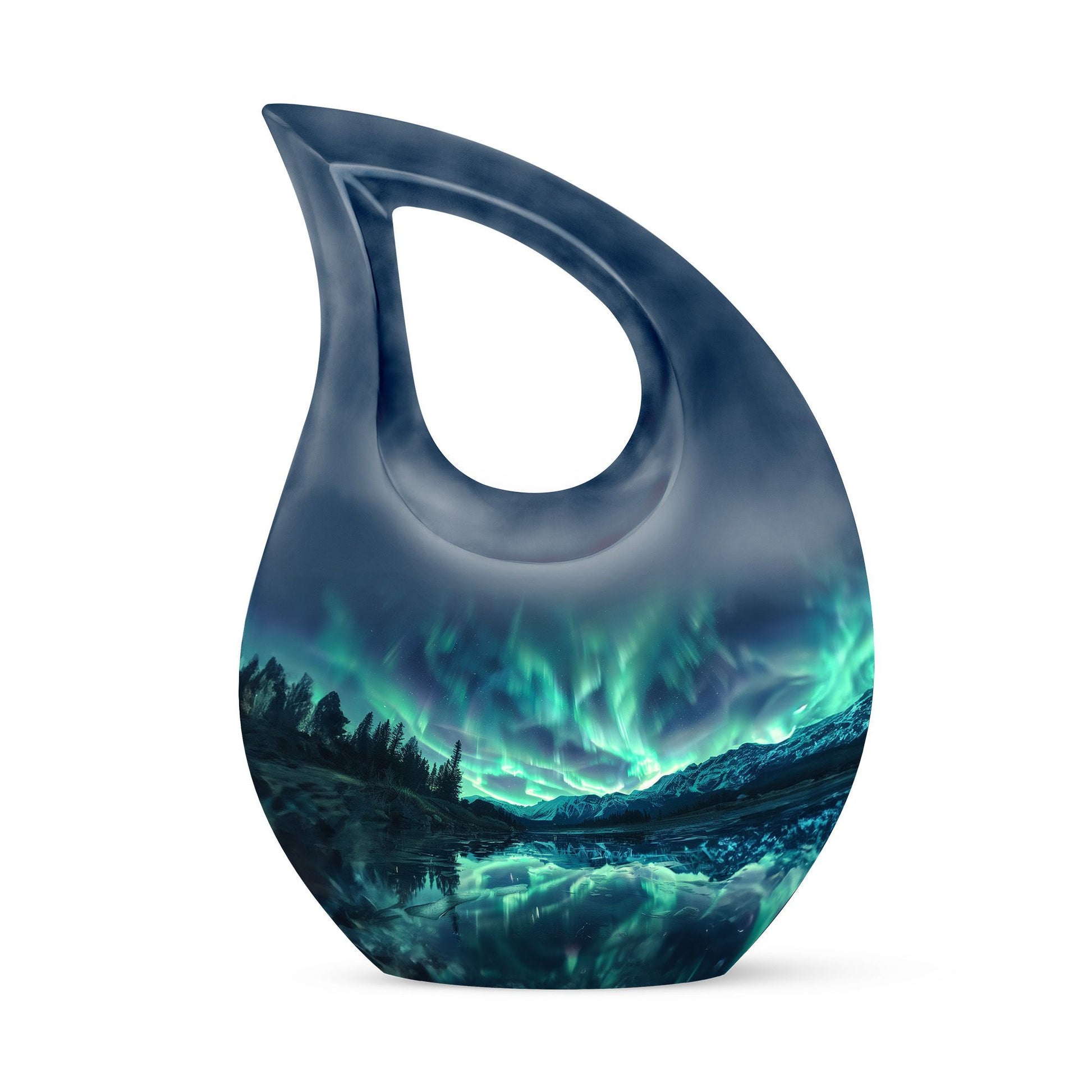 The Northern Lights Cremation Urn offers a peaceful and uplifting way to honor a cherished life. Designed for families seeking meaningful remembrance, this memorial piece is ideal for those looking for small urns for cremation ashes, a heartfelt cremation urn mom, or beautifully crafted cremation urns adult. Its radiant night-sky motif symbolizes guidance, hope, and eternal light.