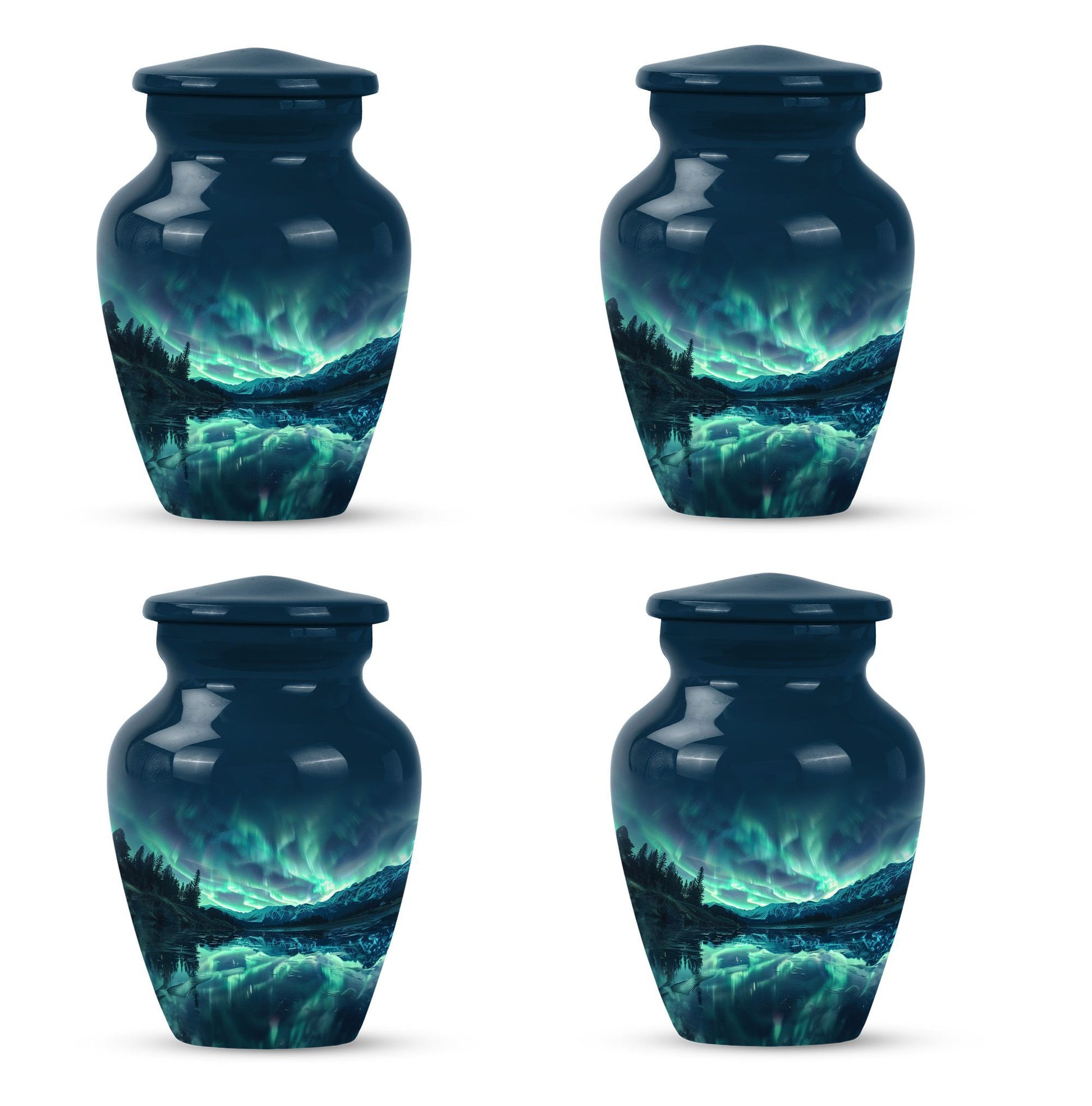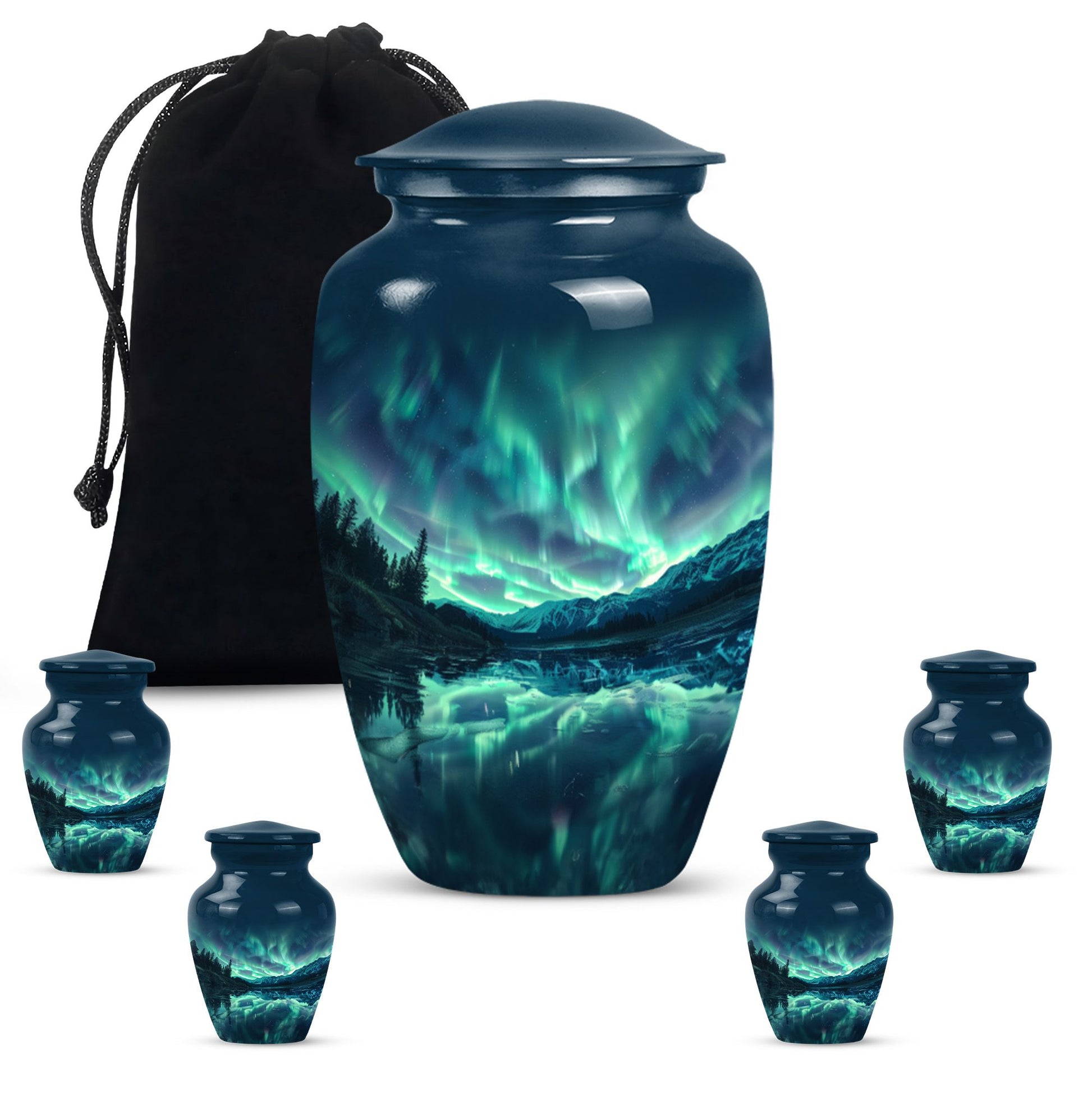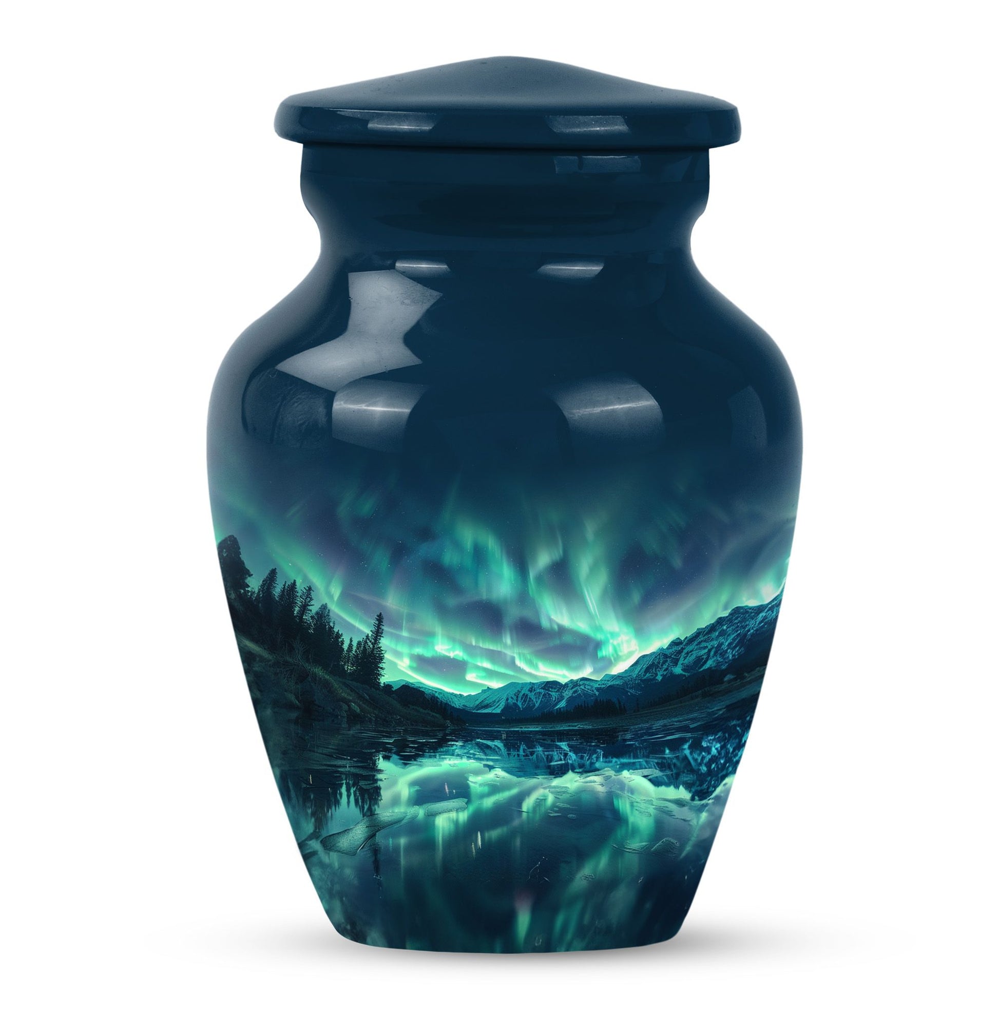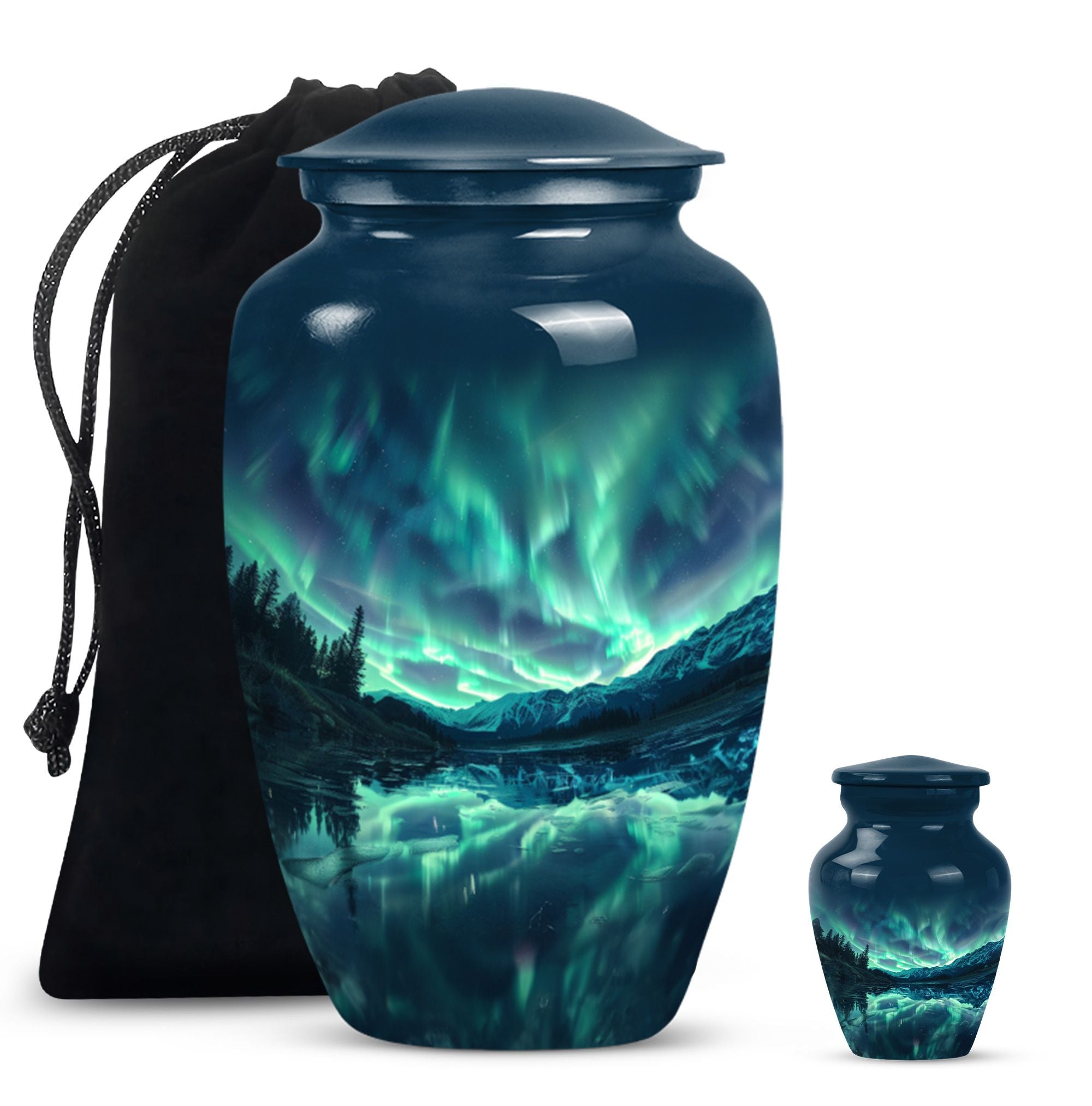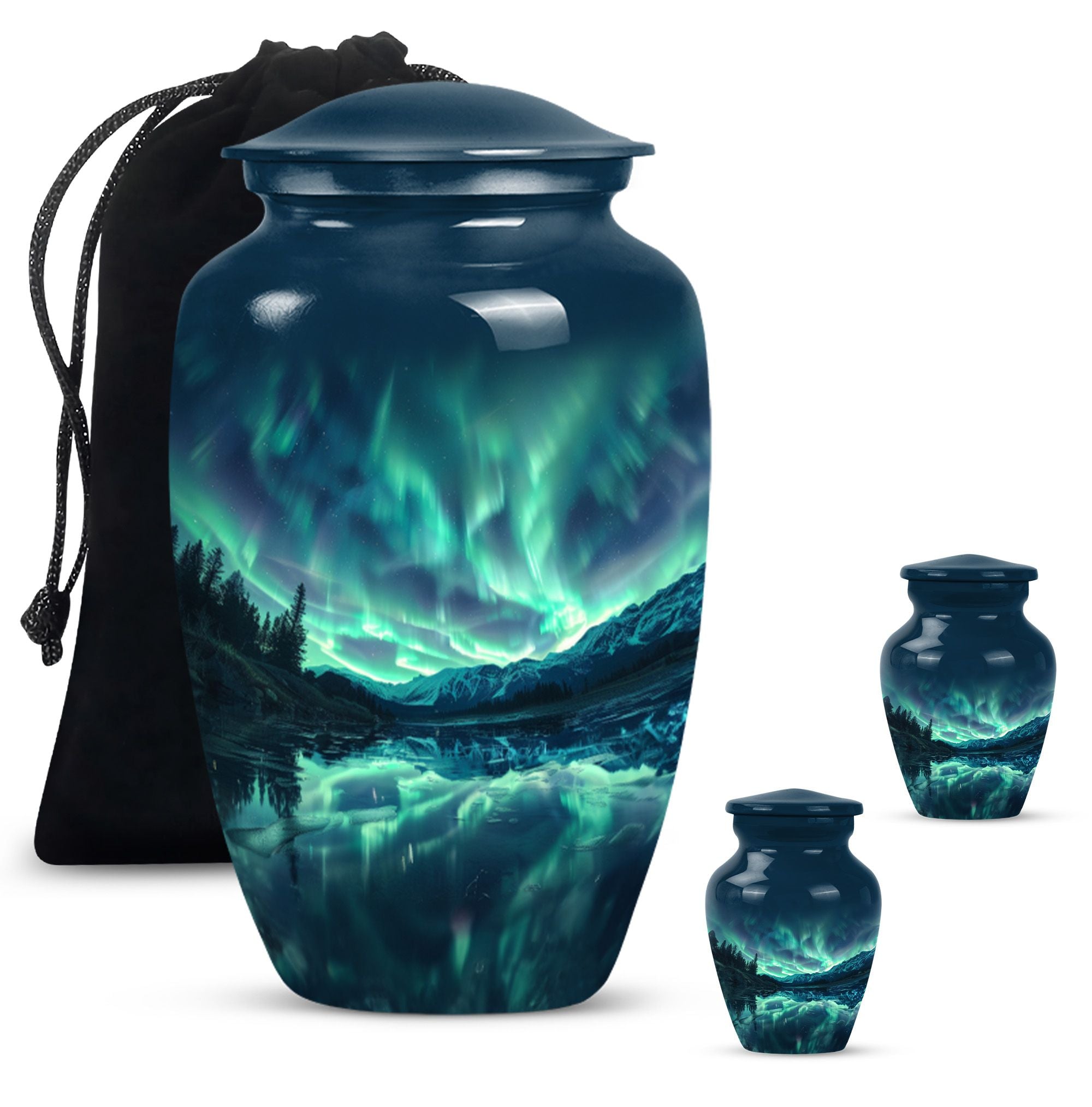 Honor your loved ones with the AURORA Urn, an exquisite representation of eternal tranquility. Designed exclusively for the memorial urns category, this cremation urn for dad is crafted using high-grade aluminium, promising durability for generations to come. The product measures 10 inches in height, weighing about 3.3 pounds, and has a thoughtful capacity of 200 cubic inches, sizable for any large urn requirement. Its smooth, abstract theme radiates a sense of peace, gifting comfort to the bereaved. It arrives in a velvet pouch ensuring safe containment of ashes, adding a touch of elegance to this heartfelt possession. Personalized customization is available with options for engraved names, making this urn for human ashes a truly unique memorial. The AURORA Urn surpasses others in its category, not just as a benign product but as a tranquil symbol of recall, respect, and reminiscence. Opt for the AURORA Urn and let the soothing memory of your loved ones be preserved with grace.