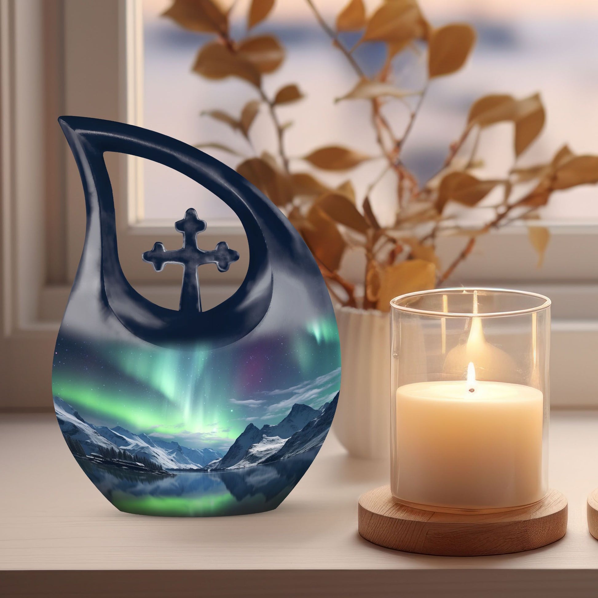 The Northern Lights Memorial Urn for Men is a breathtaking tribute inspired by nature’s most peaceful spectacle — the Aurora Borealis. This luminous large adult urn for human ashes reflects the eternal connection between earth and sky, offering families a serene and meaningful way to remember their loved one. With its blend of artistry and symbolism, it brings light and tranquility to any memorial setting.