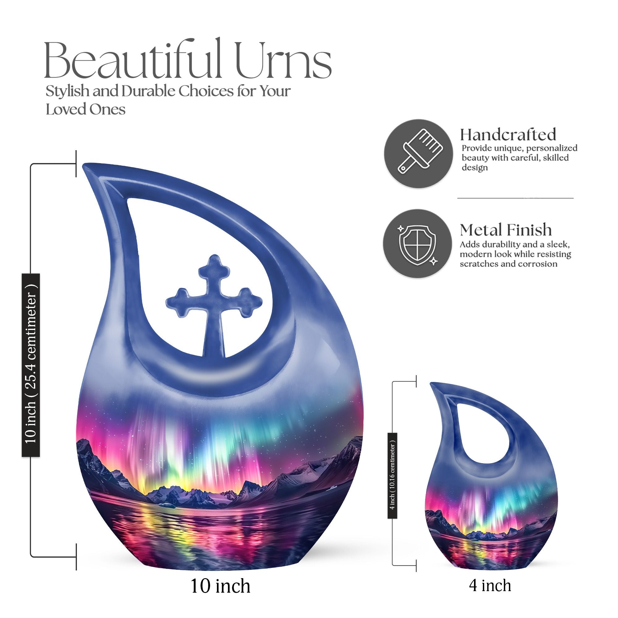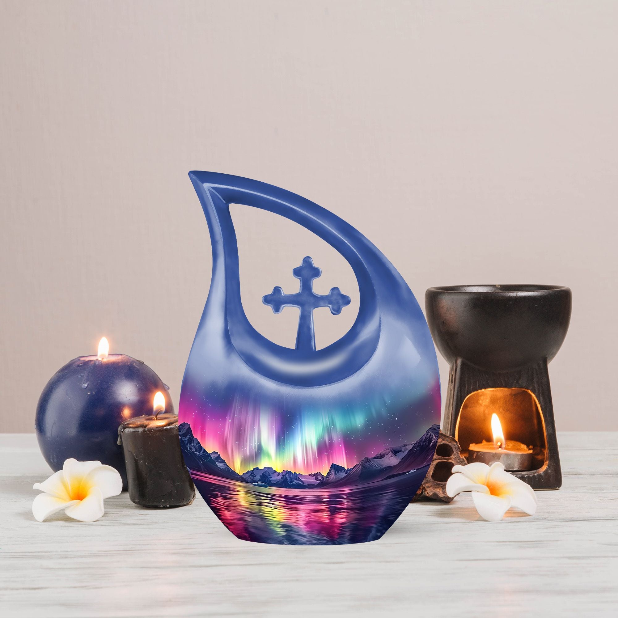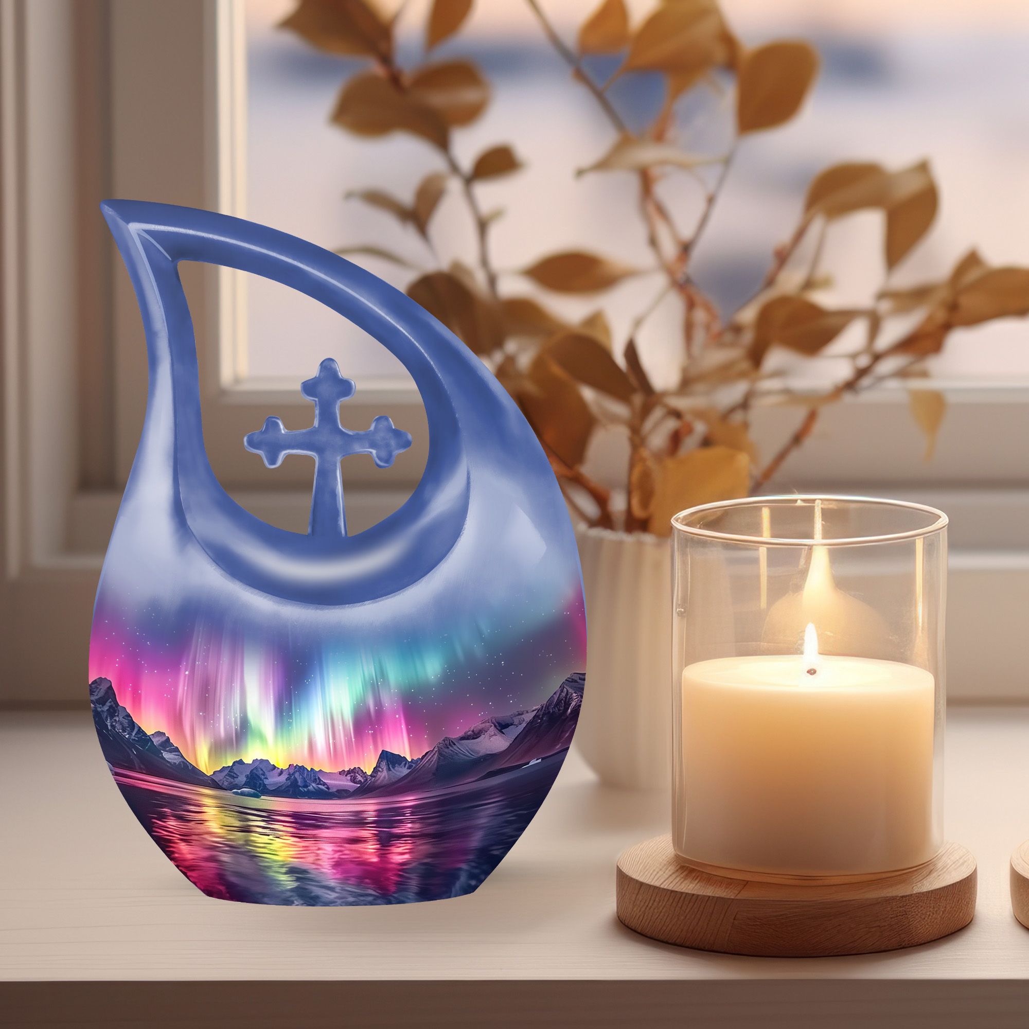 The Northern Lights Cremation Urn offers a peaceful and uplifting way to honor a cherished life. Designed for families seeking a dignified urn for adult male & female, it brings comfort through a stunning Aurora Borealis scene—symbolizing peace, eternity, and guiding light. Whether choosing beautiful urns women or a memorial option for men, this piece reflects warmth and remembrance.