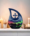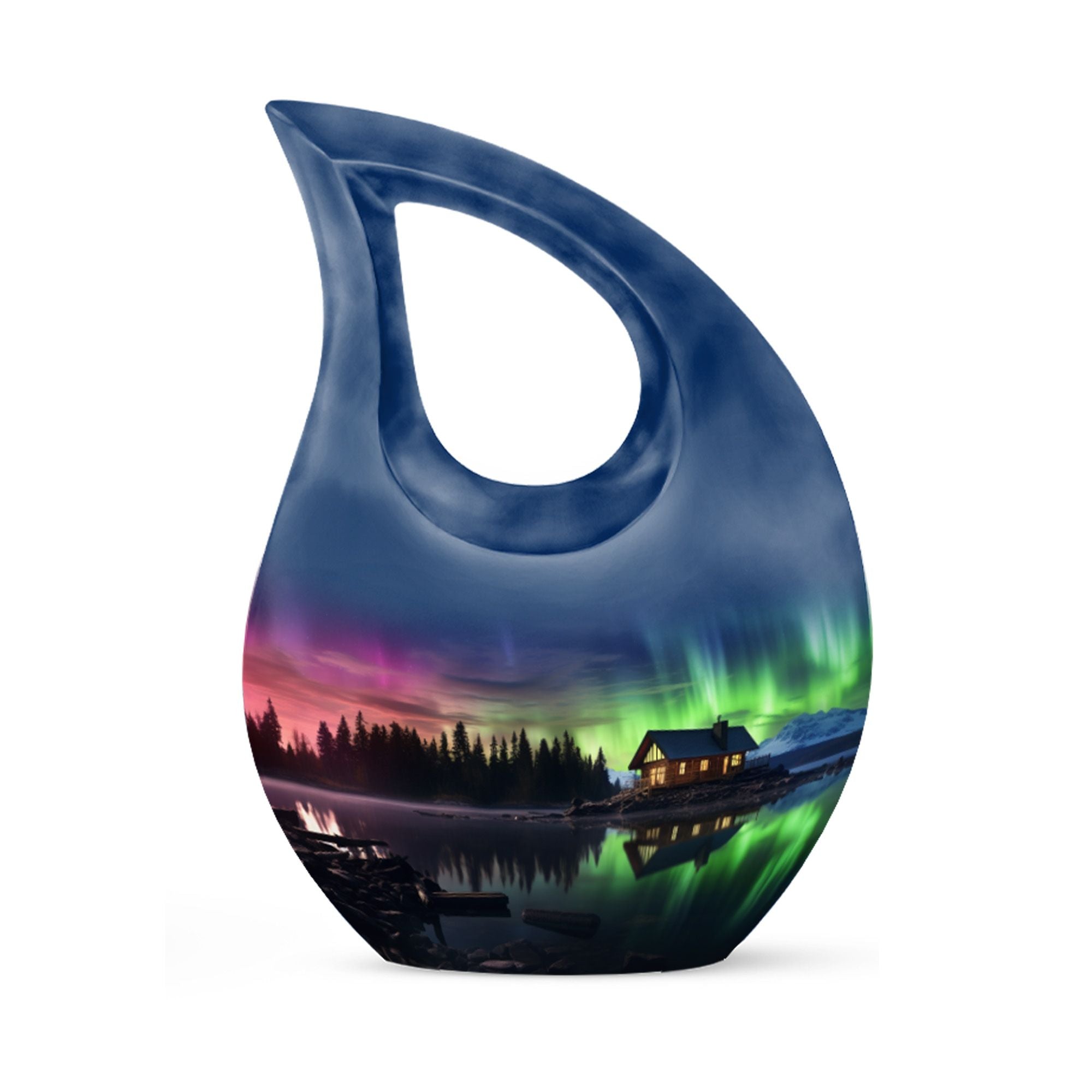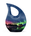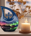 A luminous and heartfelt tribute, this aurora urn reflects serenity, eternal connection, and the guiding light of memories that endure forever.