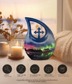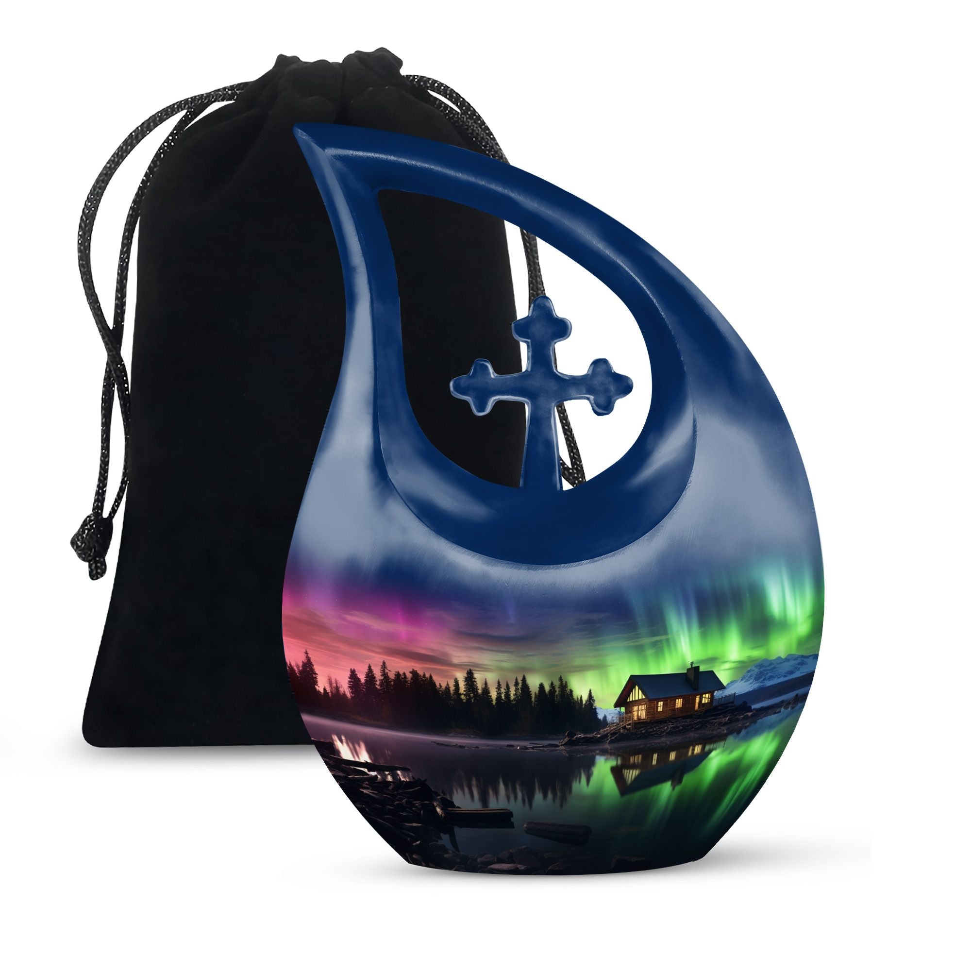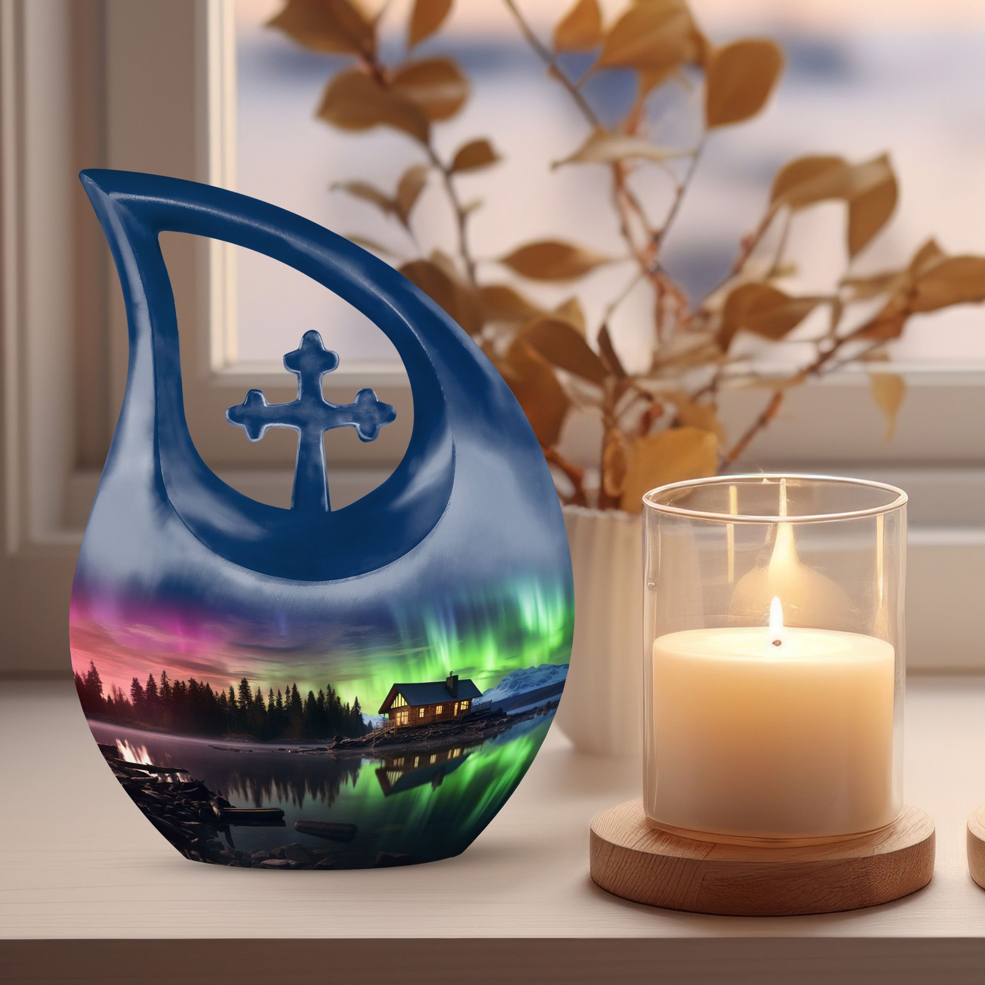 Honor a cherished life with this Aurora Borealis Urn for Men & Women, a radiant tribute inspired by the natural beauty of northern skies. Designed with compassion and dignity, it serves as a meaningful choice for families seeking funeral cremation urns for ashes, funeral urns for human ashes, or funeral urns for adult ashes women.
