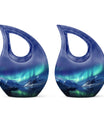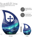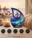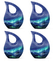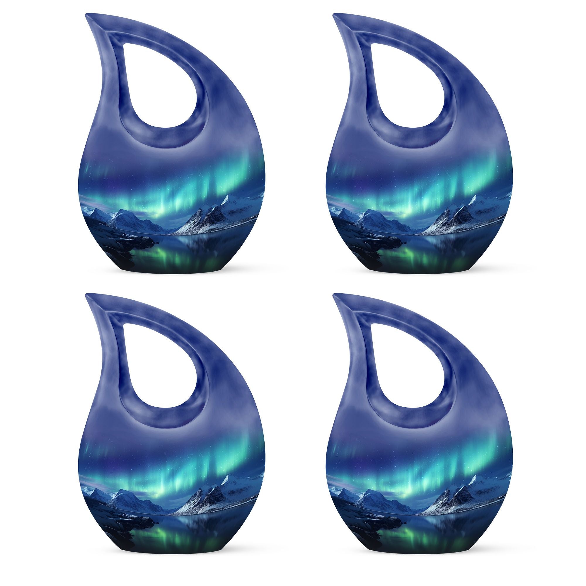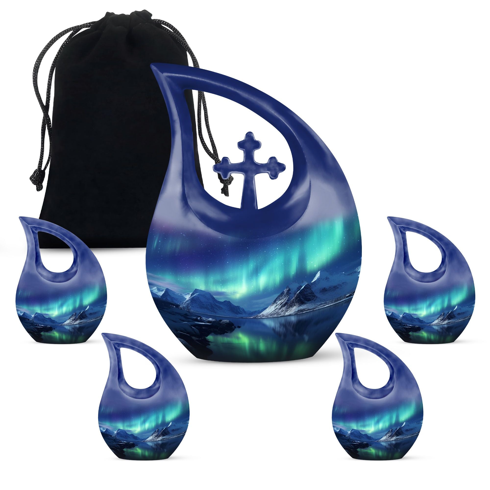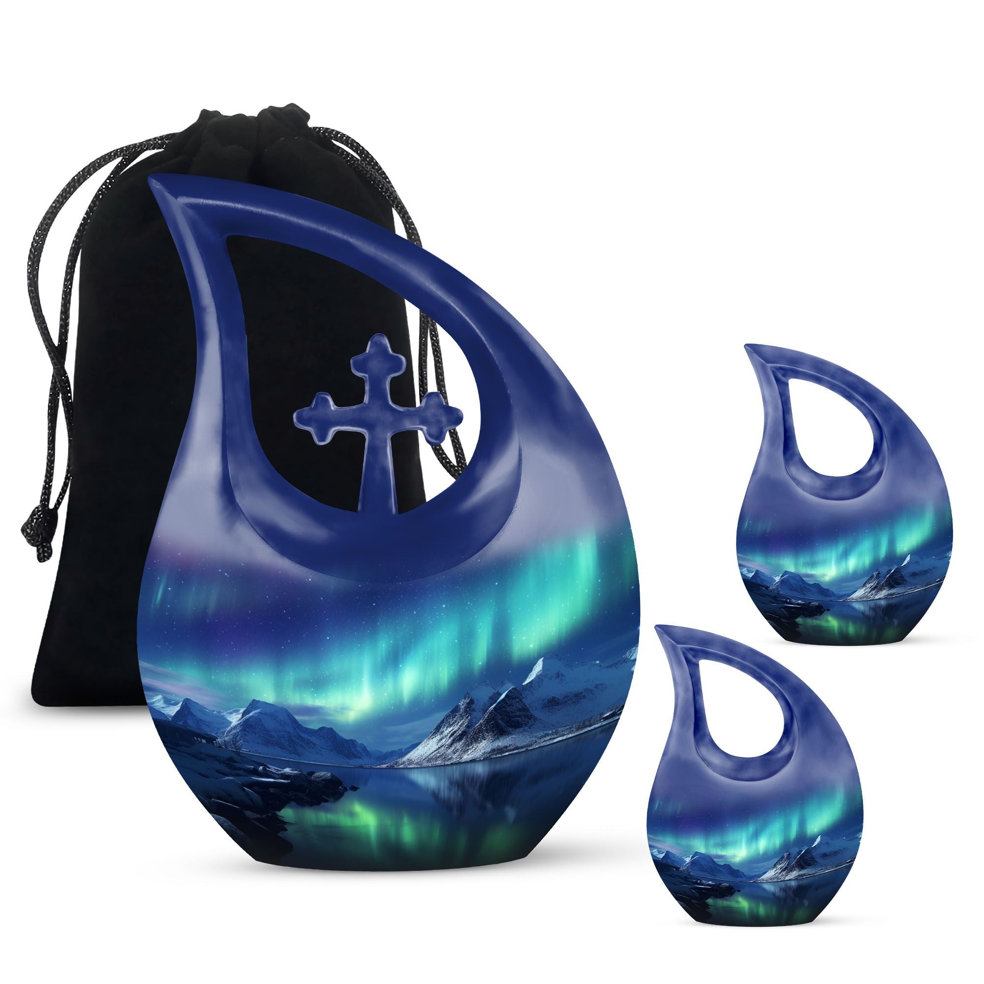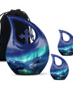 This urn combo set for funeral includes funeral urns for human ashes small, mini keepsake funeral urns, and funeral keepsake urns so family members can share ashes in personal keepsakes. As part of our unique urns for human ashes collection, this piece unites artistry and emotion — a unique urn for ashes that honors a life of beauty, strength, and light. Whether kept close or laid to rest as a burial urn for ground, the Northern Lights Memorial Urn offers a heartfelt reminder that love shines forever.