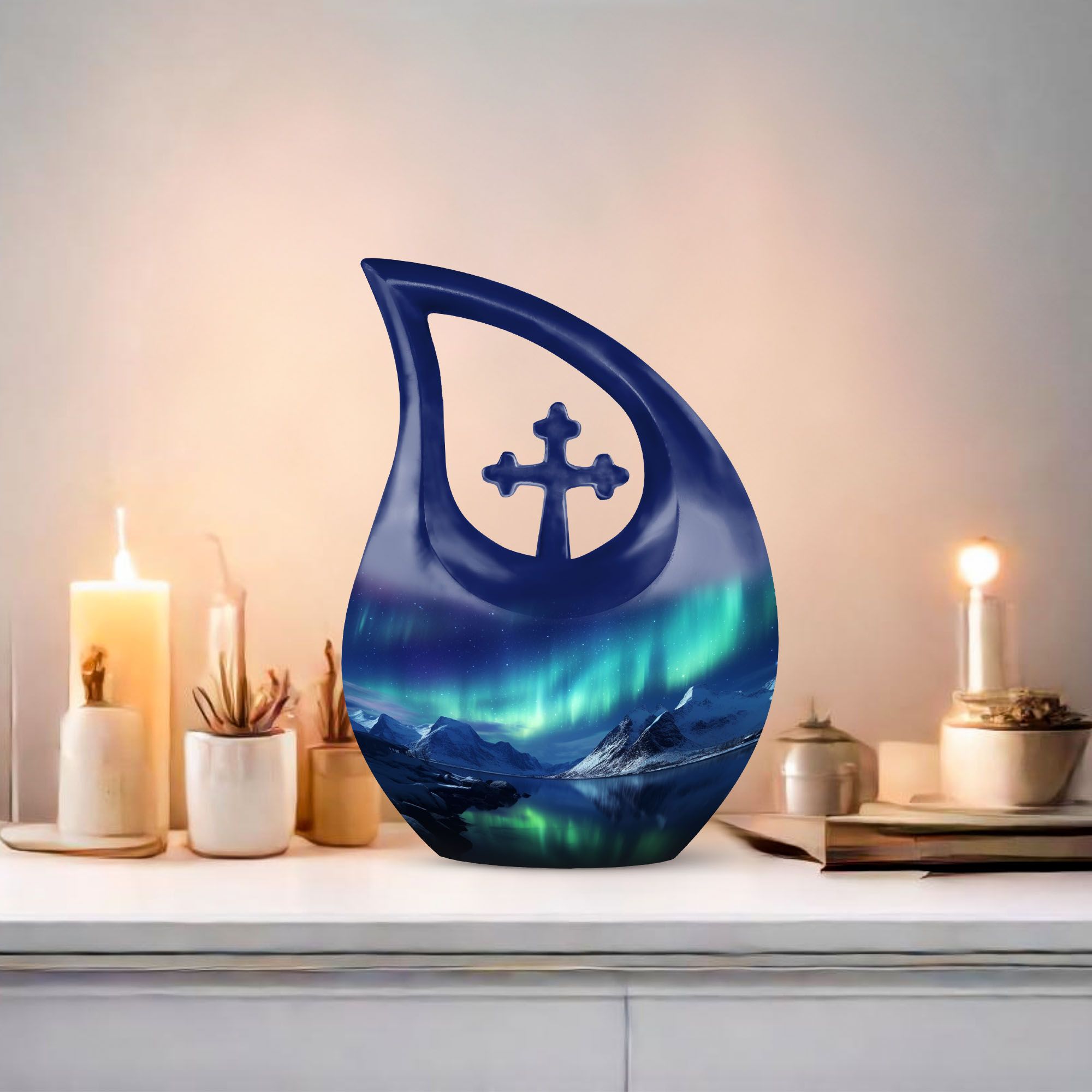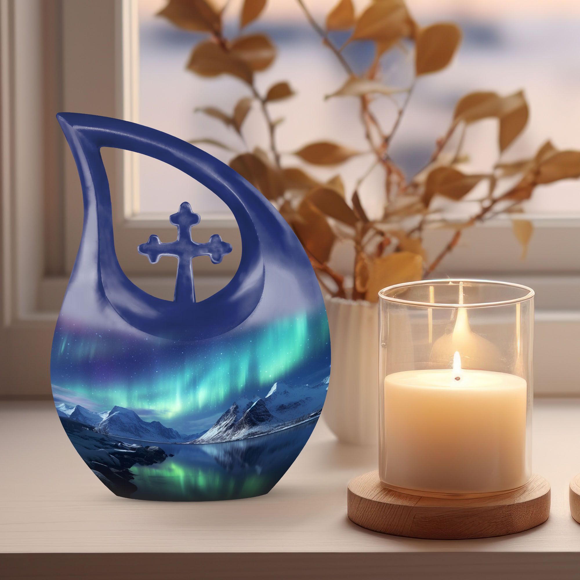 The Northern Lights Memorial Urn for Female is a breathtaking tribute that captures the tranquil beauty of the Aurora Borealis. Designed to reflect eternal peace and remembrance, this funeral urn symbolizes hope, love, and the gentle transition from this world to the next. Its calming hues and graceful form create a lasting memorial for those who brought light and serenity into life’s journey.