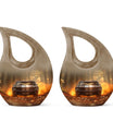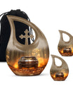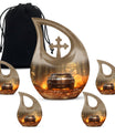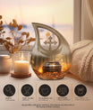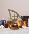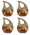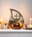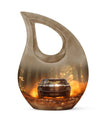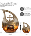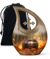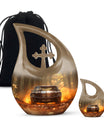 This large decorative urn for human ashes is masterfully crafted from durable aluminum and finished in a warm brown teardrop design with subtle metallic accents. The polished surface glows softly, symbolizing remembrance and grace. A secure screw-top lid ensures the ashes remain safely contained, while the handcrafted detailing evokes quiet sophistication. Perfect as a funeral urn for adult ashes men or a keepsake urn for women, it offers versatility for any meaningful setting.