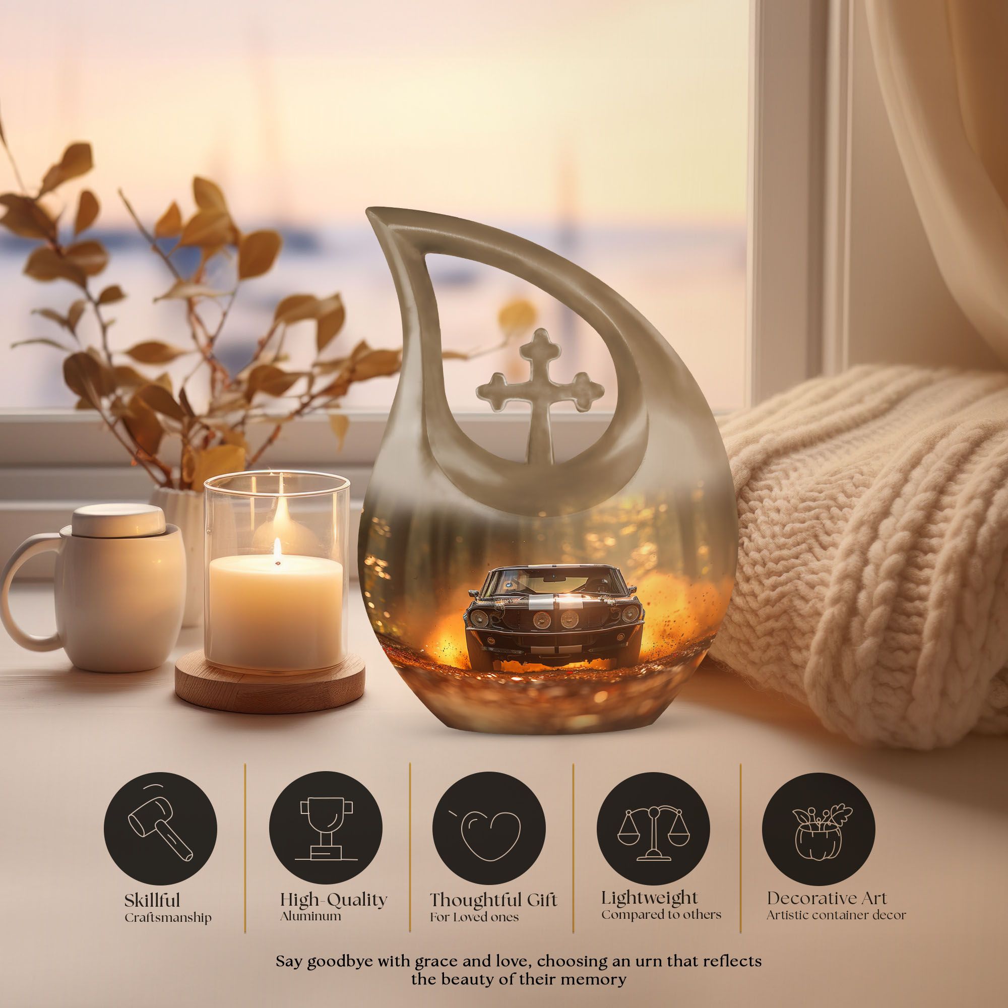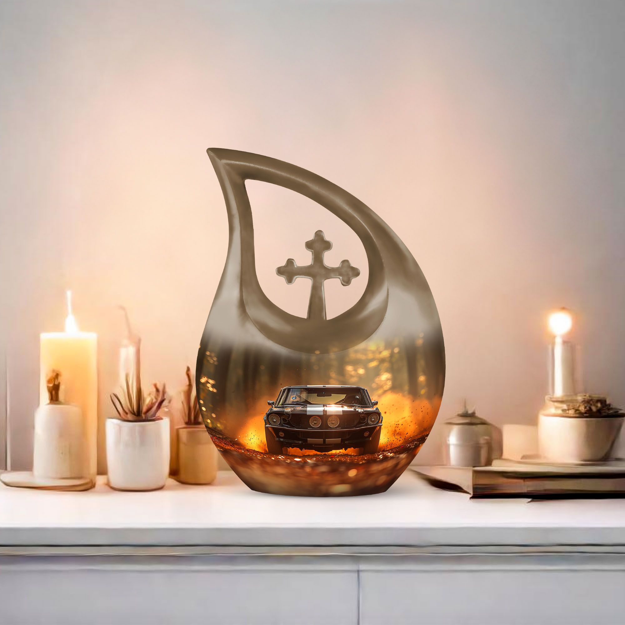 Celebrate a life of passion, strength, and unforgettable journeys with this Classic Car Cremation Urn for Human Ashes. The design captures both elegance and sentiment, offering comfort for families seeking a dignified urn for ashes for women or a lasting tribute among cremation urns for men. Its timeless style honors the individuality of every life lived fully.