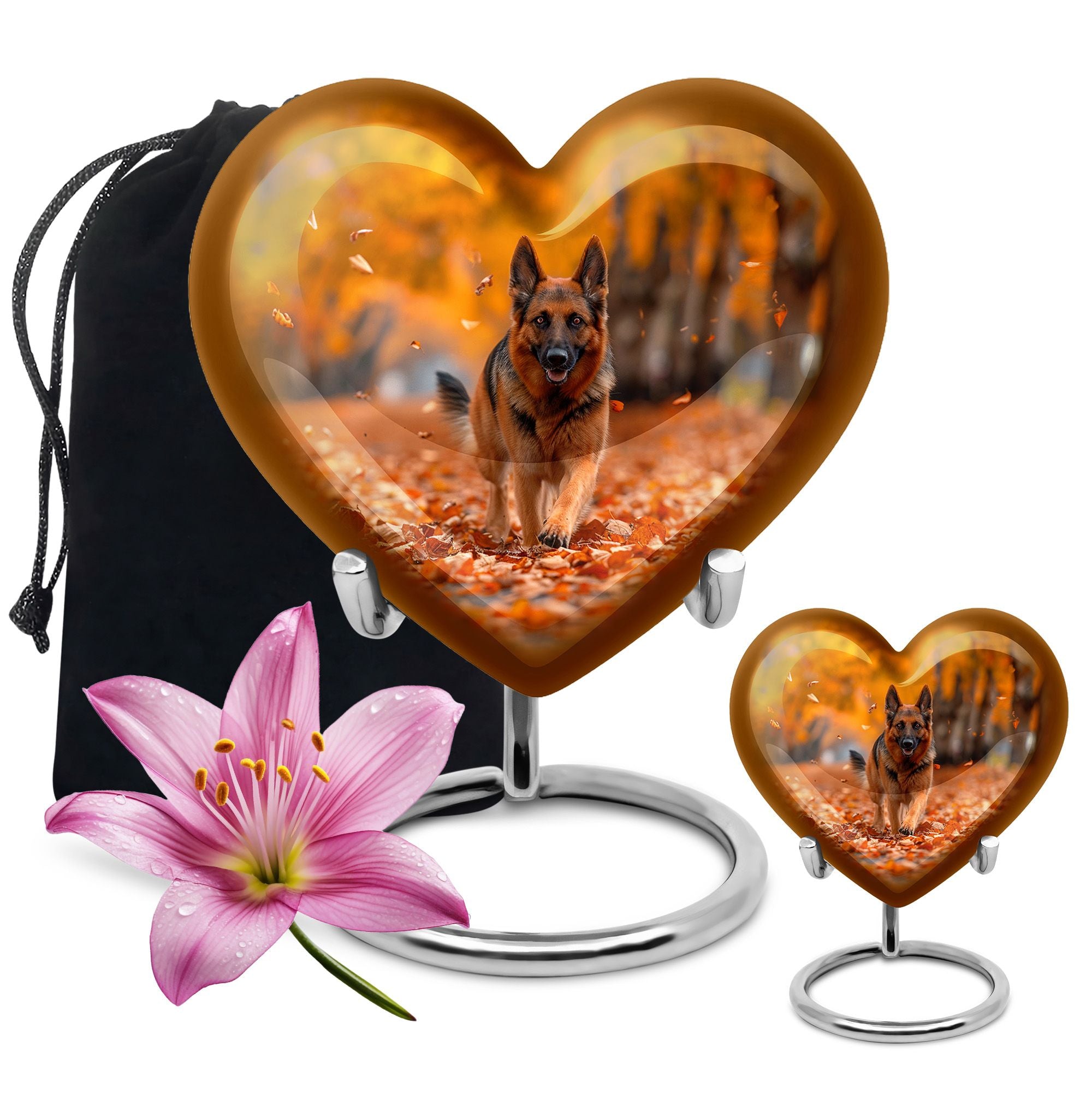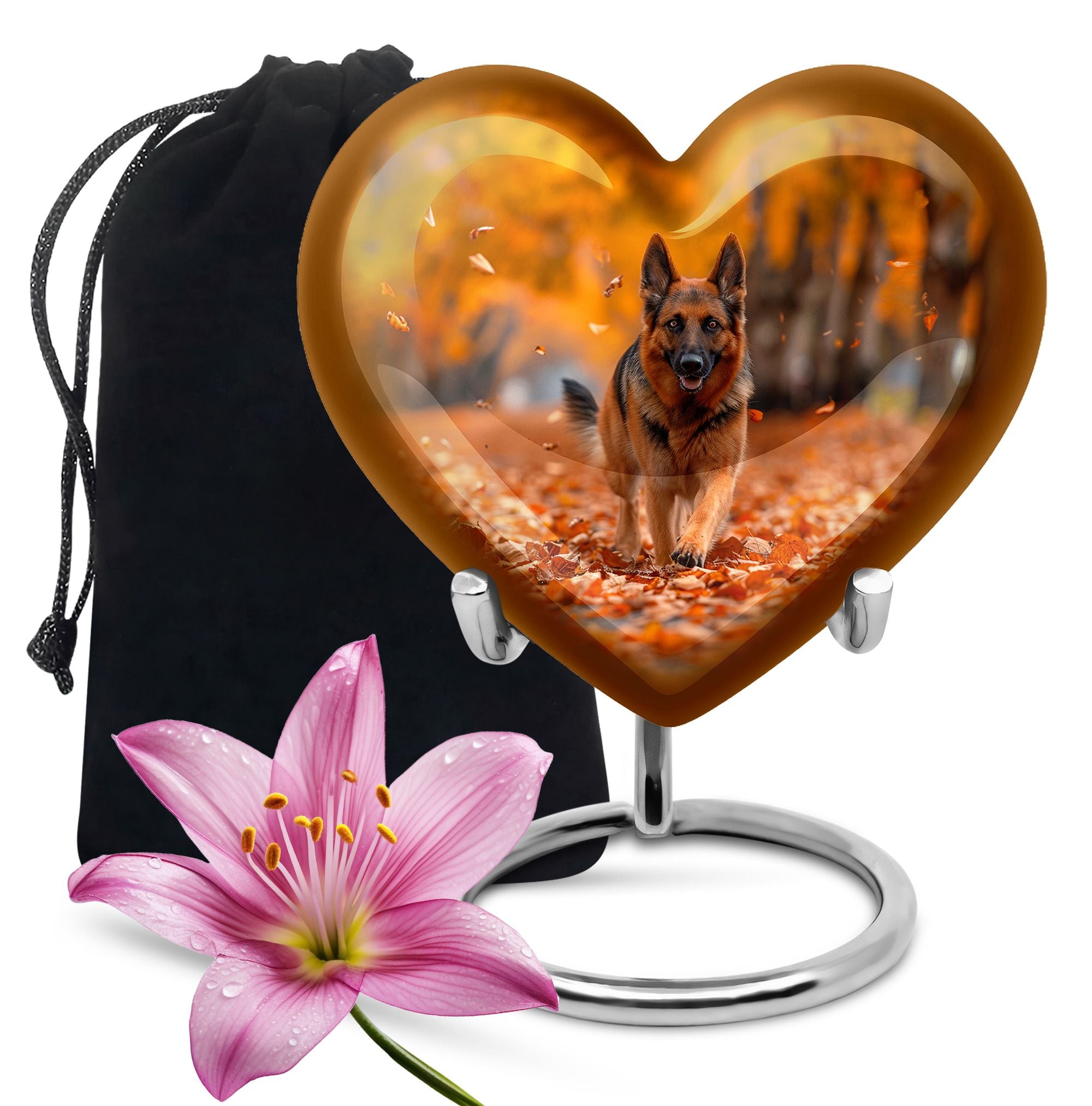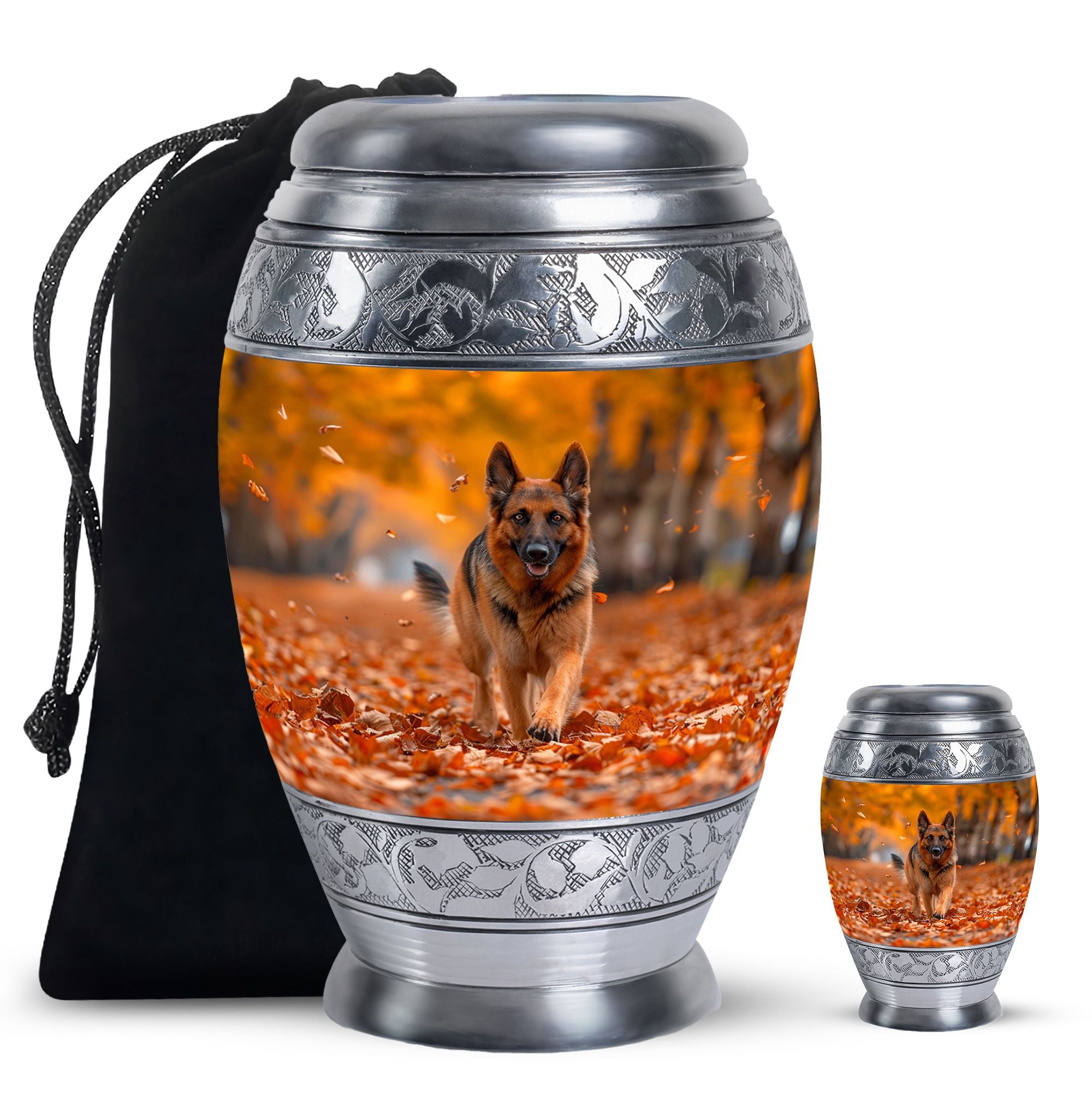 Celebrate the cherished memory of your loyal companion with the Autumn Canine Stroll Urn, thoughtfully designed as a pet memorial box. This urn allows you to keep your German Shepherd close while honoring their unique spirit. Ideal for those seeking personalized pet urns for ashes, it transforms grief into a tangible tribute.