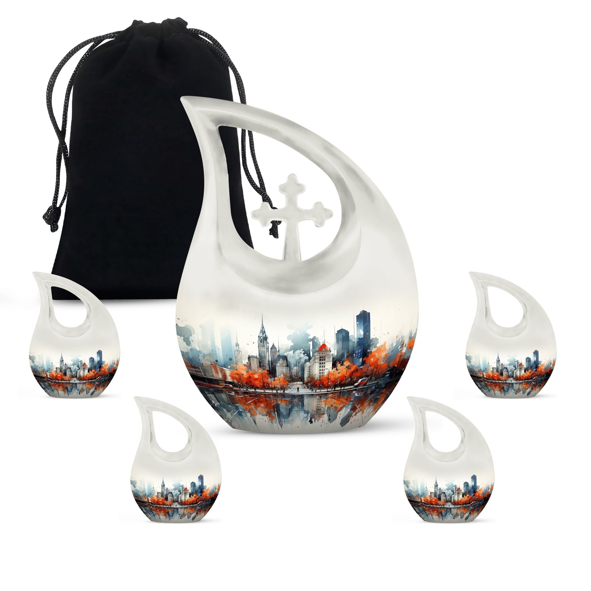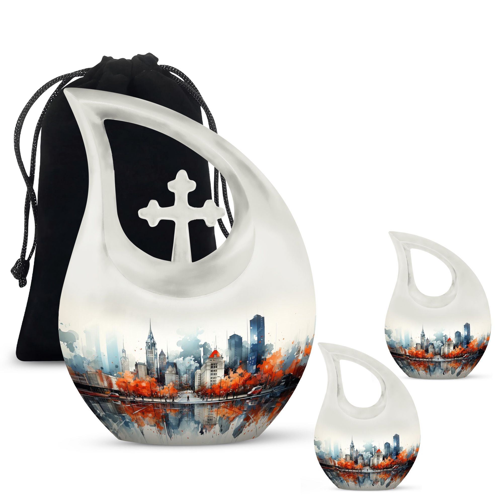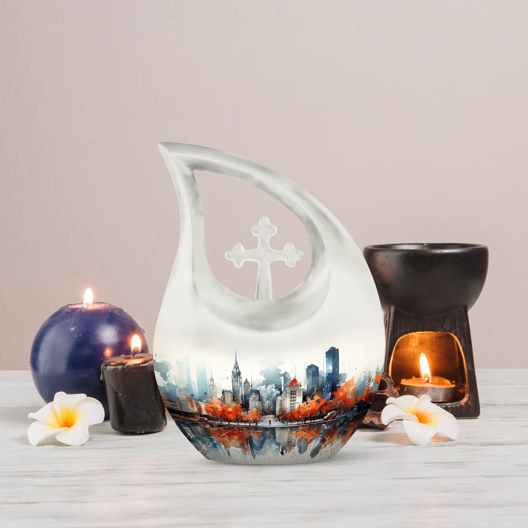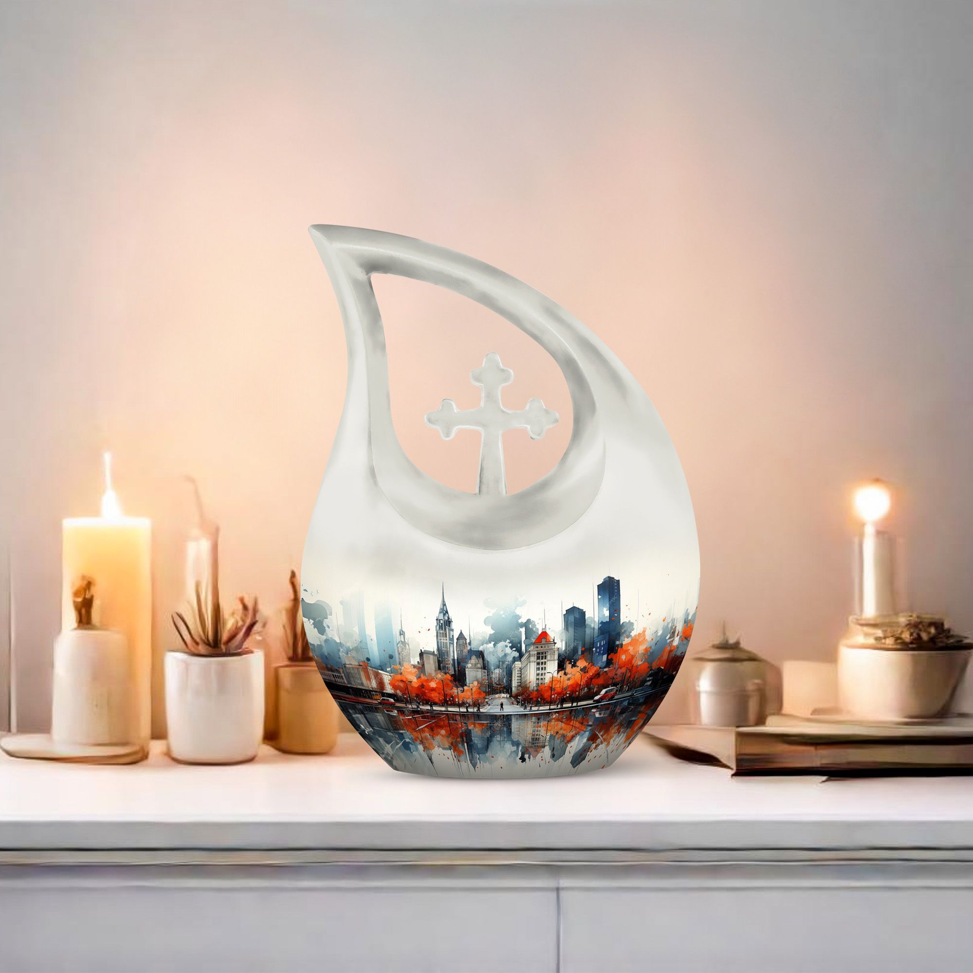 This City Artwork Themed Urn Memorial brings modern beauty and heartfelt remembrance together. Designed with bold urban-inspired art, it offers a meaningful tribute for families seeking an artistic urn for ashes for women or a dignified option suitable for men as well. Its contemporary design makes it a standout memorial piece filled with emotion and individuality.