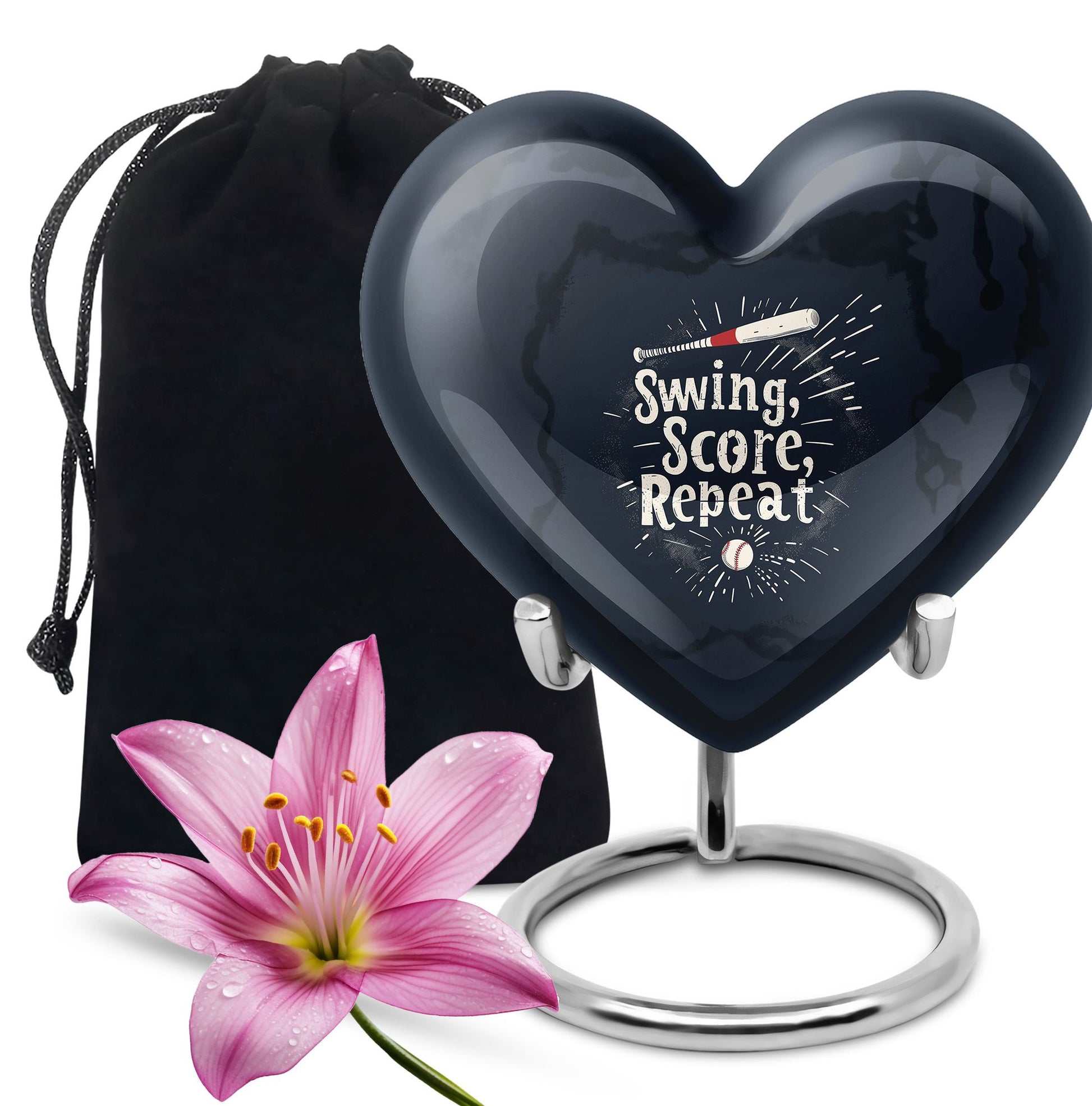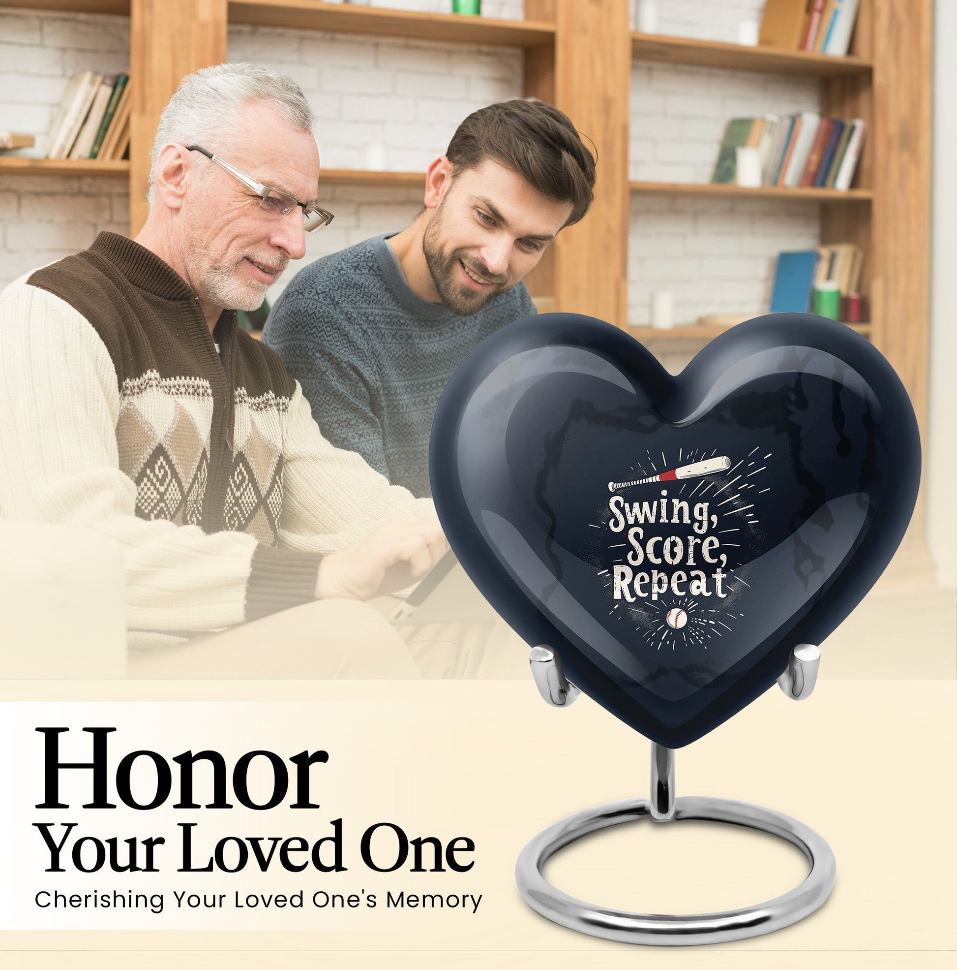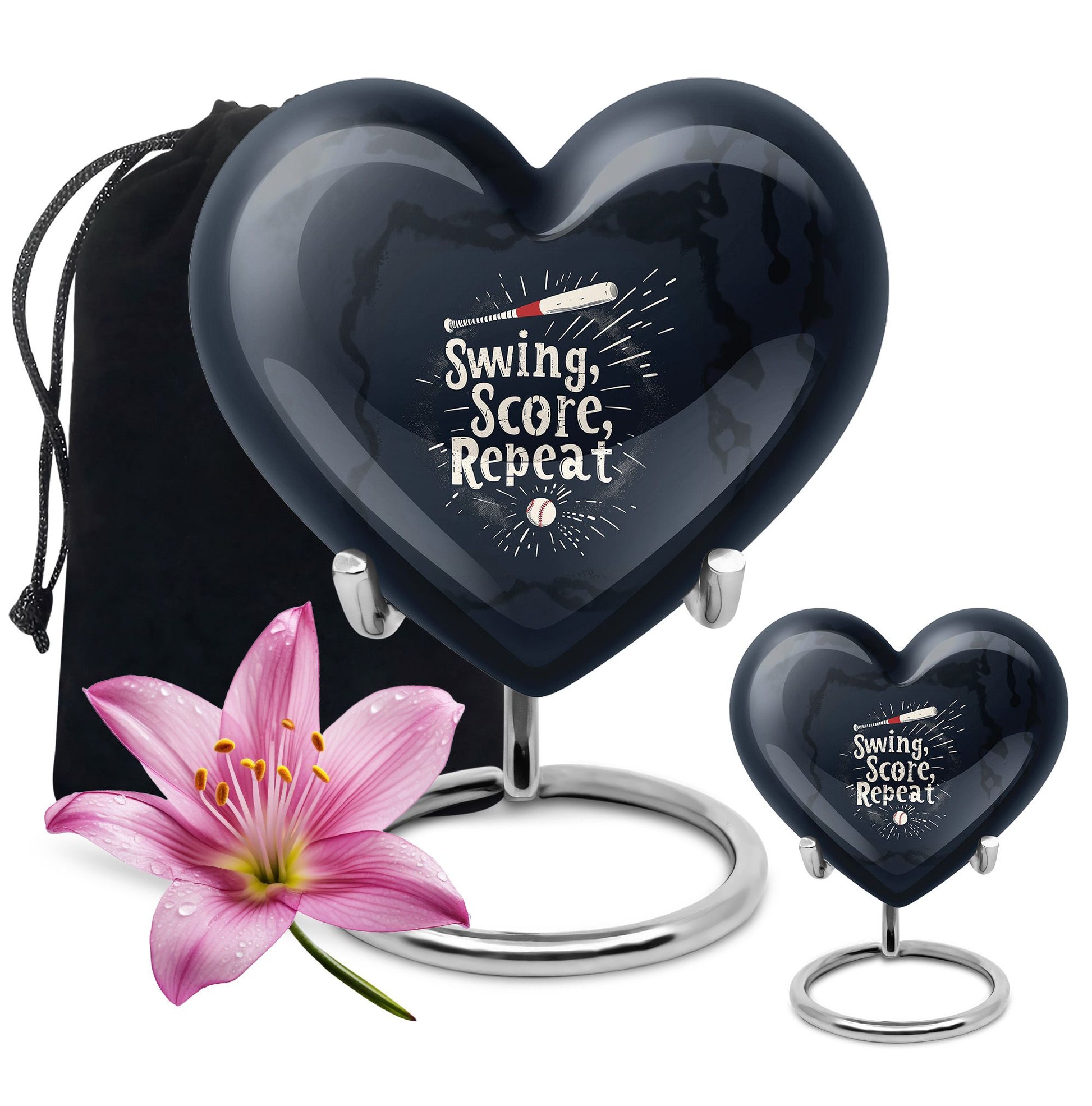 Secure a dignified final resting place with this magnificent Baseball Urn. As an adult burial urn, sporting an abstract-themed, symbolic Heart Urn design, it enshrines the love wrapped around cherished memories. Artfully crafted with sturdy aluminium, this large urn weighs merely 3.3 pounds and stands at a graceful 10 inches. The capacity of this urn is spacious, with a room for 200 cubic inches of ashes. It goes beyond just being a memorial urn, it's a testament to an unending bond. Tailor it to your loved one's memory through personalized engravings etching the bond forever. The dual urn even caters for a female adult or a male adult, affirming your love till the end of time. It discretely tucks away the ashes in the included velvet pouch, maintaining the solemnity of the moment. As a significant part of memorial ceremony supplies, this metal urn, capable of burial in the ground, encapsulates the essence of reverence and remembrance.